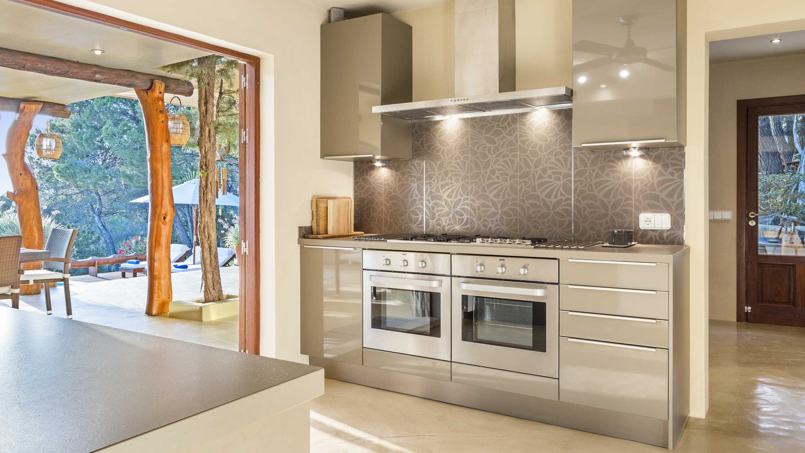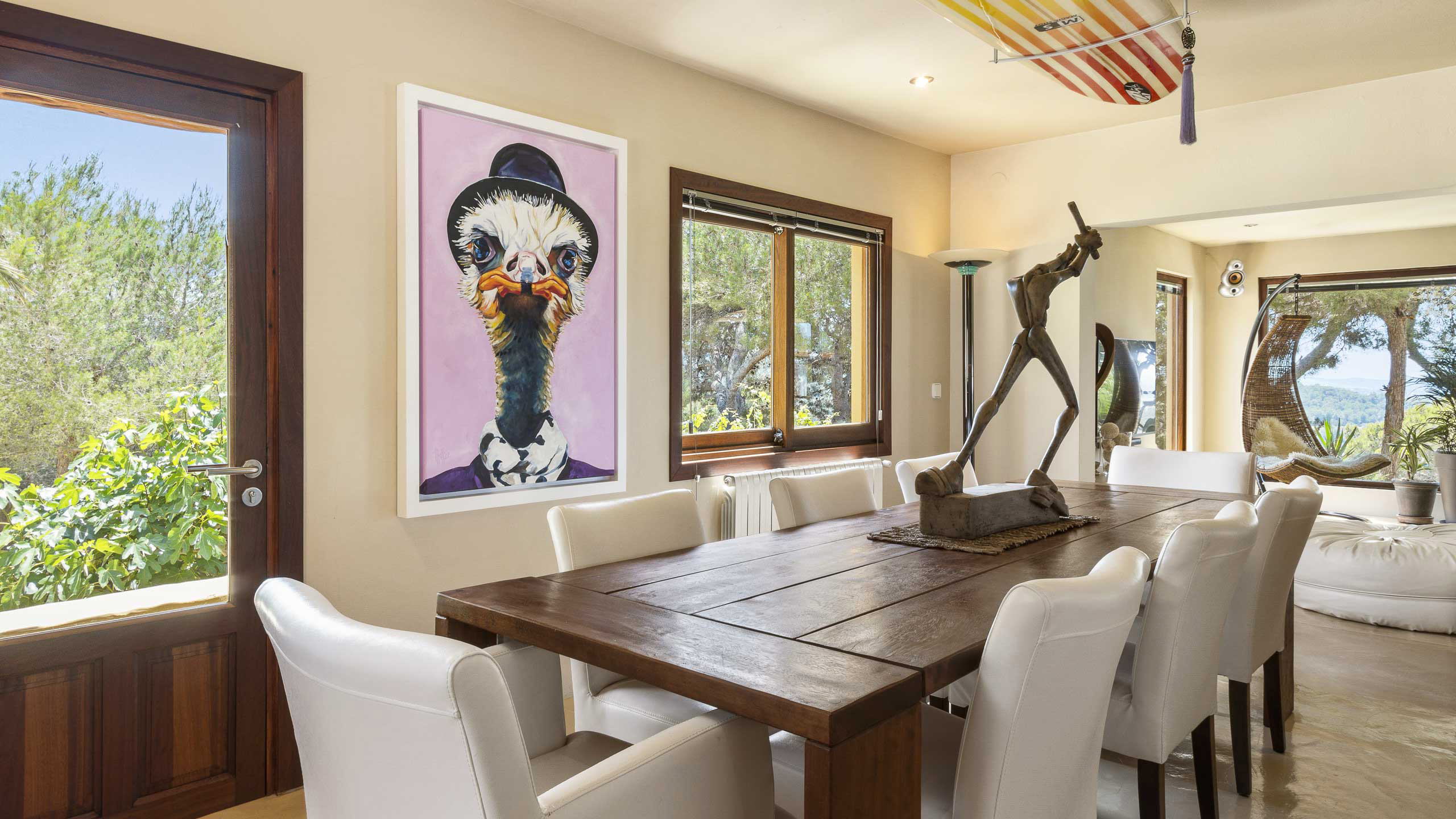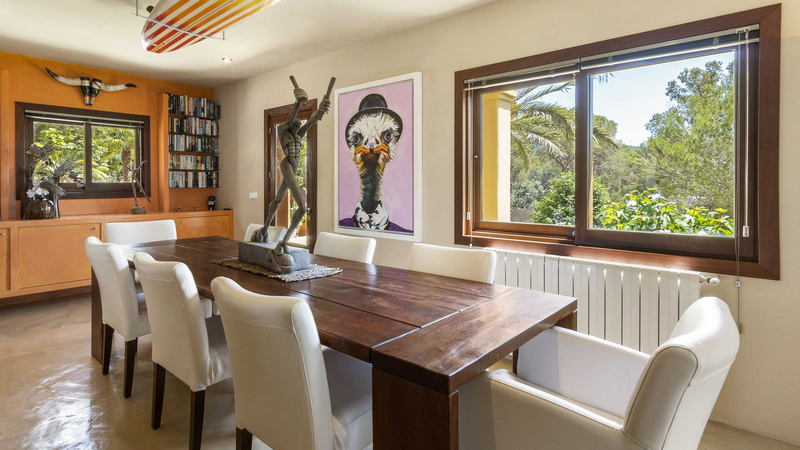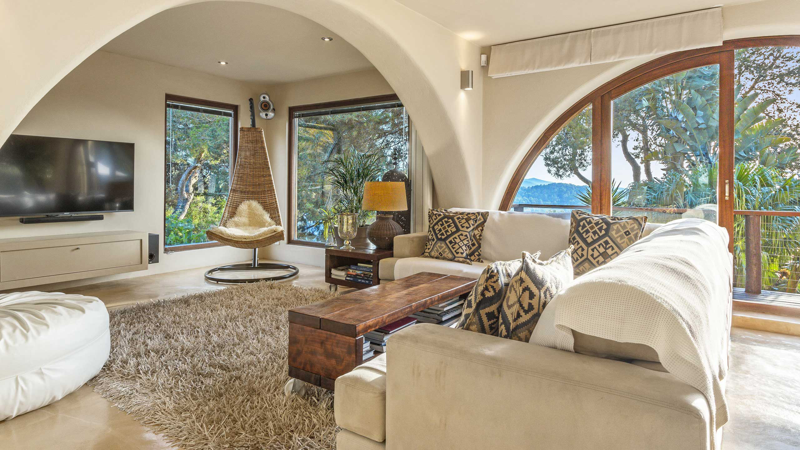 Villa Fergolia is set in verdant countryside, the contemporary Mediterranean-style residence has a roof terrace with spectacular views of the sea and Ibiza's sunsets.