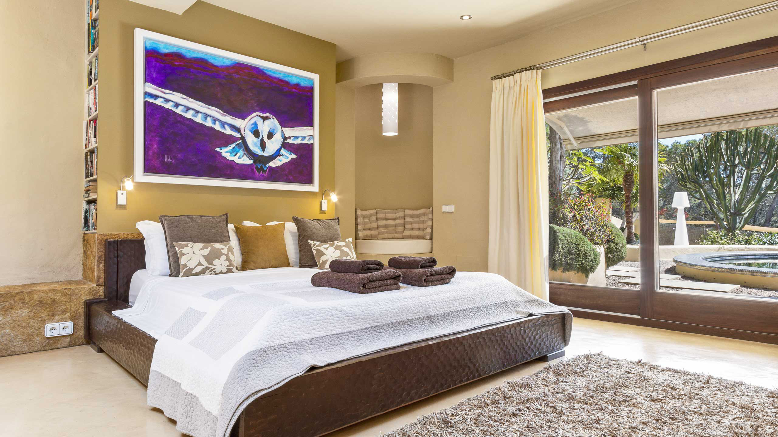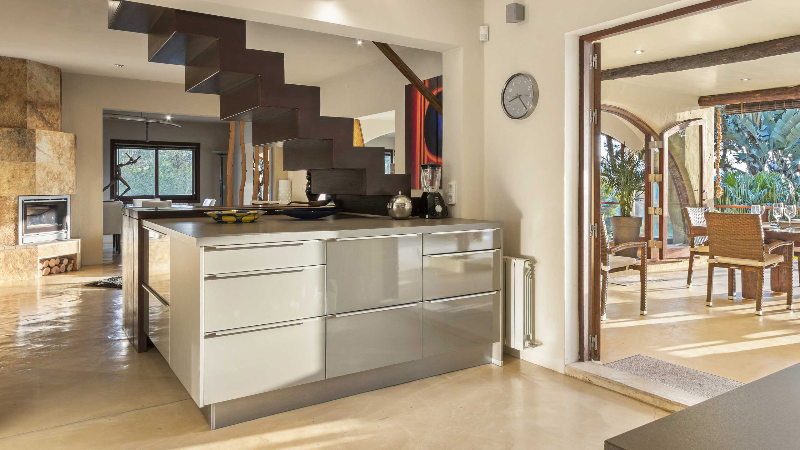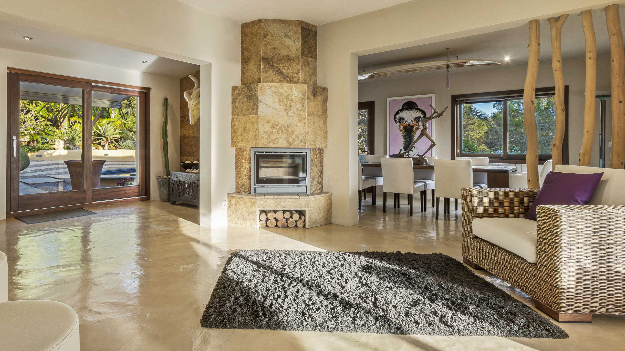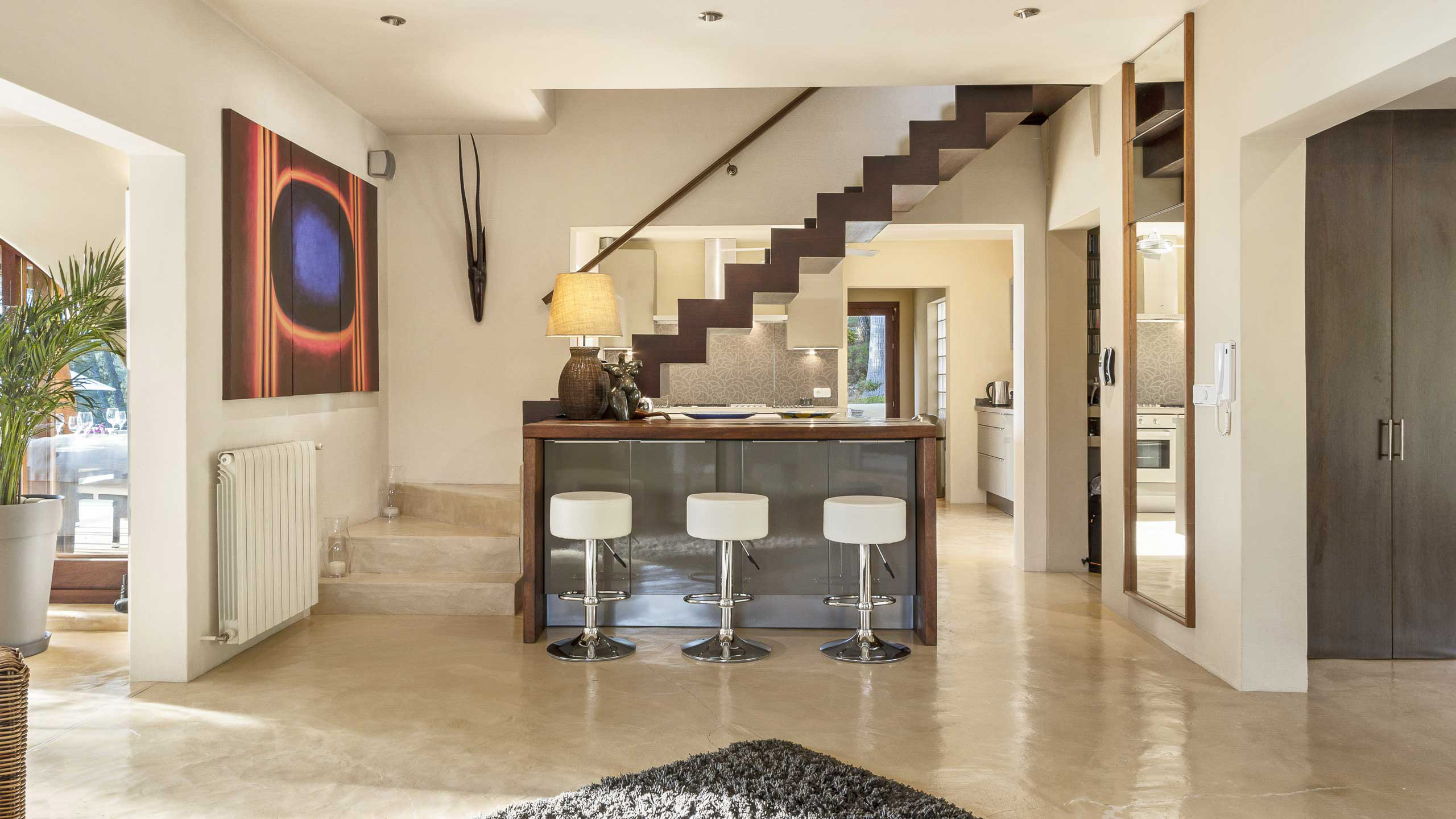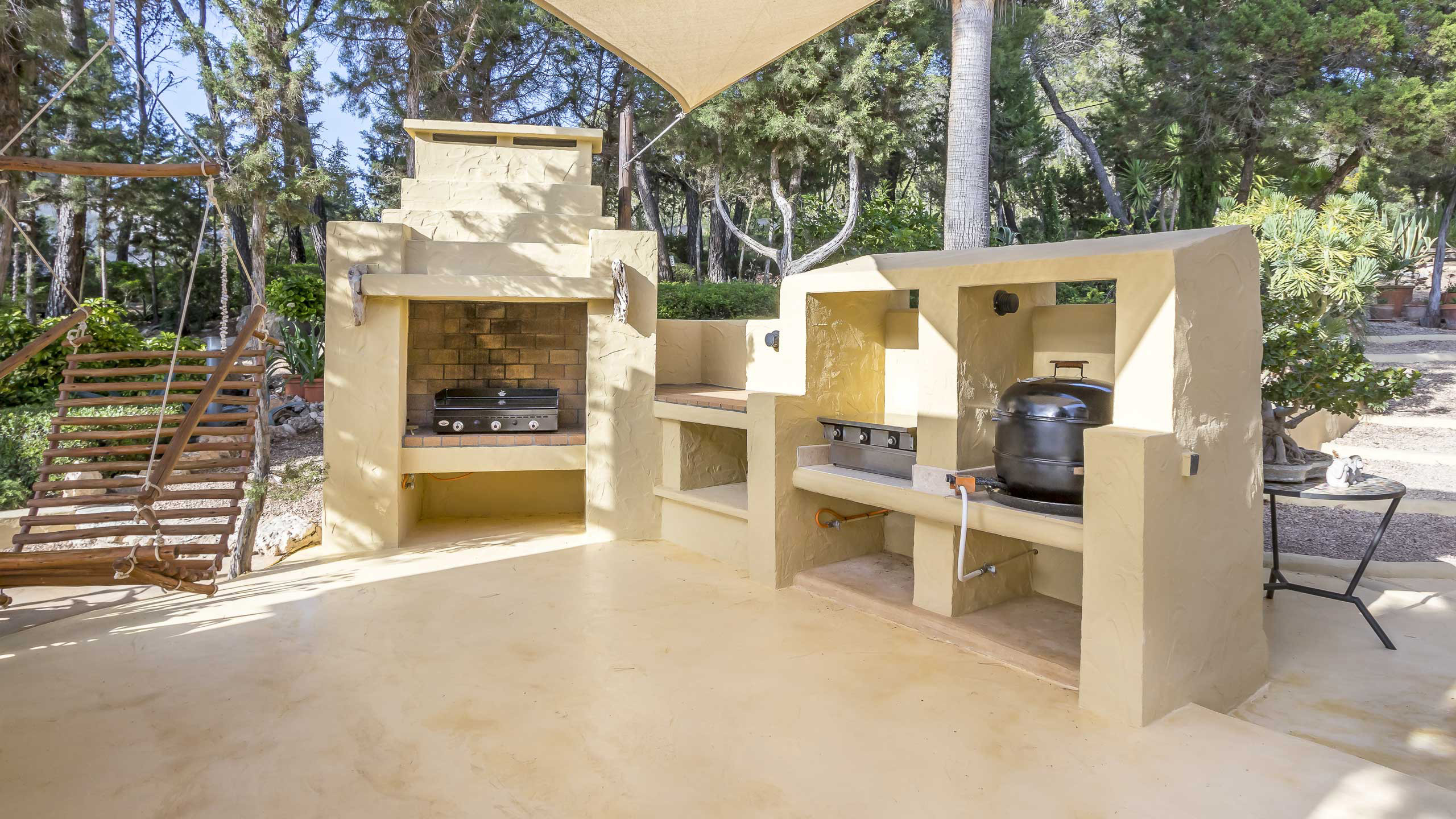 Villa Fergolia is set in verdant countryside, the contemporary Mediterranean-style residence has a roof terrace with spectacular views of the sea and Ibiza's sunsets.