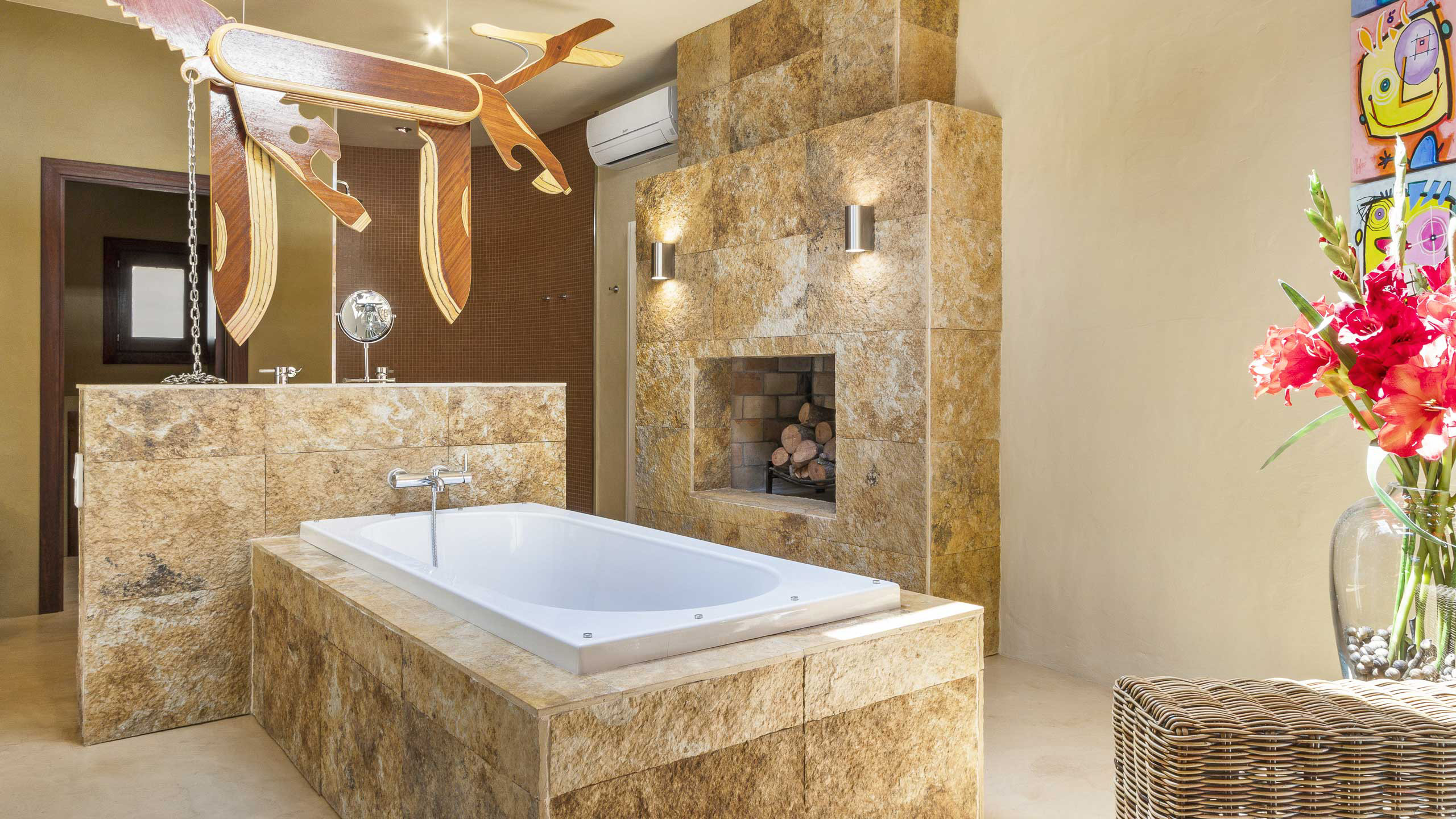 6 Guests1 Master Bedroom with double bed, A/C, en-suite bathroom with open bathtub and shower, walk-in wardrobe, fireplace