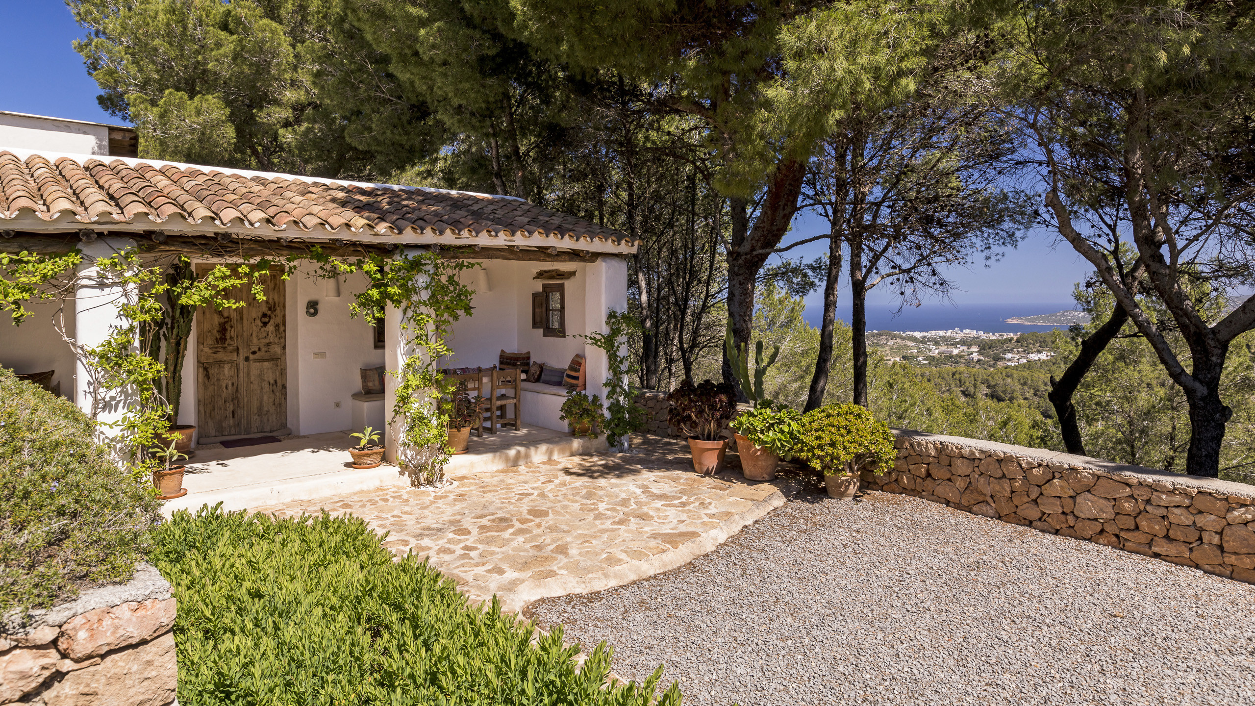 Finca Nicoletta is a magnificent property hidden in the countryside near Sant Josep, nestled in an unspoiled setting among olive groves, fruit trees, palm trees, and giant cacti. The impression is of living in a paradise secluded from the world, yet remaining a short distance from the amenities offered by the nearby town. Many excellent beaches are easily accessible without overly strenuous travel.