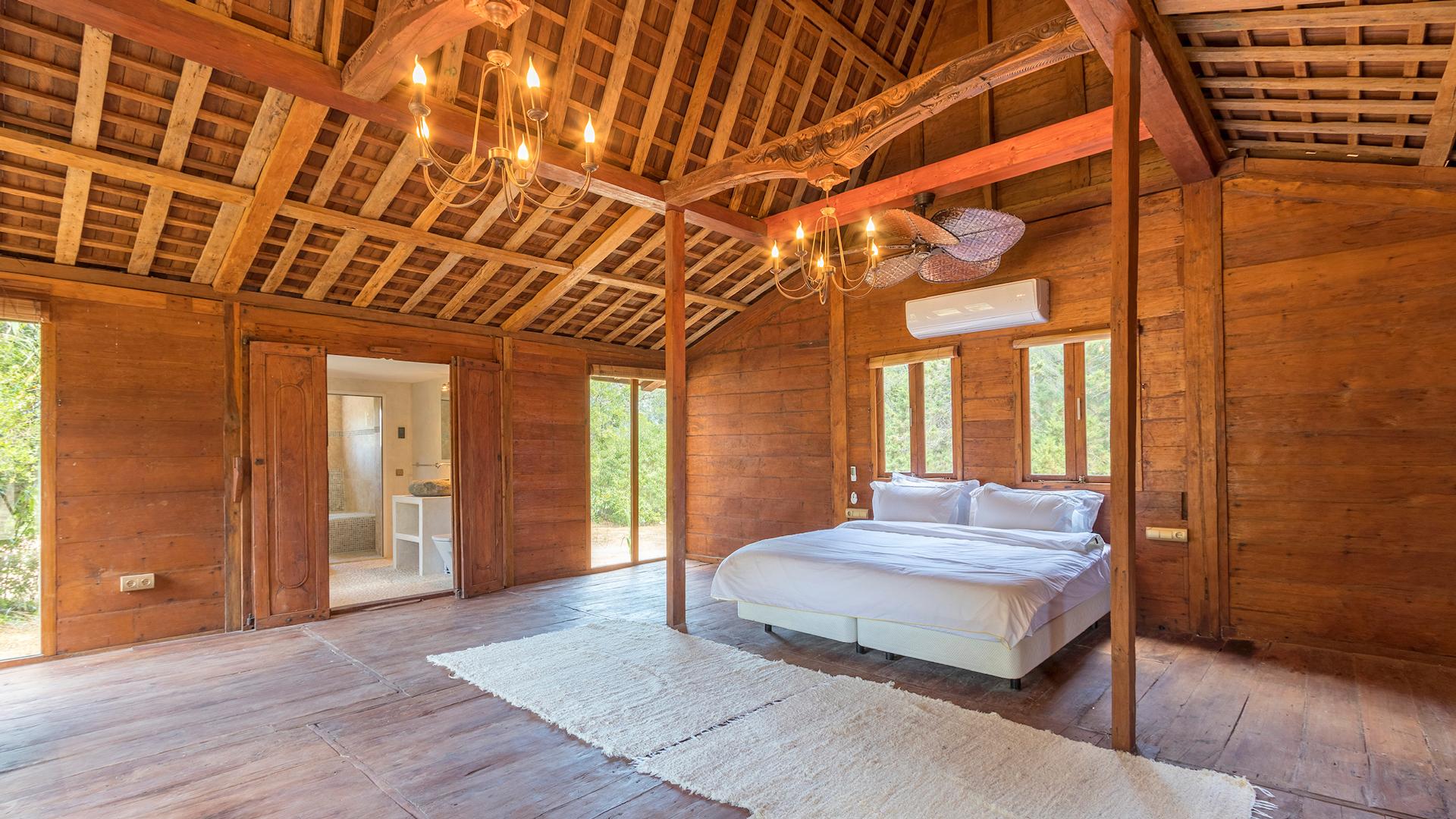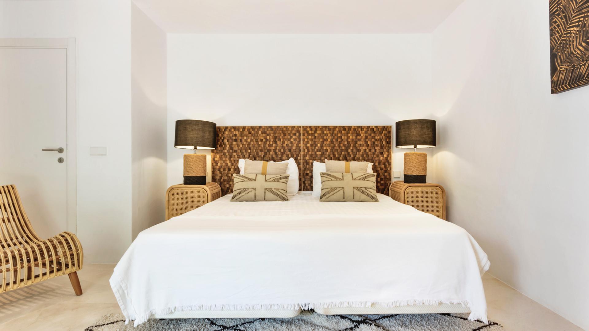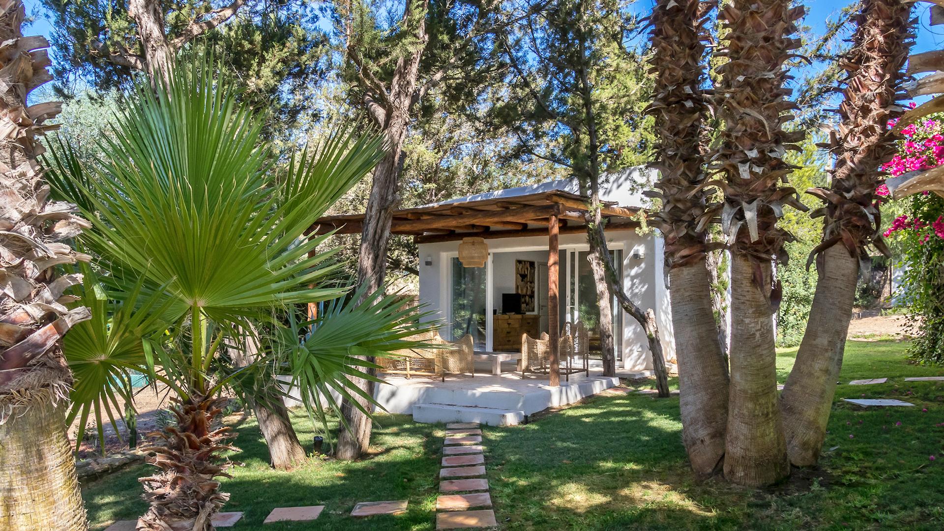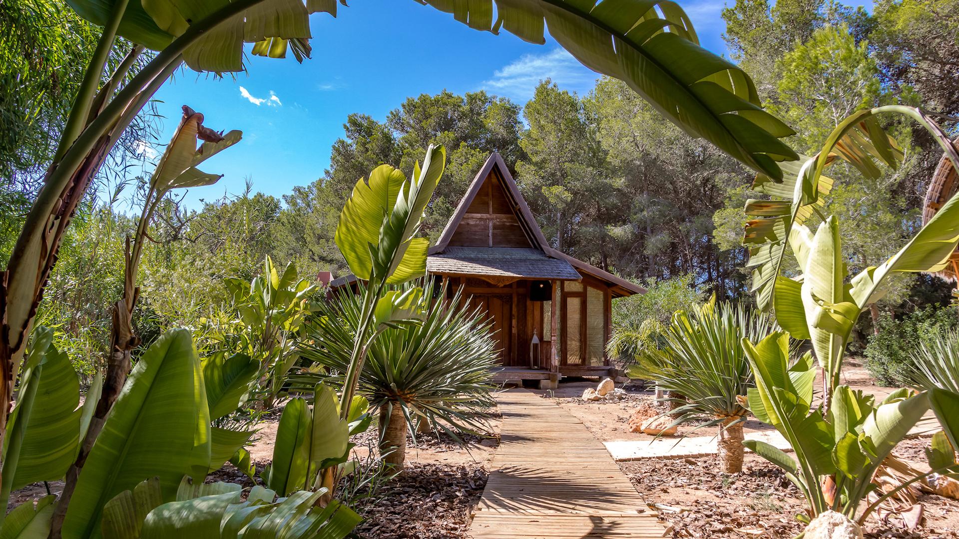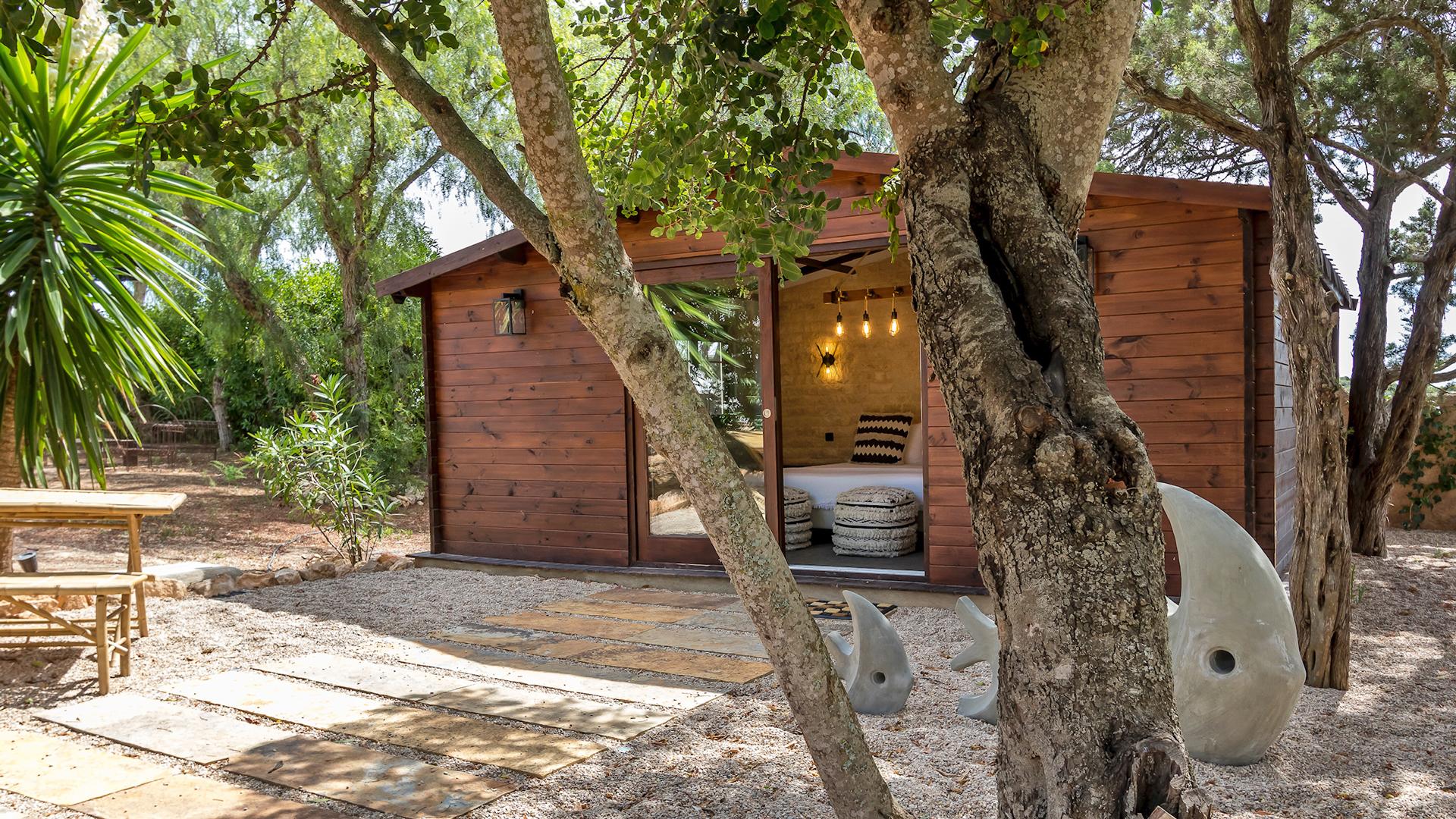 The interiors are modern and elegant, with clean lines and plenty of natural light. They feature all the latest comforts and a tasteful palette of colors and décor elements that give each space a unique personality, while maintaining a cohesive style throughout. The main house hosts seven bedrooms across two levels, while five independent guest houses are scattered throughout the garden—perfect for those seeking extra privacy. Some of these are delightfully unconventional, like the Balinese-style Casita or the wooden cabin, yet all share the same high standard of comfort.
