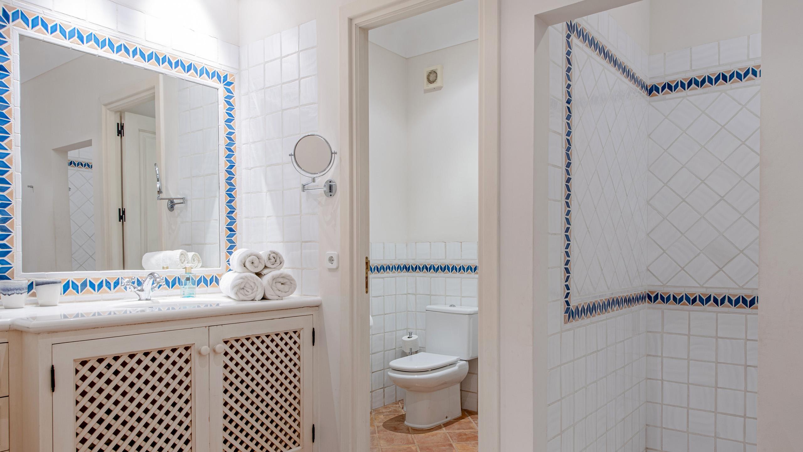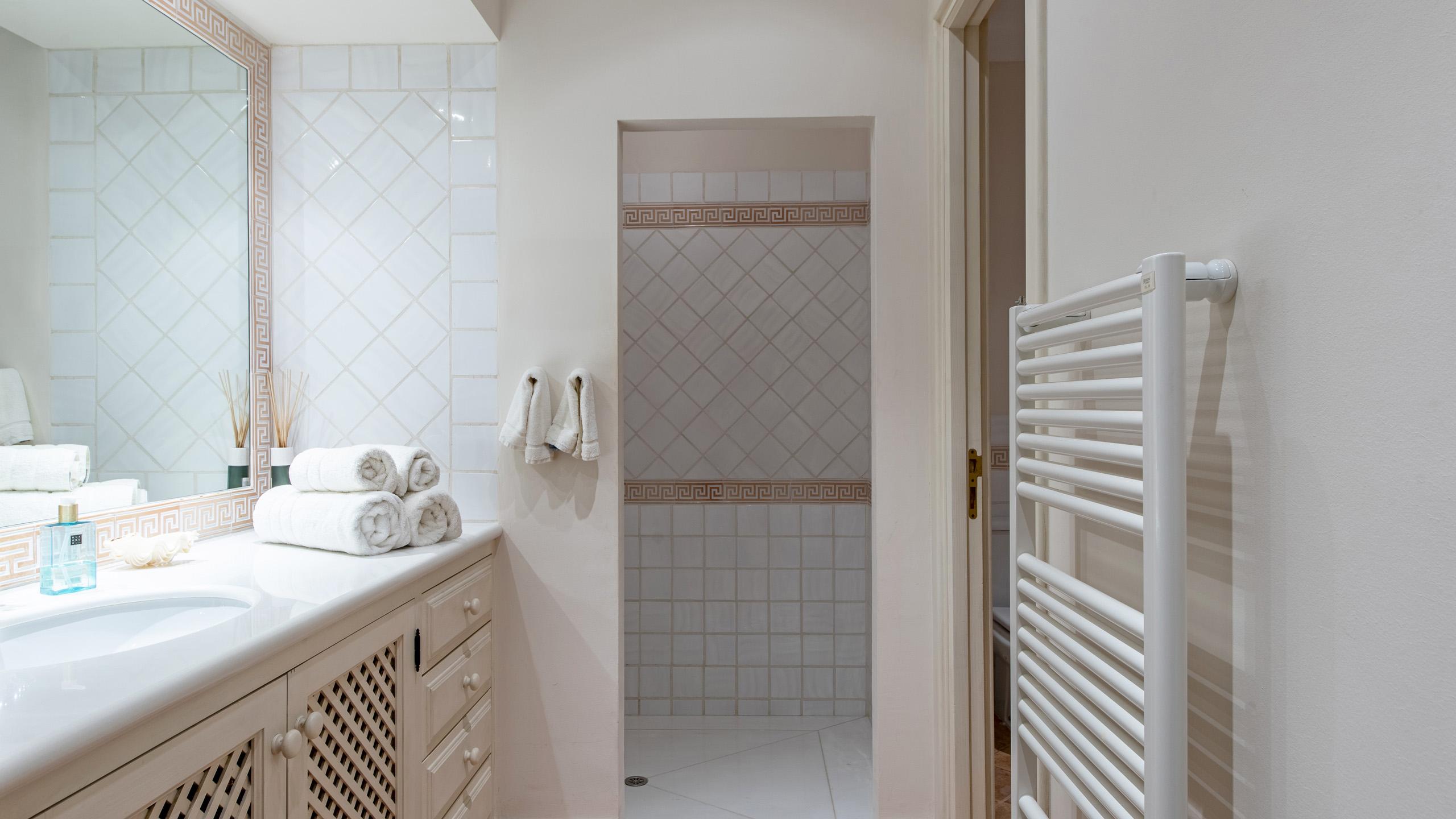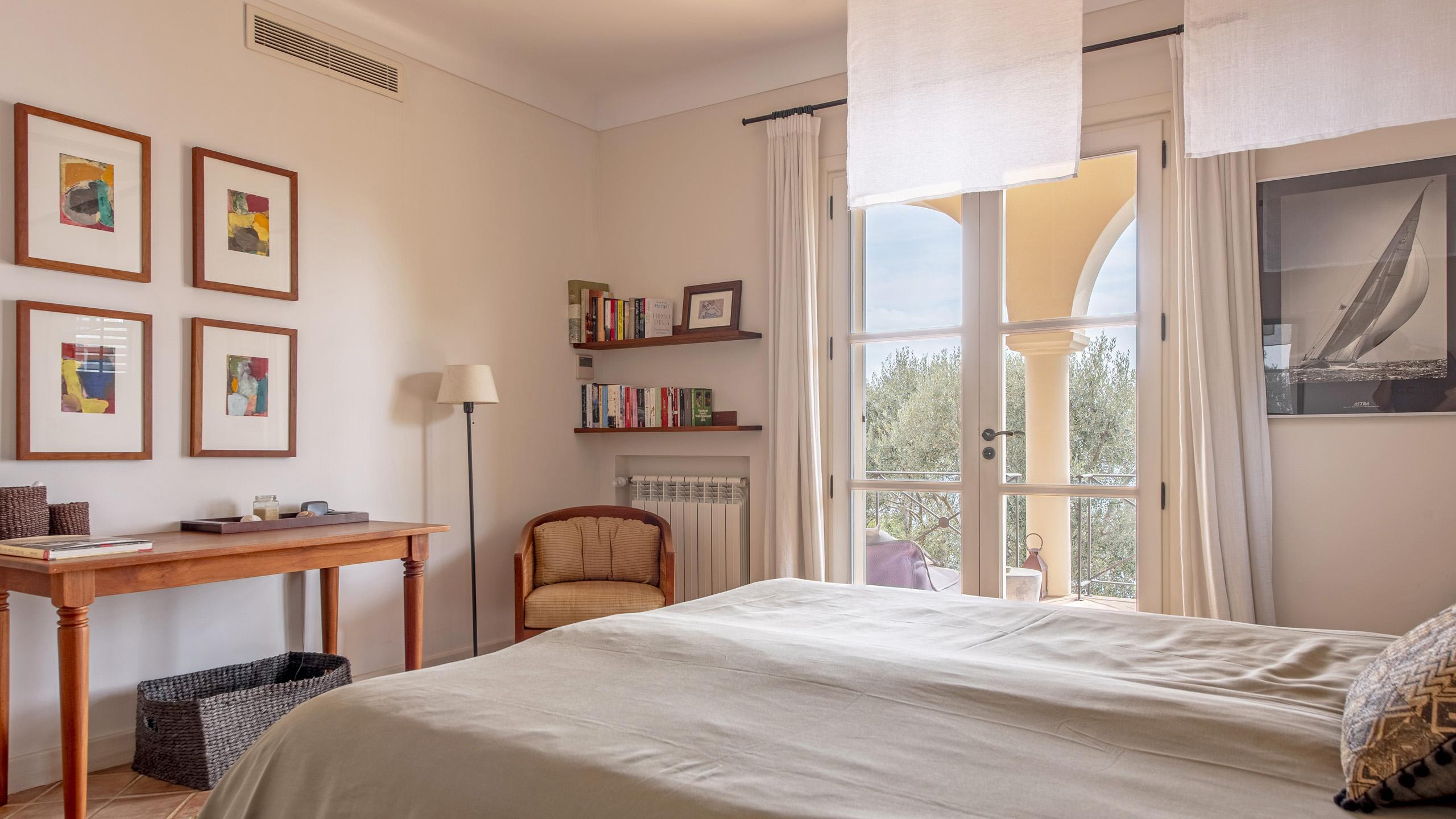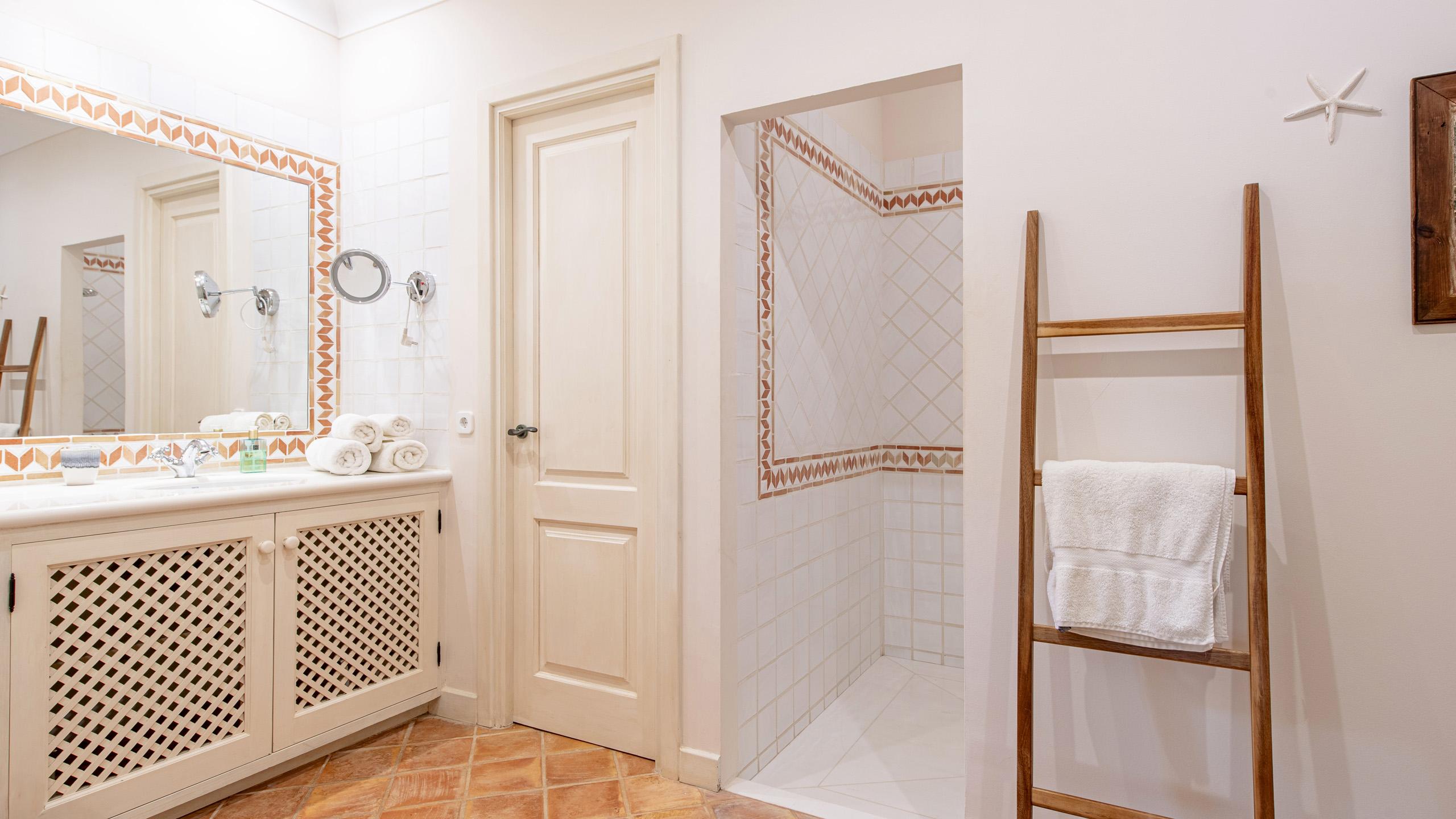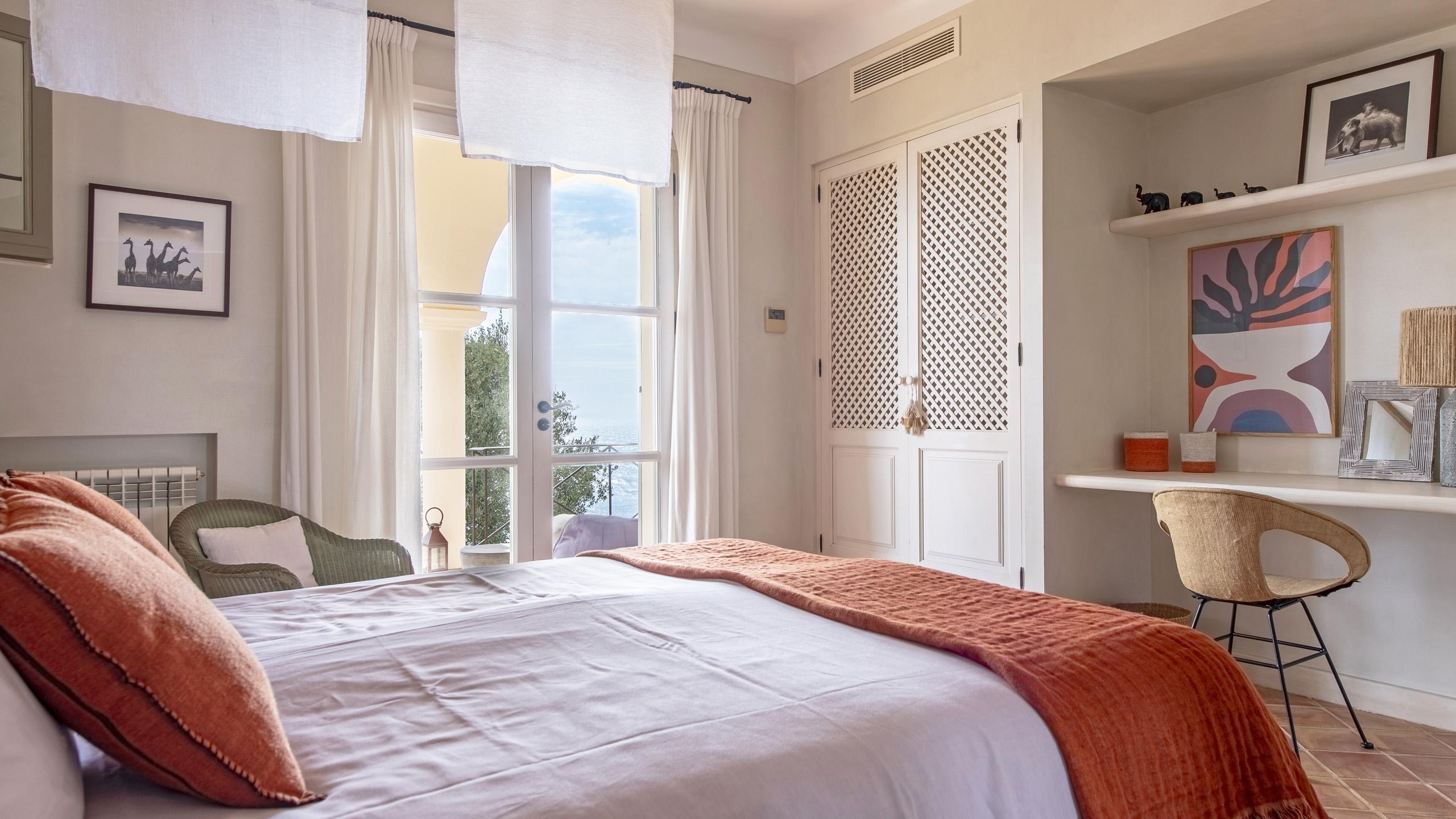 1 Guest Bedroom with double bed, A/C, en-suite bathroom with shower, direct access to shared terrace, sea view