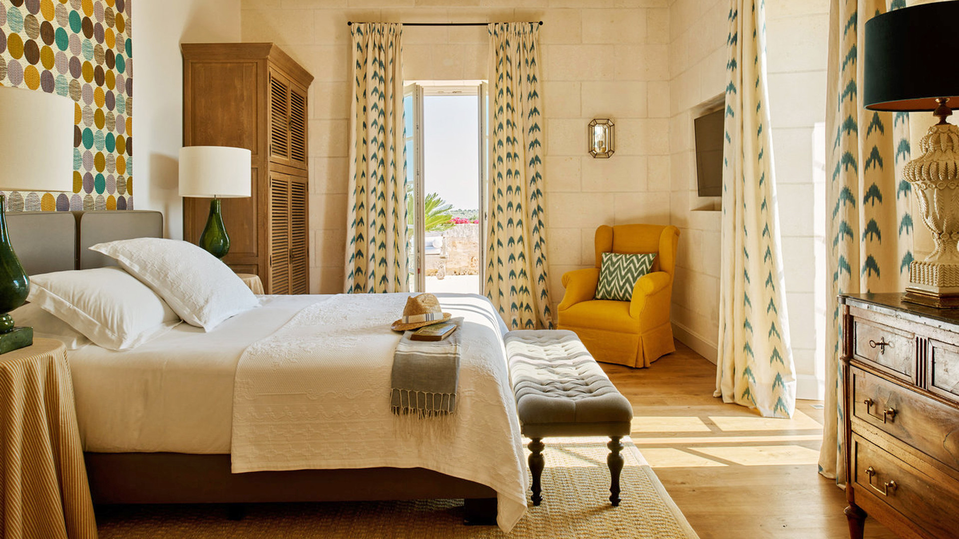 The interiors of San Lorenzo emphasize a classic, impeccable, and tasteful style. The furnishings are rich and consistent with the setting, creating a sense of warmth that fills each room, from the common areas—which include a bar and library—to the comfortable bedrooms, spread across three distinct levels and an independent guest house nearby for guests seeking a bit more privacy.