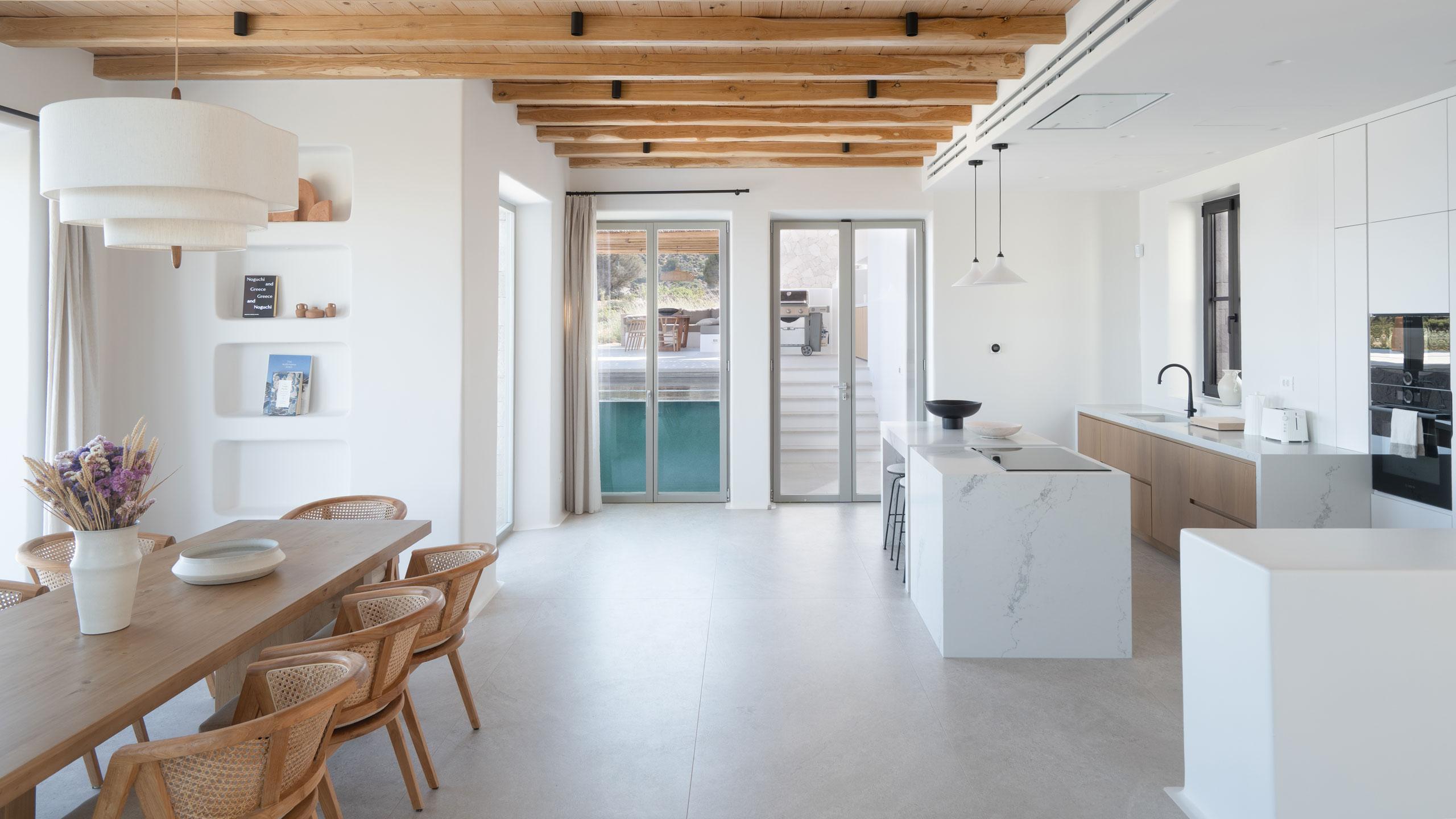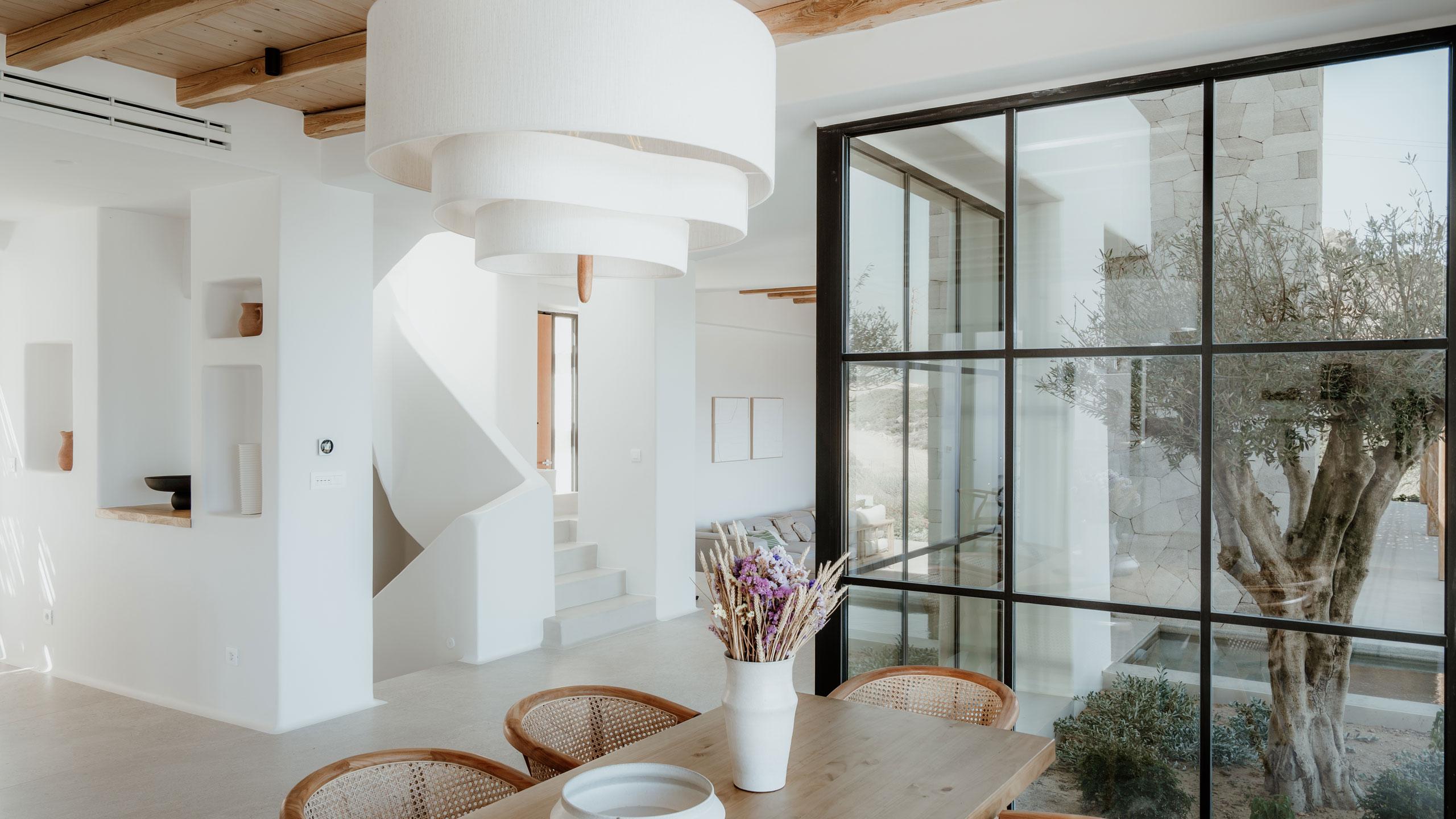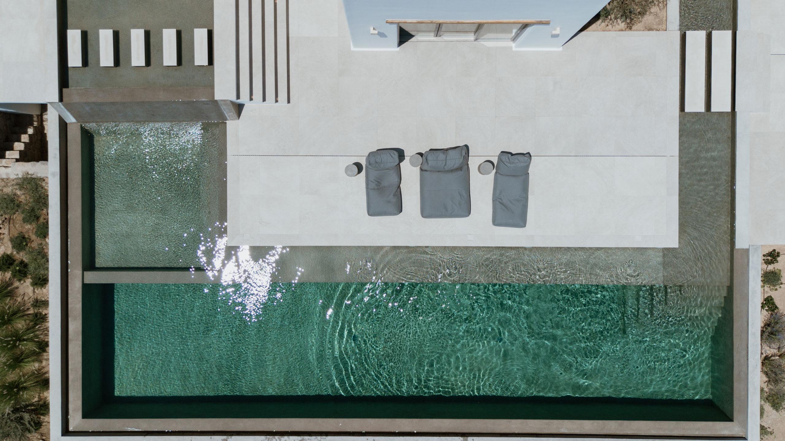 Outdoor living is elevated to an art form with a 60 sqm private infinity pool, a separate plunge pool, and expansive lounge areas perfect for sun-drenched relaxation. These curated spaces invite you to disconnect from the world and immerse yourself in the rhythmic beauty of the Cycladic landscape. From sunrise over the Aegean to starlit evenings on the terrace, every moment is designed to ensure your stay on Milos is nothing short of extraordinary.