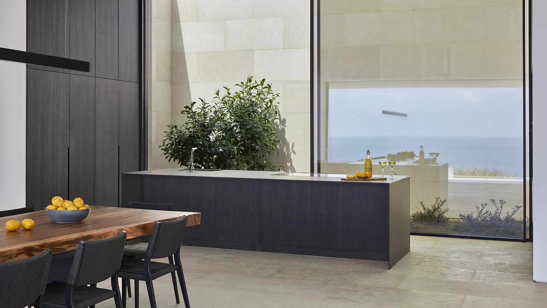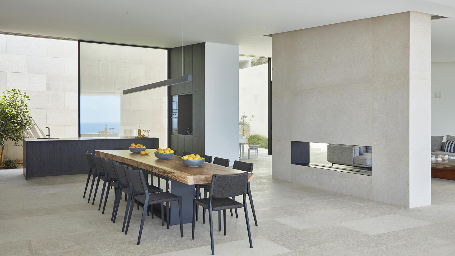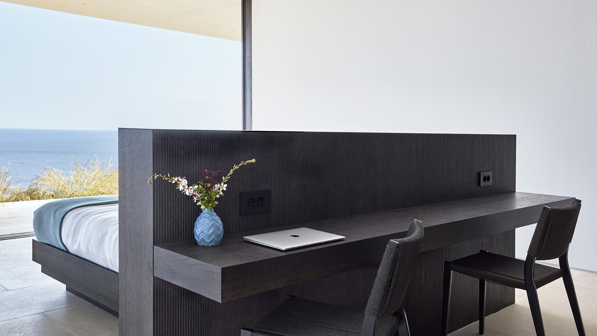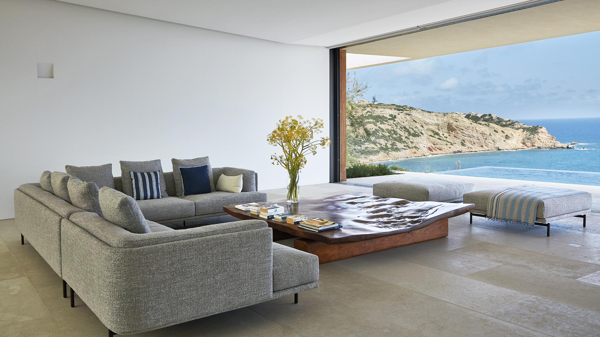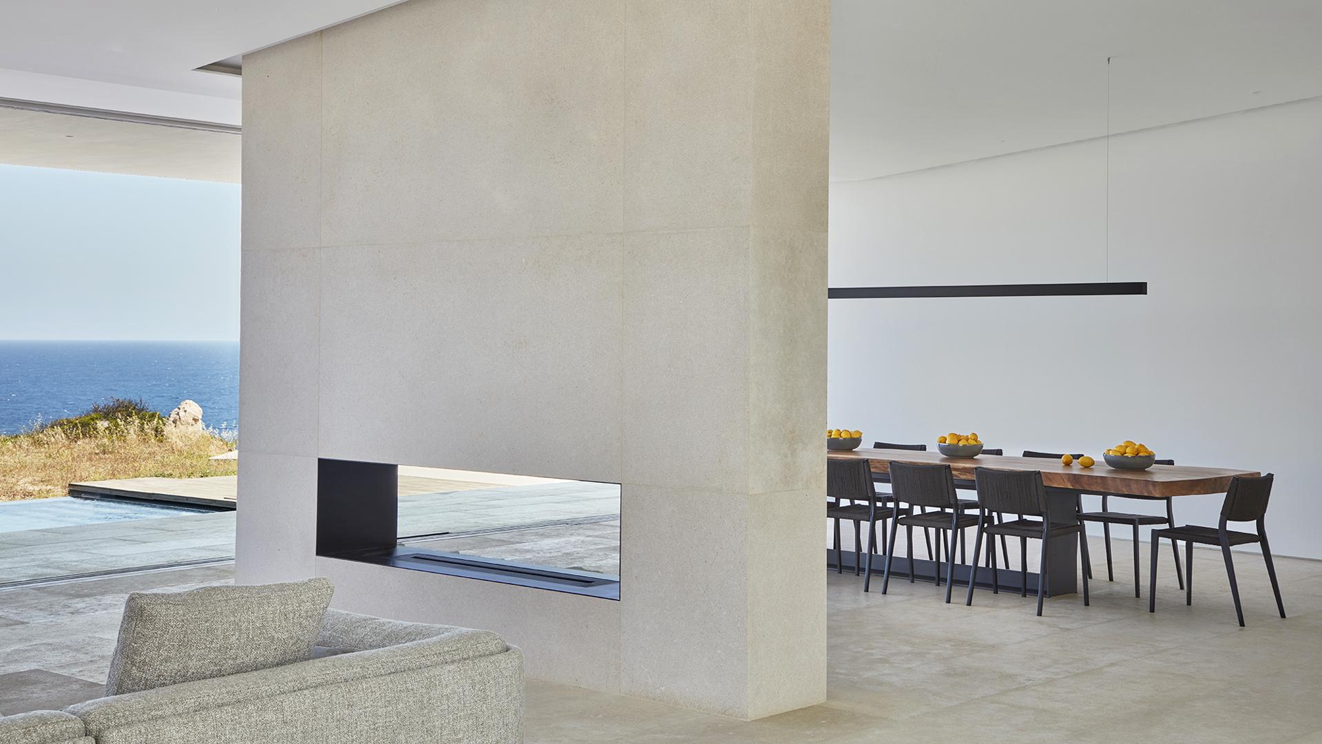Designed as two independent villas carved into the landscape, the property features bioclimatic architecture in perfect harmony with nature. The main villa offers four elegant bedrooms and a private pool, while the guest villa mirrors this with four additional bedrooms and its own pool. Minimalist interiors frame breathtaking sea views, creating a calming atmosphere where luxury feels effortless.