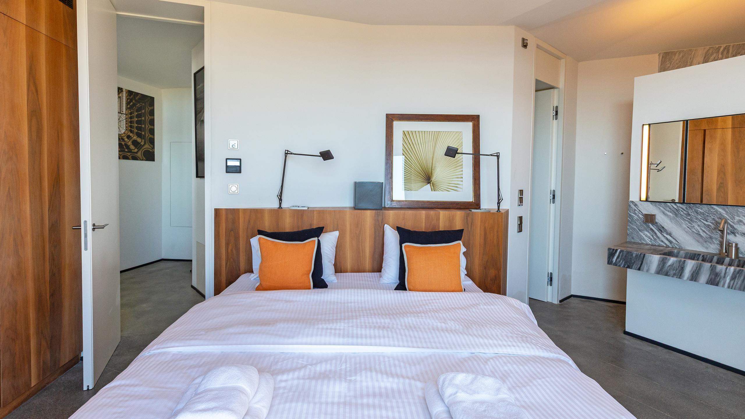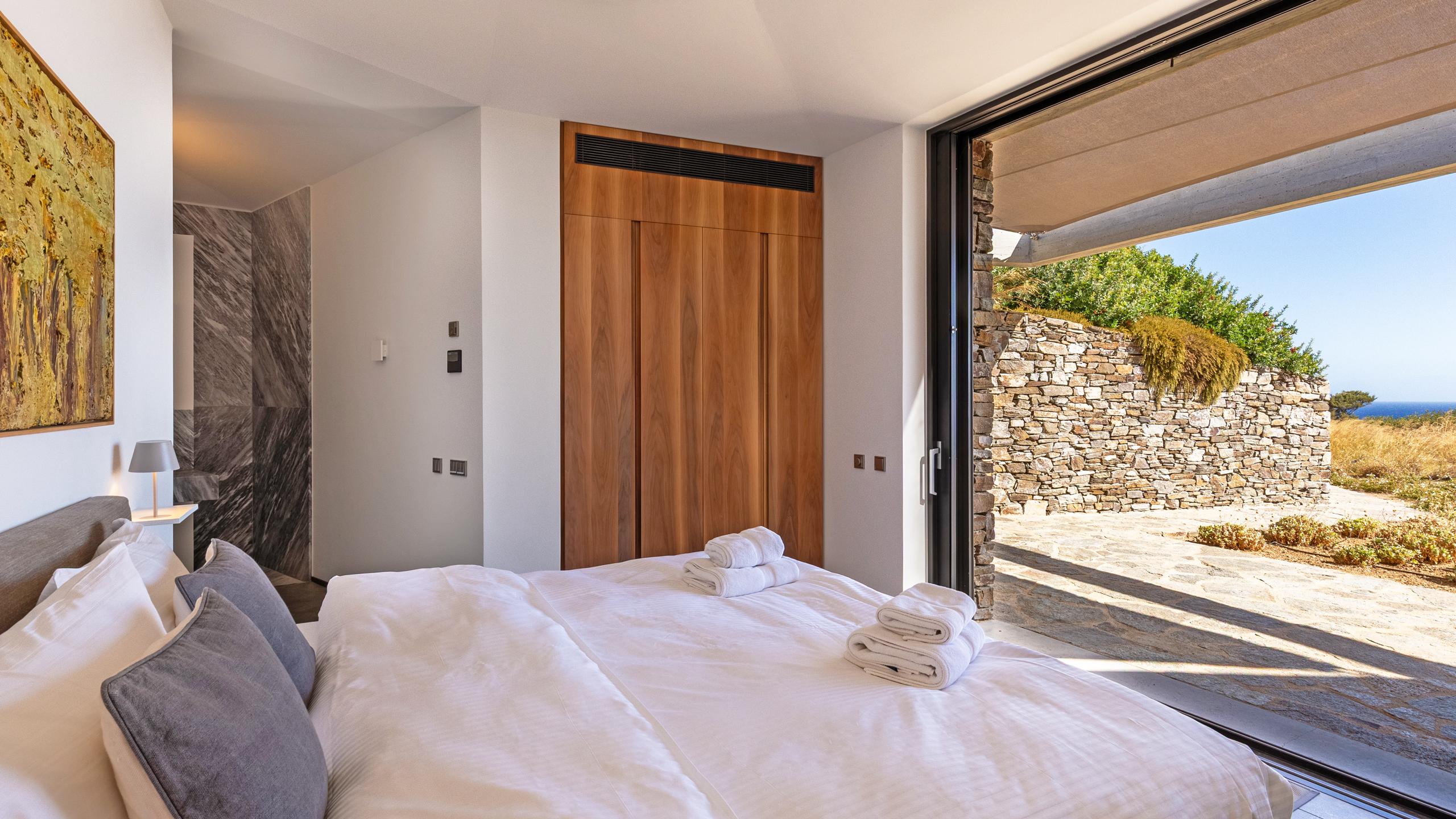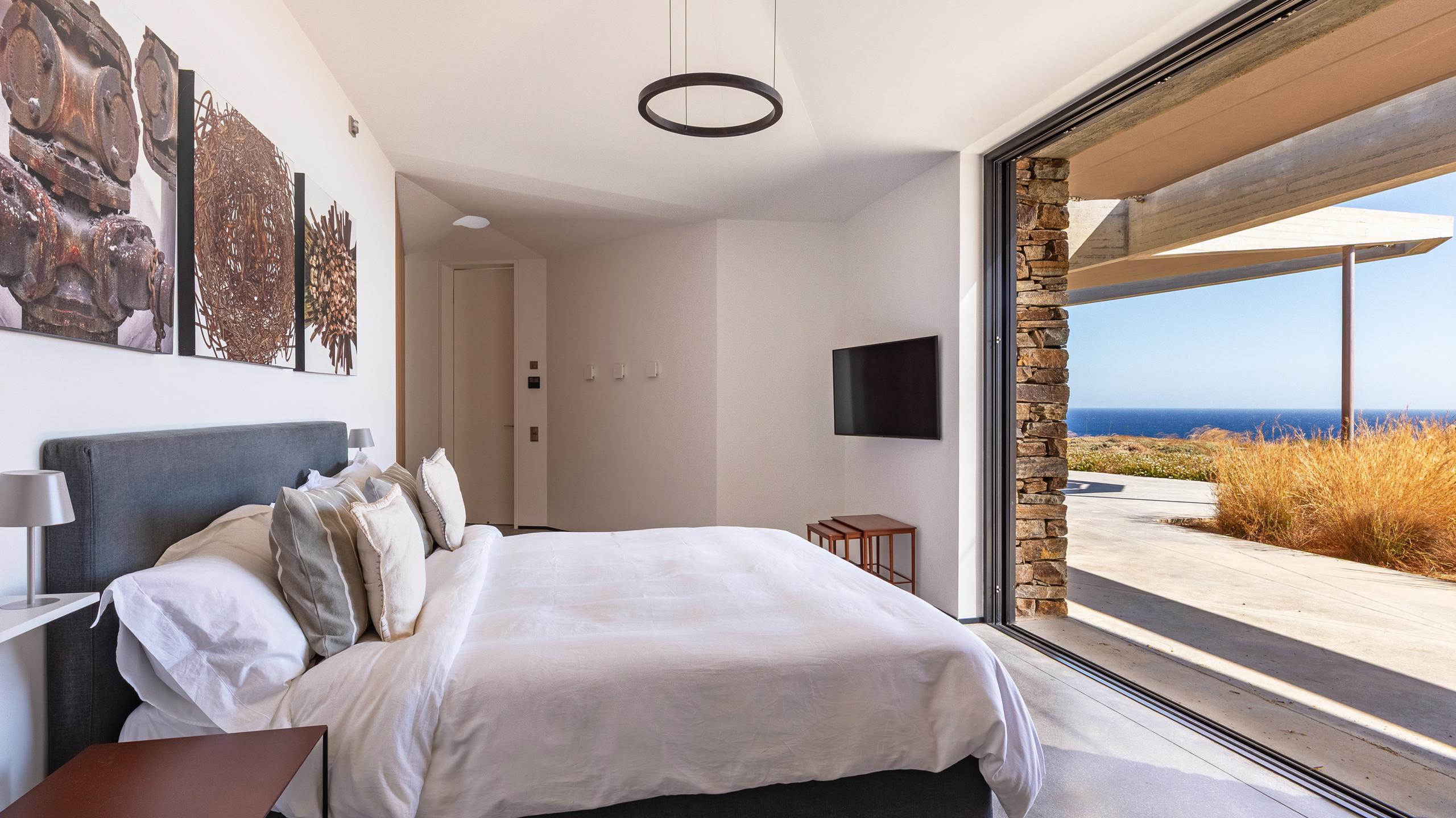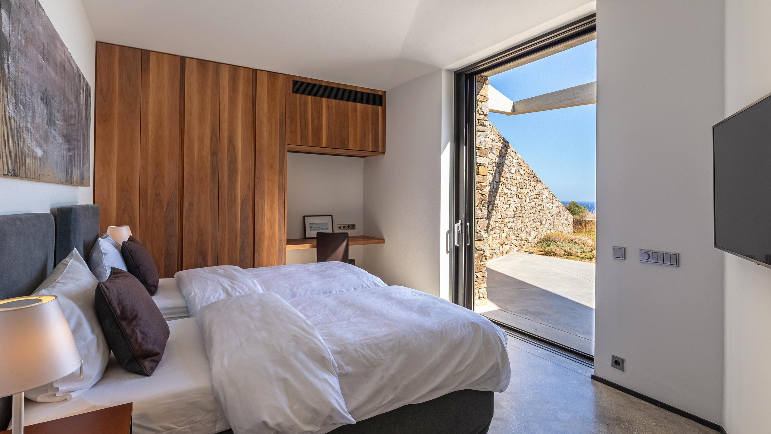 Inside, the aesthetic continues with refined precision. Smooth concrete surfaces, sculptural furniture, and bespoke lighting define an interior of uncompromising style. The living areas open effortlessly to the outdoors, creating a fluid continuity of space. Each bedroom is a private retreat, equipped with the highest comfort standards and curated design details, offering both seclusion and sophistication.