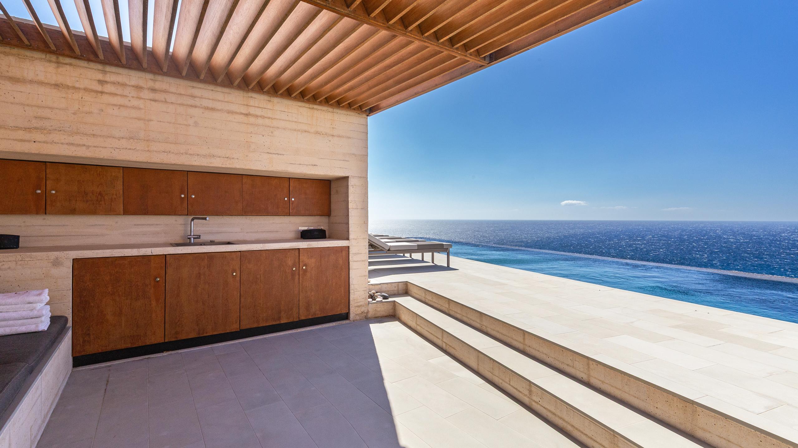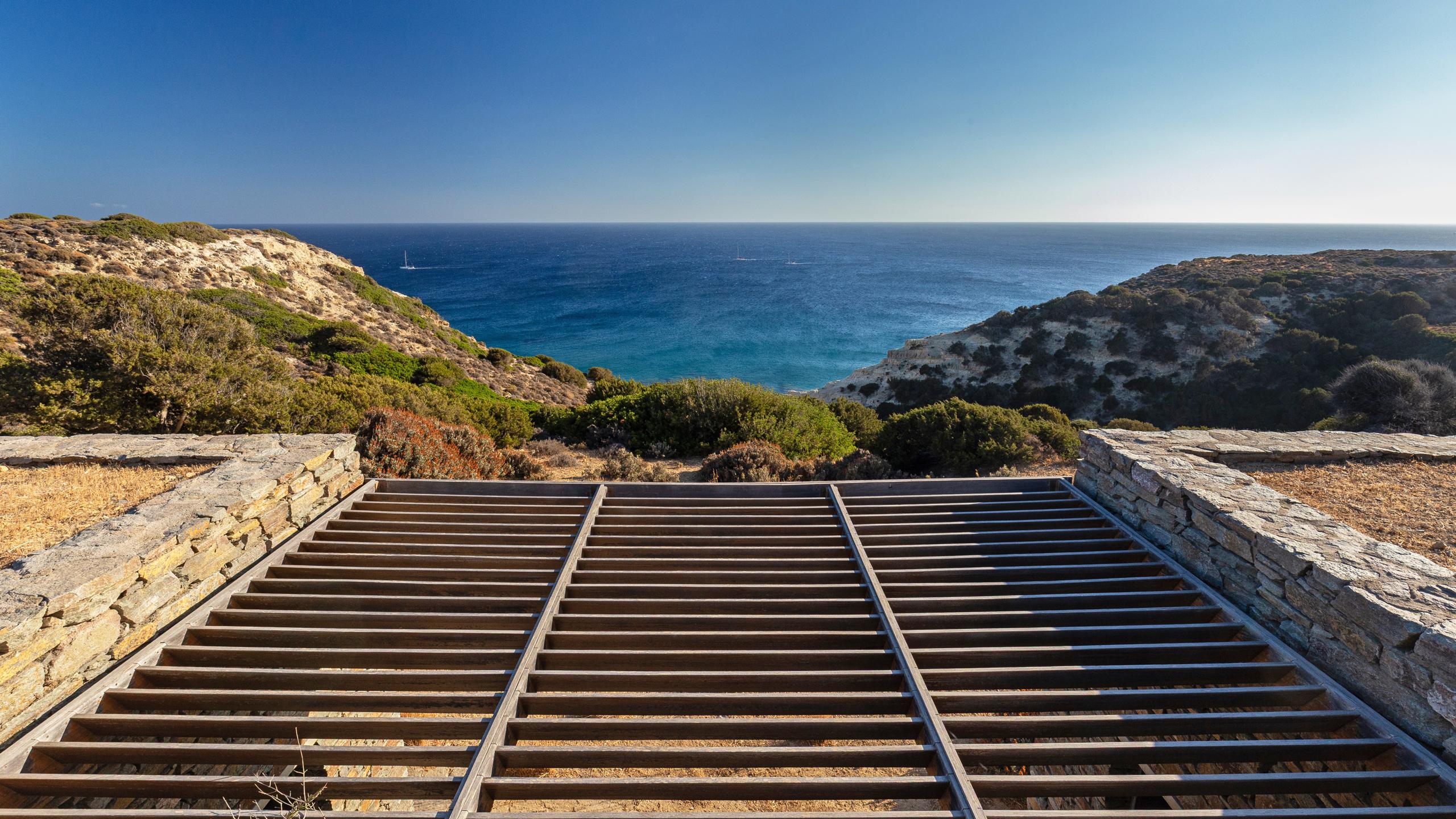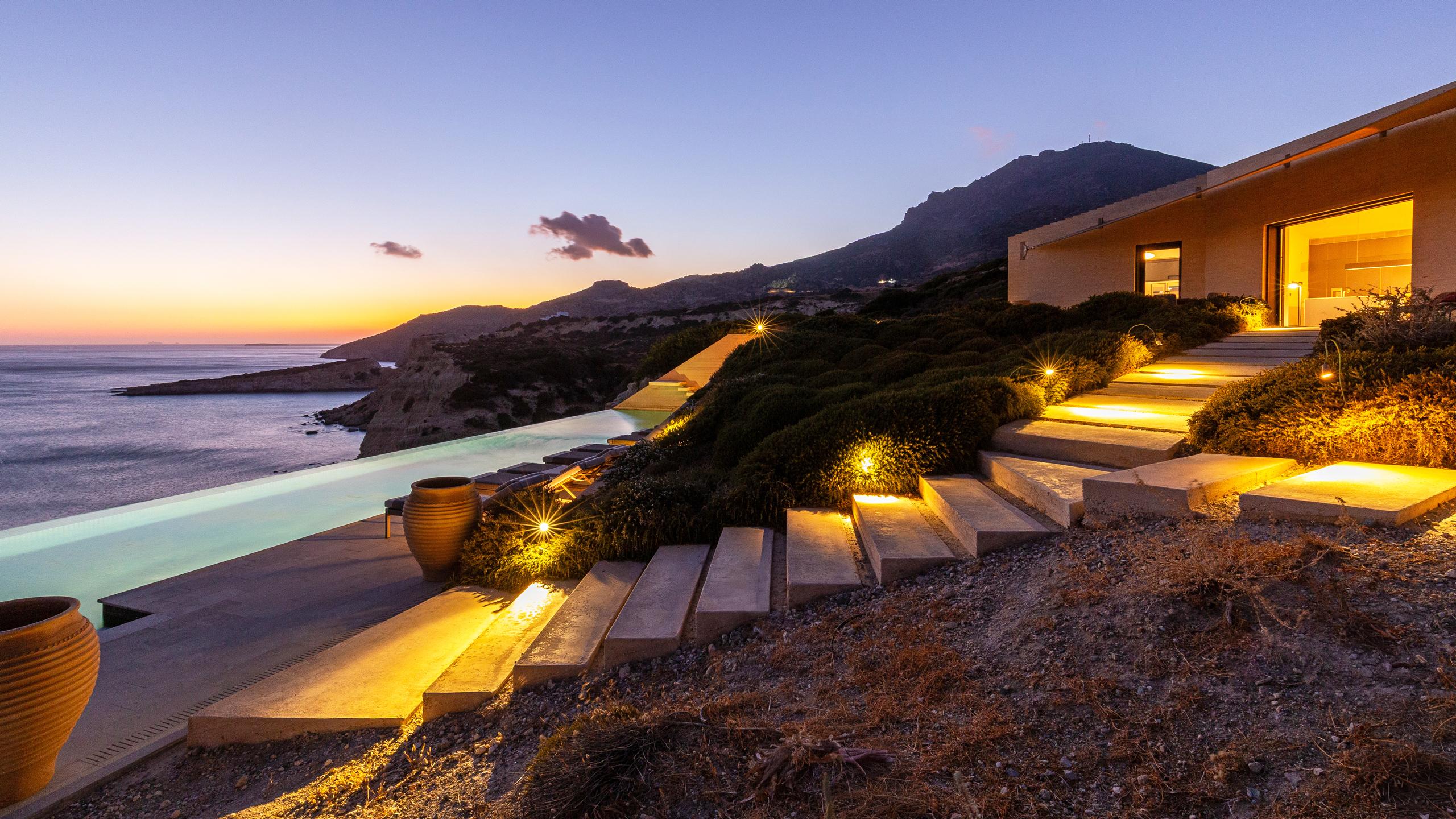 Outside, nature reigns supreme, with breathtaking, unobstructed sea views. A stay here reconnects you with nature and the unhurried rhythms of the island, surrounded by a wild and captivating setting. Every comfort is at guests’ disposal, from the alluring clifftop infinity pool to the sheltered, sunken dining area protected from the wind—always with the incredible view as the unifying element.