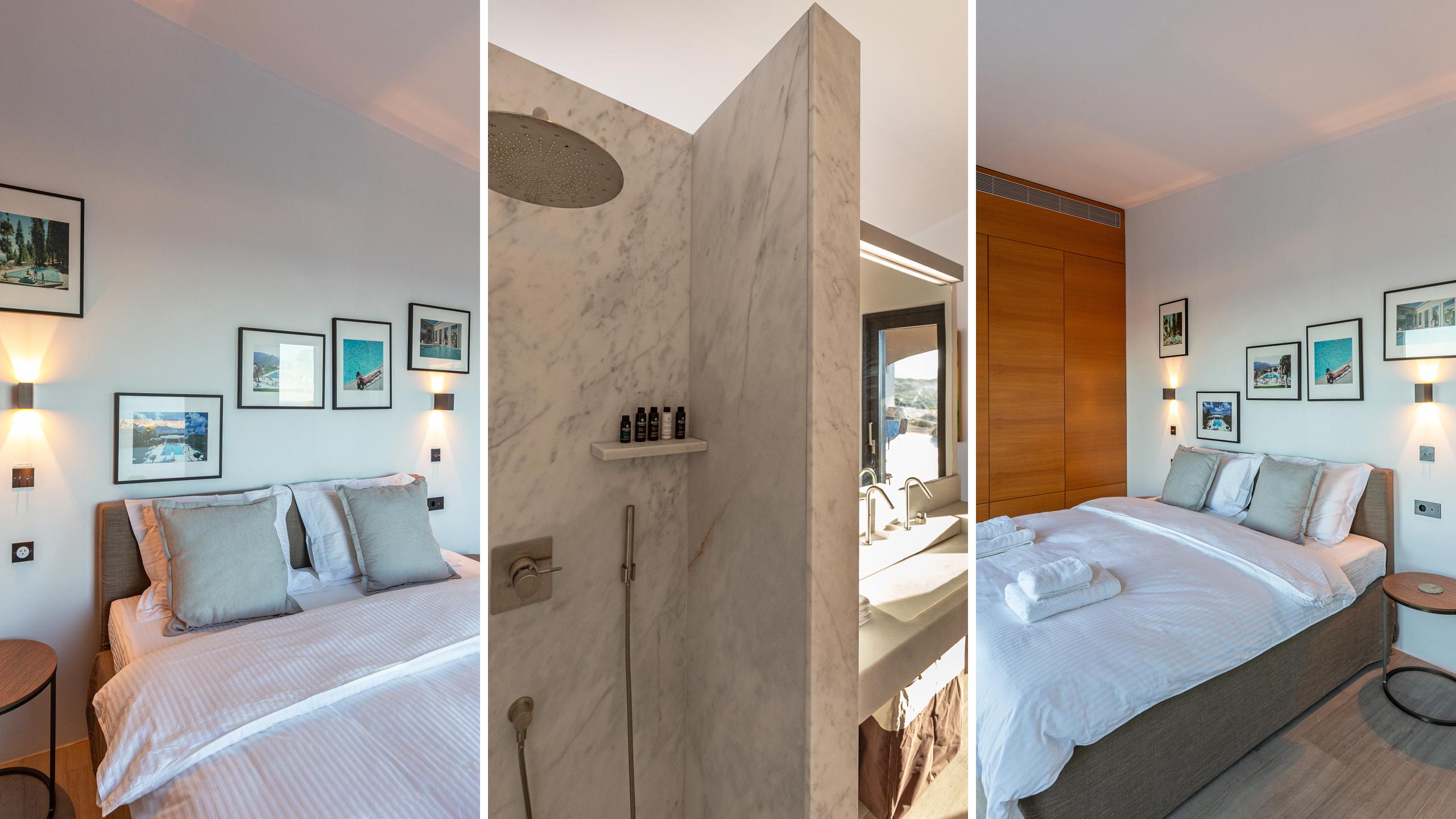 1 Guest Bedroom with double bed, A/C, en-suite bathroom with shower, sea views