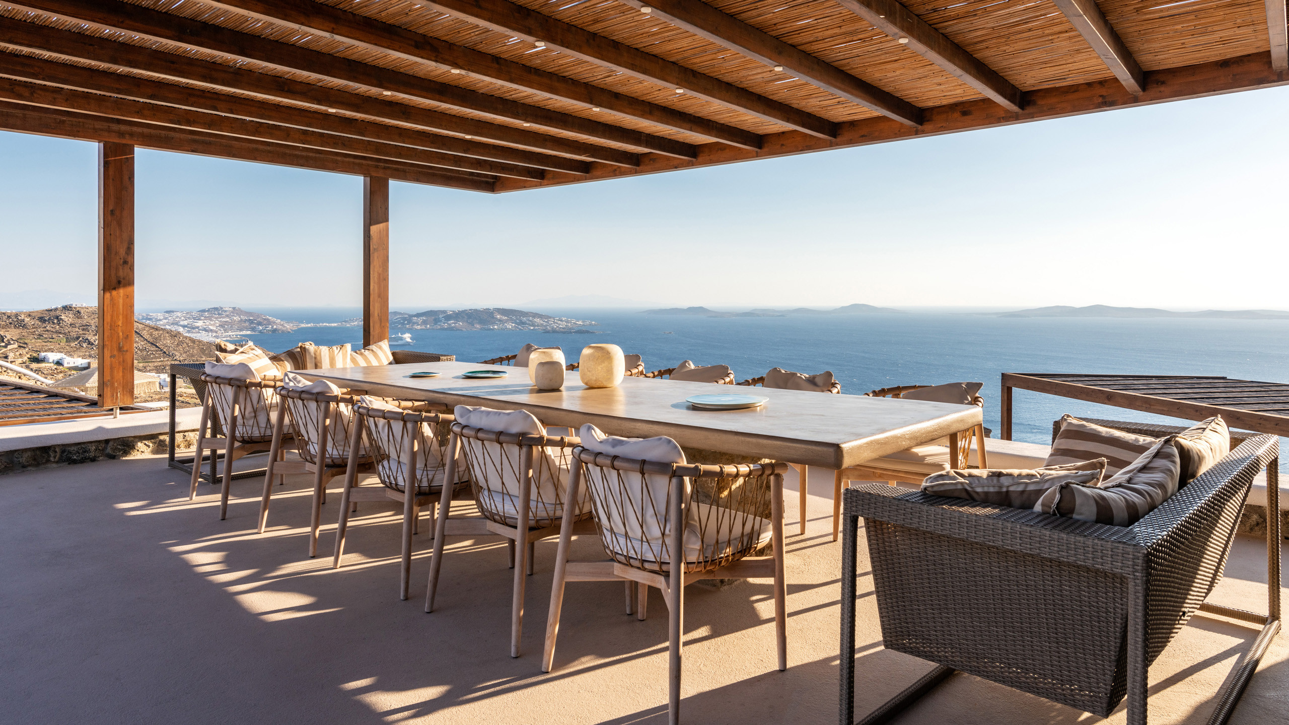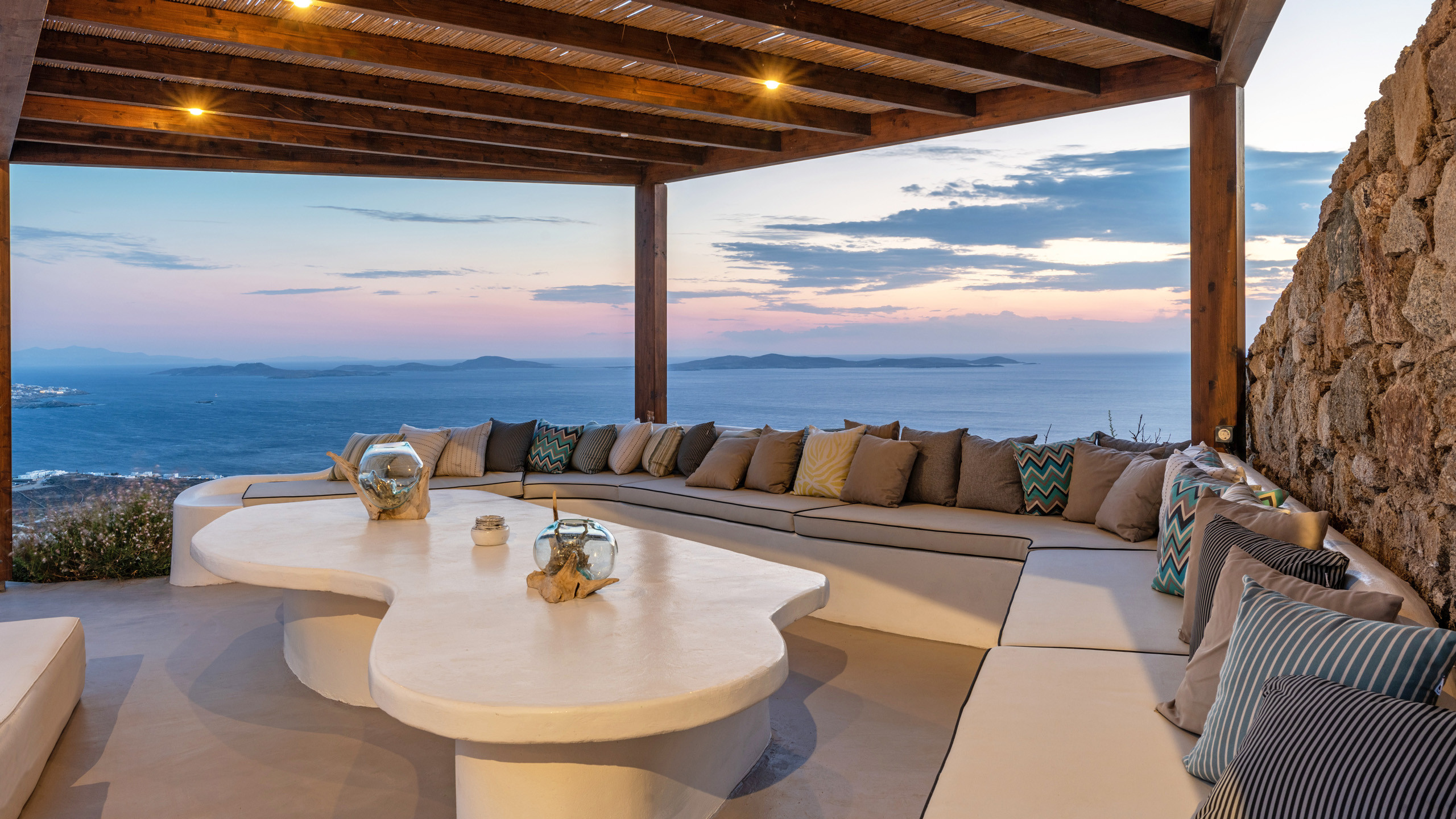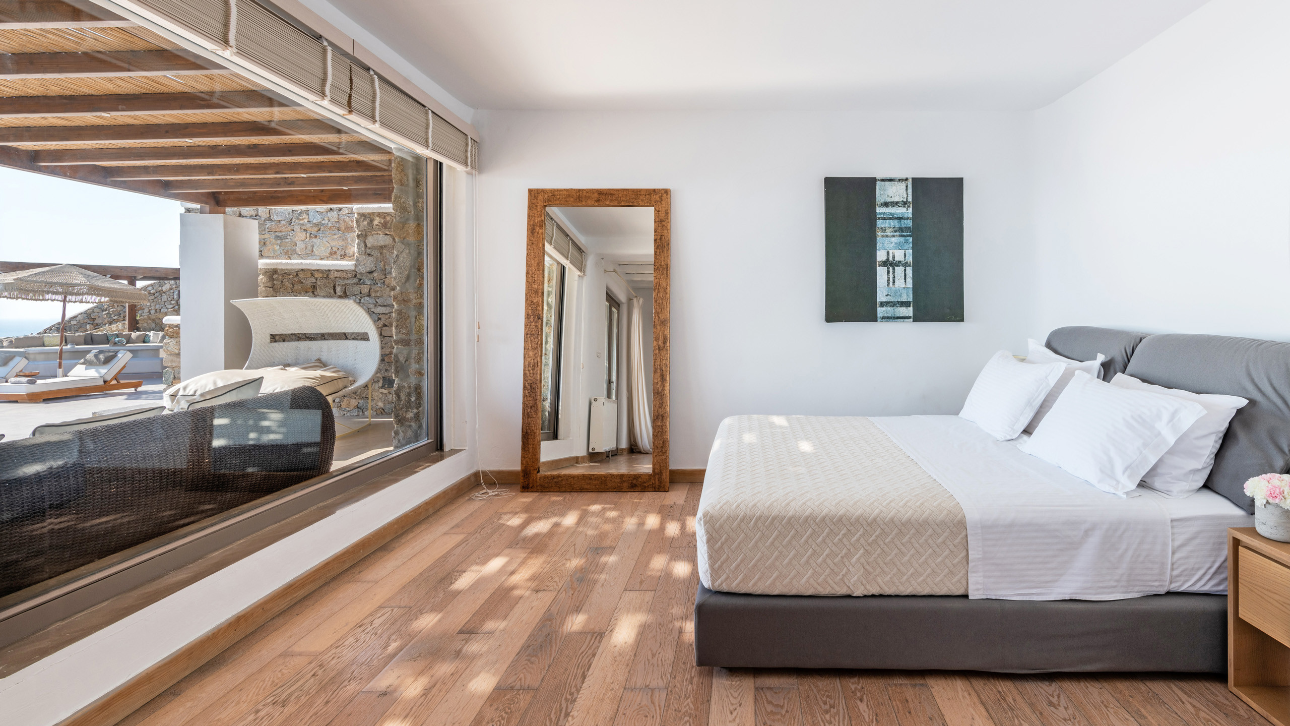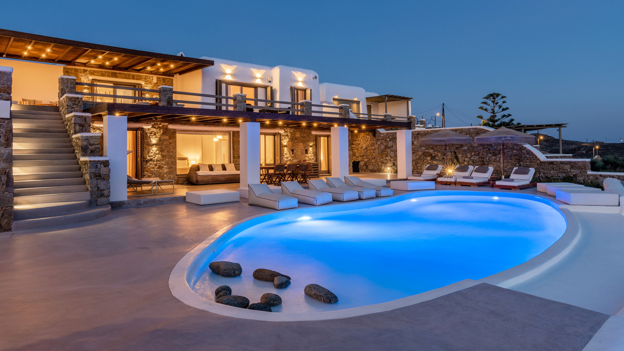 The Tourlos area has seen a significant increase in prominent properties, including undoubtedly Magneto, a private villa with a modern and captivating taste. From its advantageous position, it enjoys a magnificent panoramic view of the sea and sunset, maintaining a certain privacy as the area is not too frequented by large tourist flows.