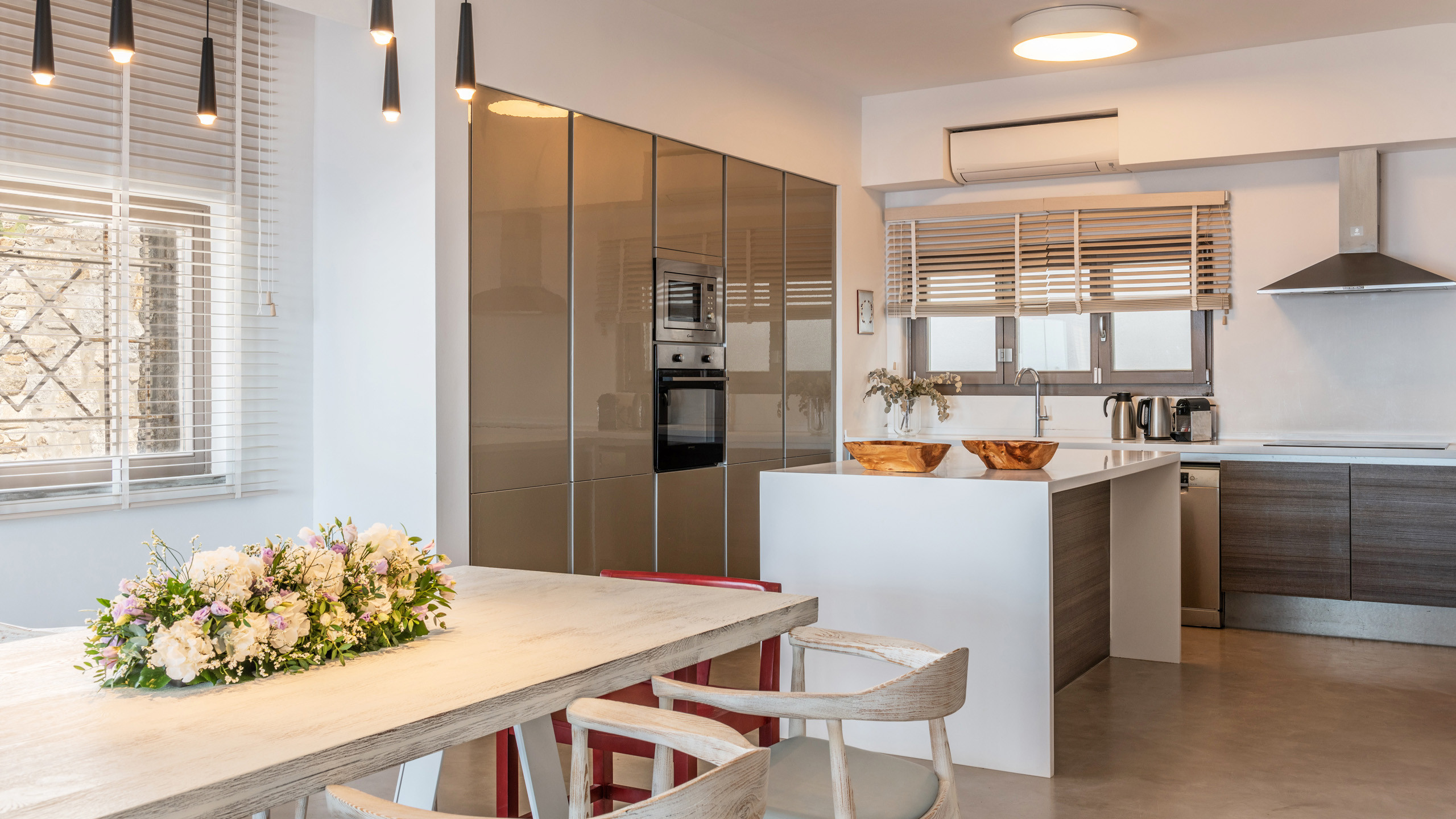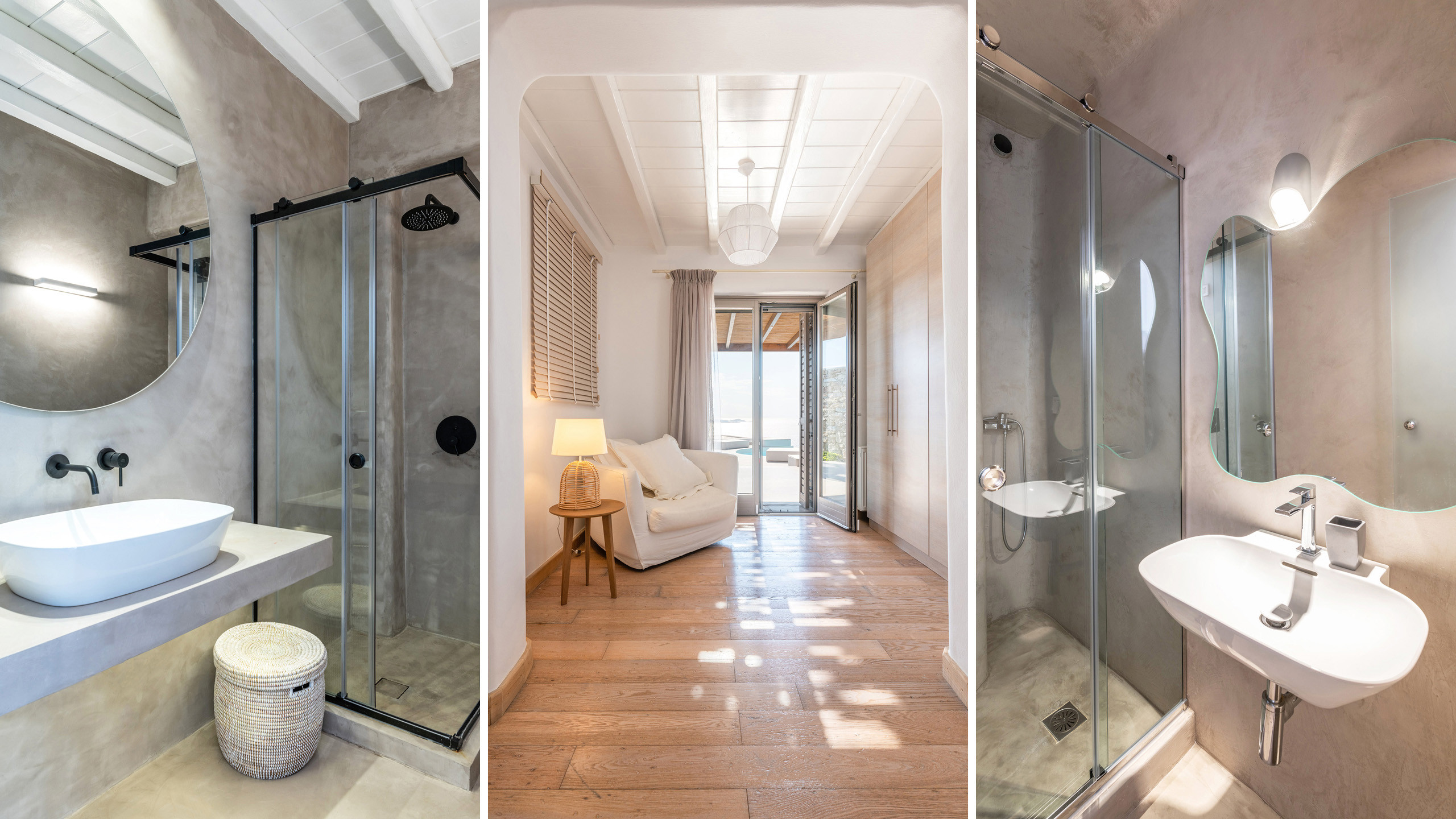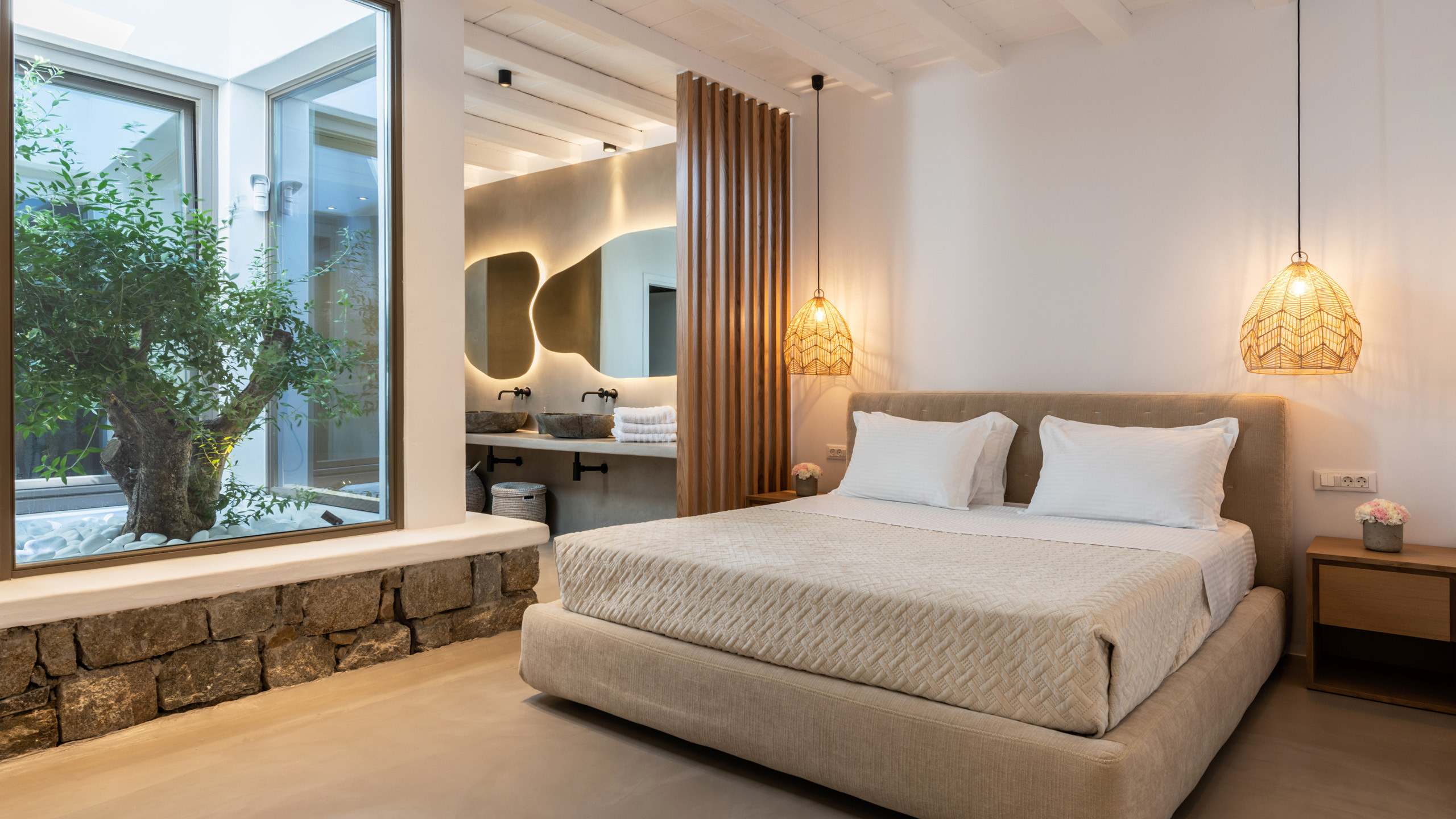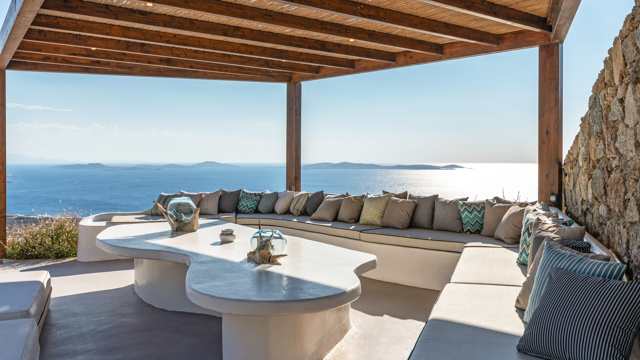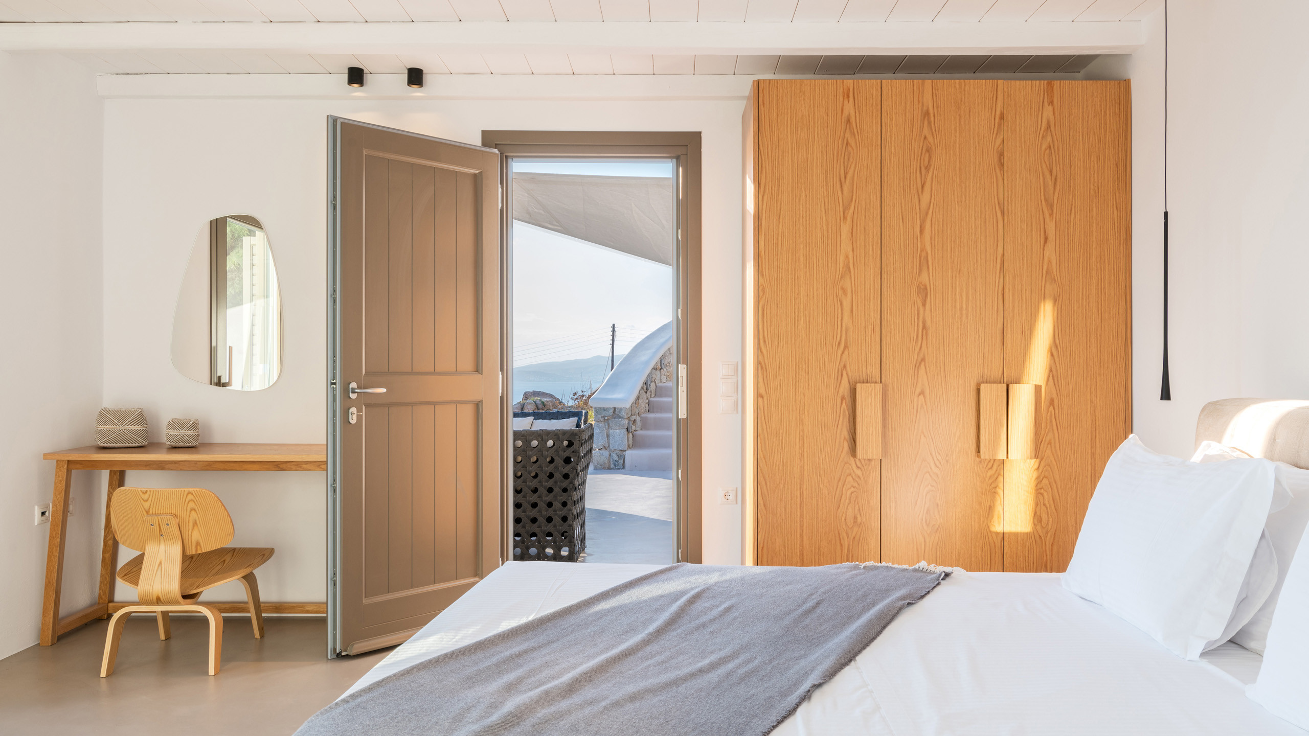 The Tourlos area has seen a significant increase in prominent properties, including undoubtedly Magneto, a private villa with a modern and captivating taste. From its advantageous position, it enjoys a magnificent panoramic view of the sea and sunset, maintaining a certain privacy as the area is not too frequented by large tourist flows.