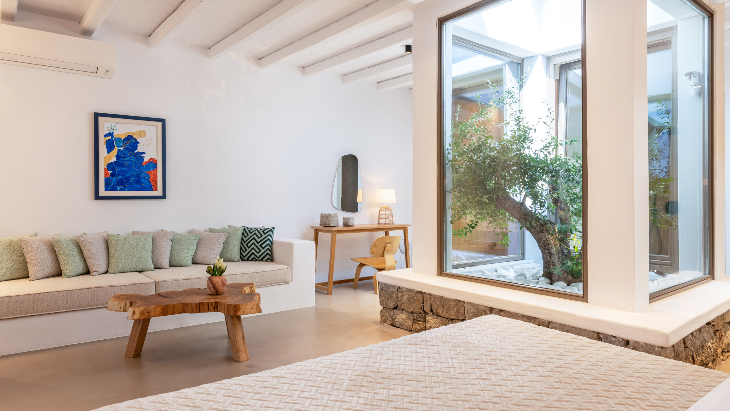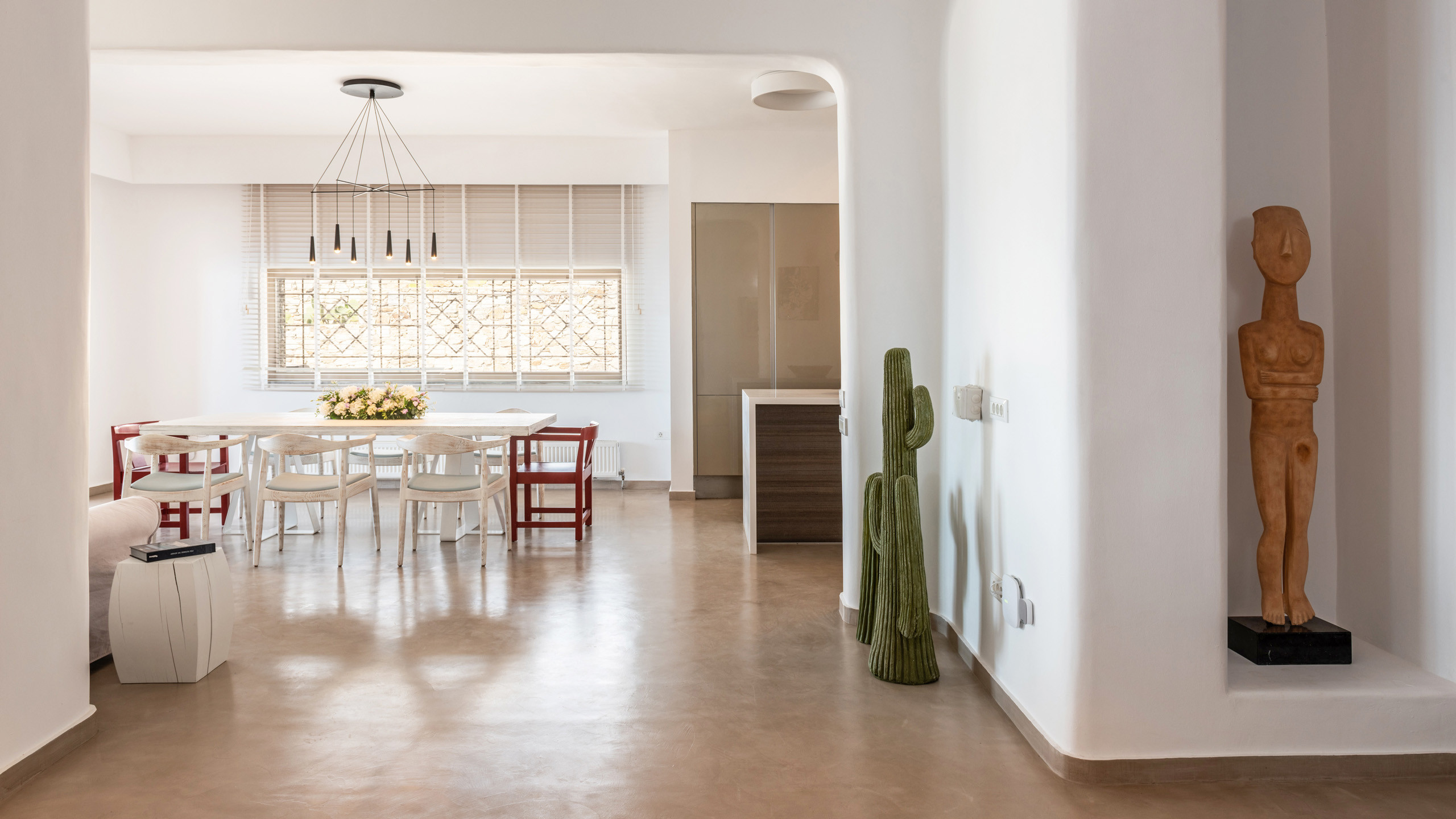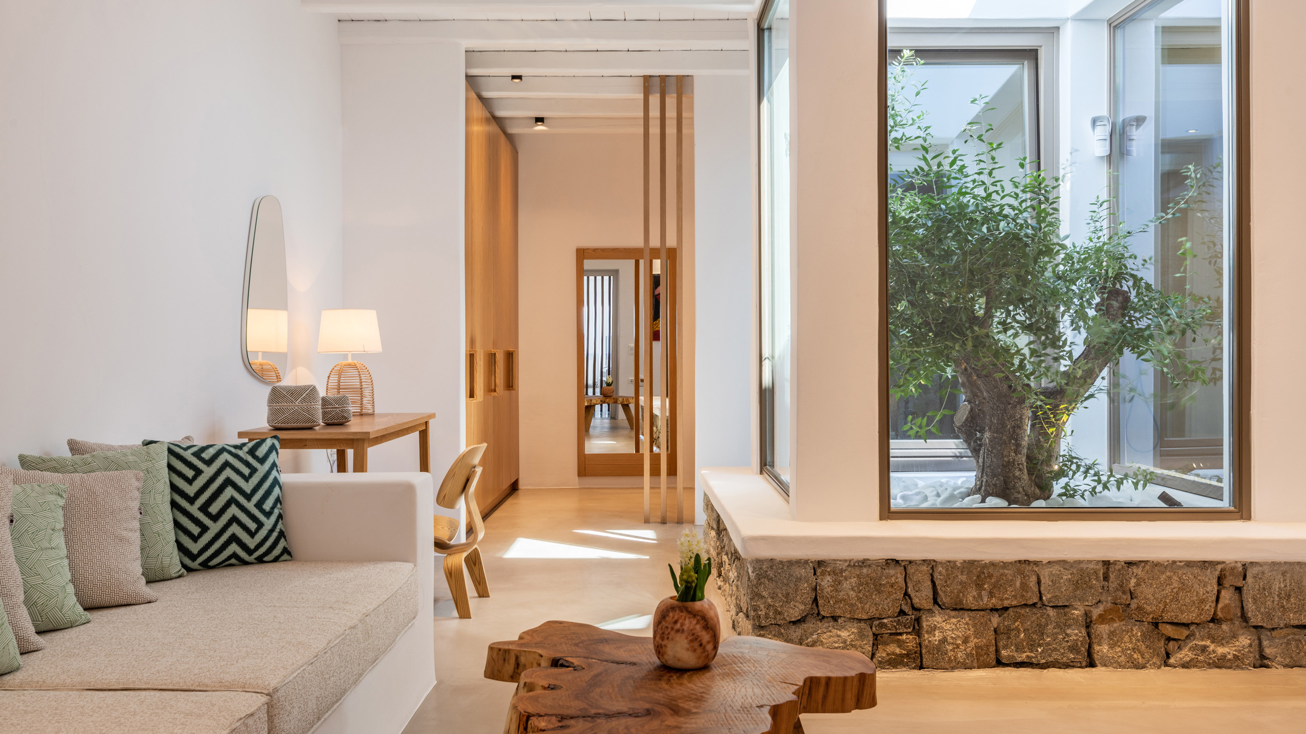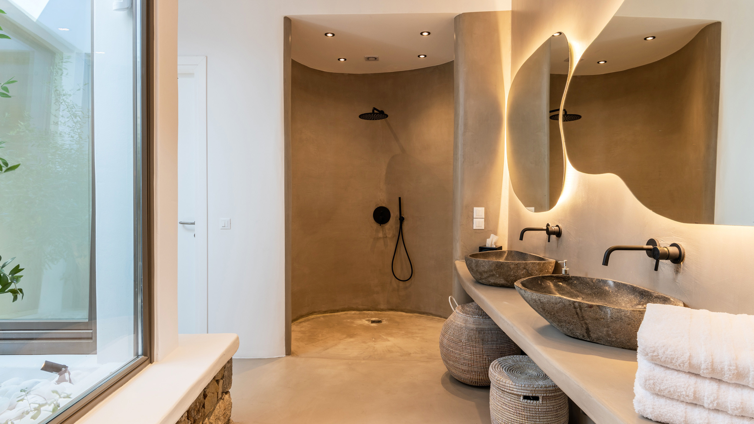 The Tourlos area has seen a significant increase in prominent properties, including undoubtedly Magneto, a private villa with a modern and captivating taste. From its advantageous position, it enjoys a magnificent panoramic view of the sea and sunset, maintaining a certain privacy as the area is not too frequented by large tourist flows.