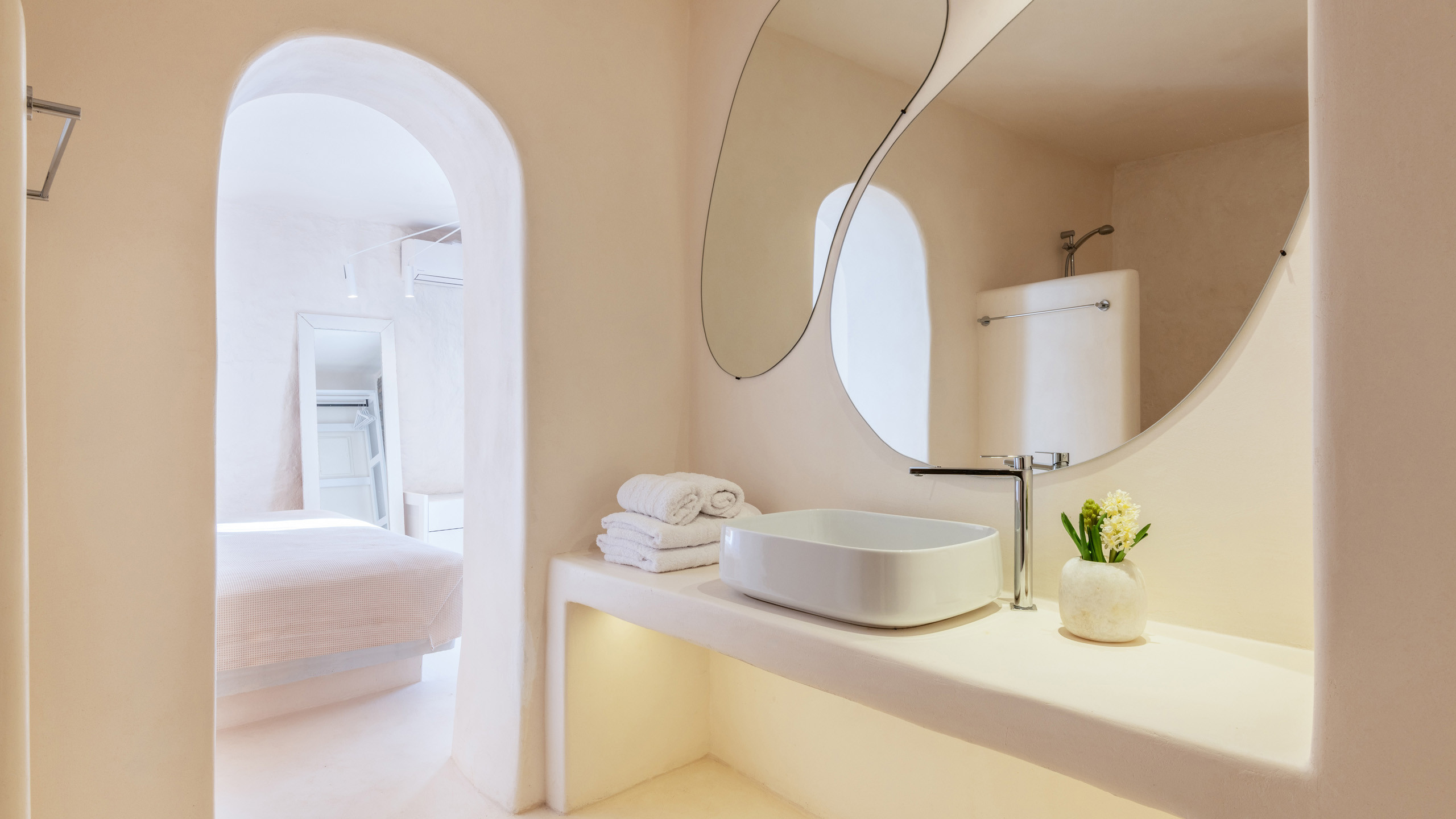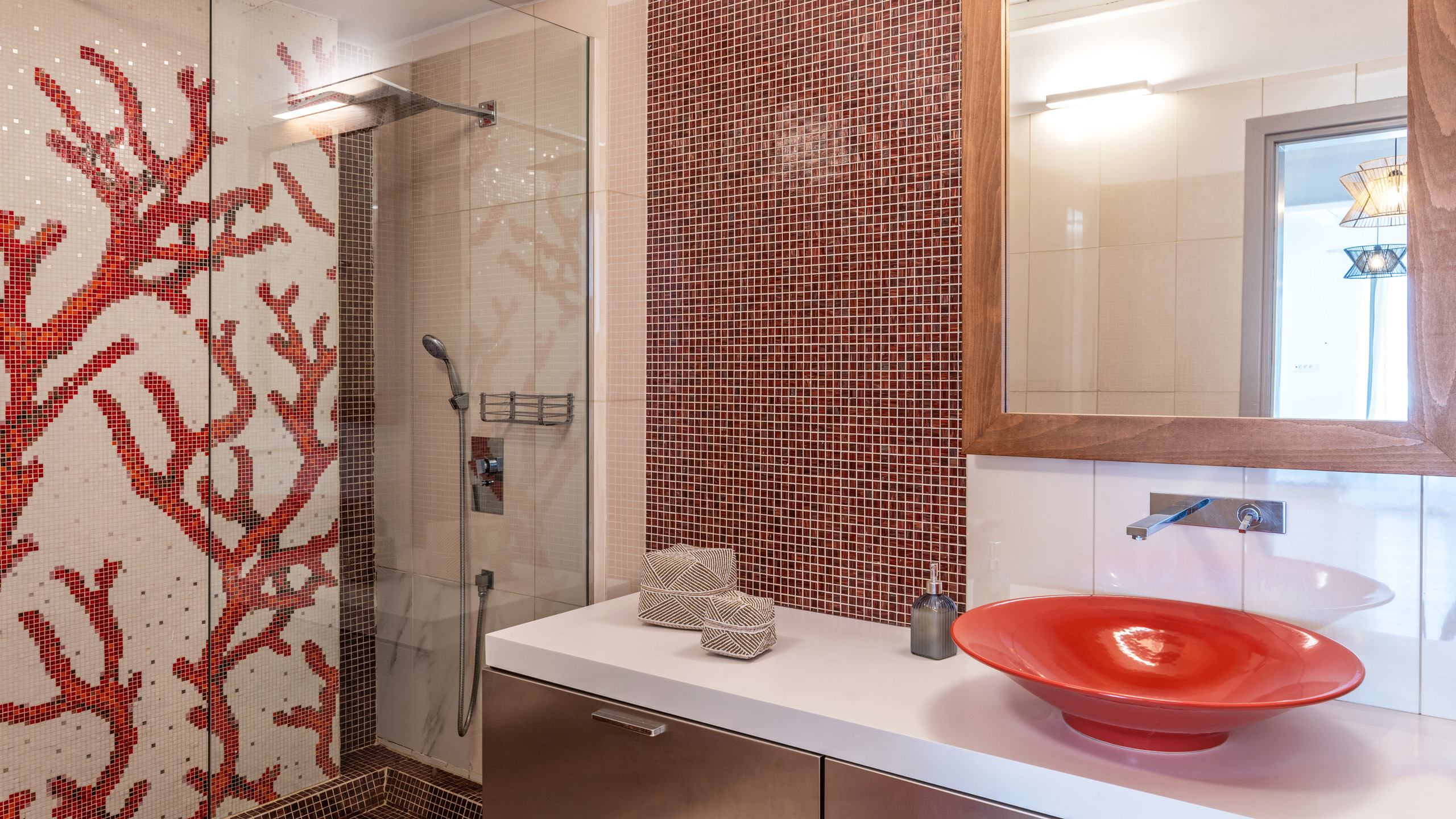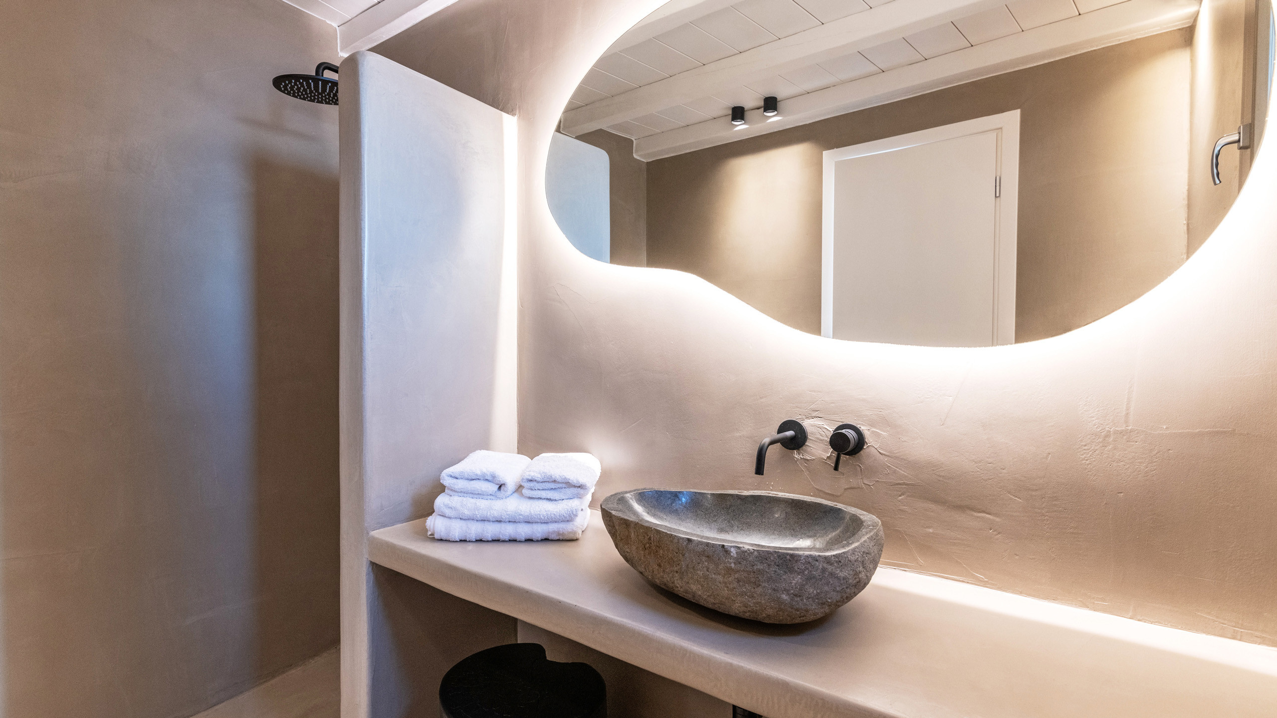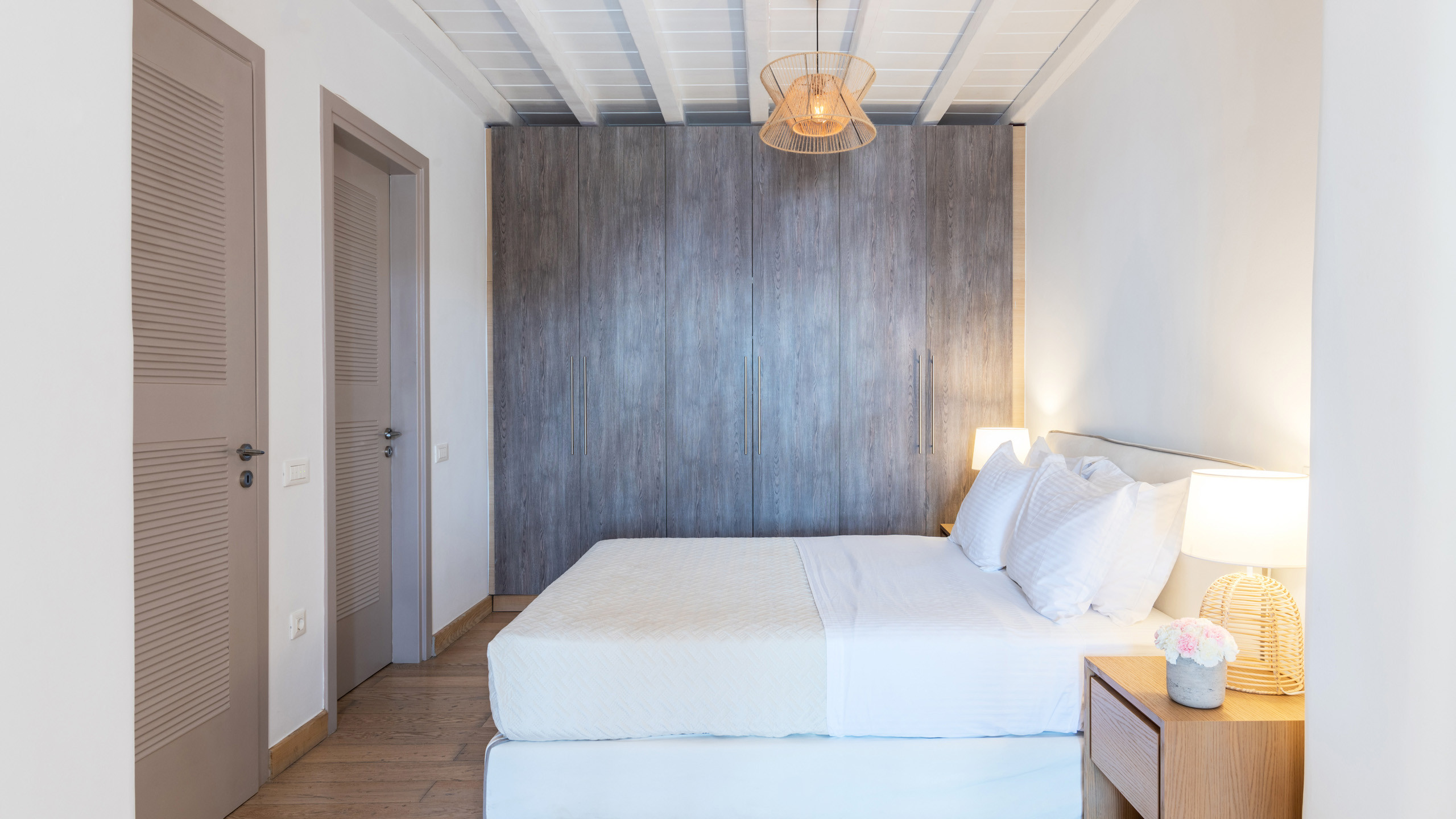 The Tourlos area has seen a significant increase in prominent properties, including undoubtedly Magneto, a private villa with a modern and captivating taste. From its advantageous position, it enjoys a magnificent panoramic view of the sea and sunset, maintaining a certain privacy as the area is not too frequented by large tourist flows.