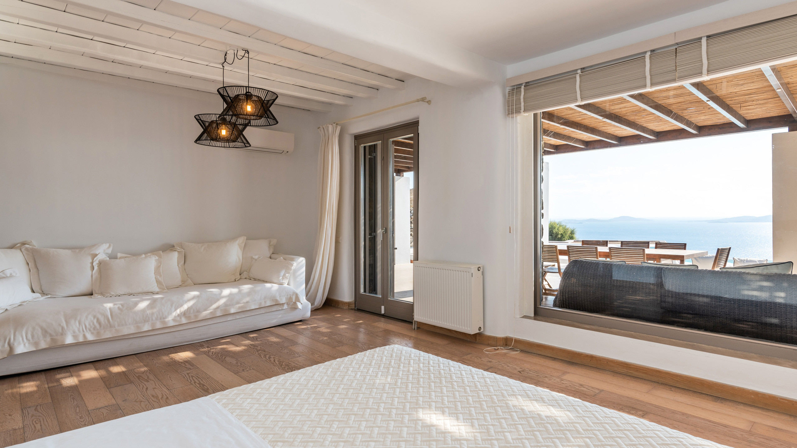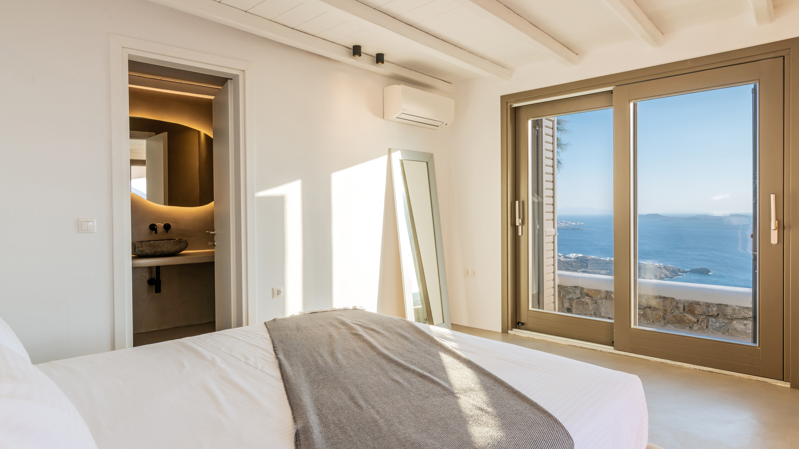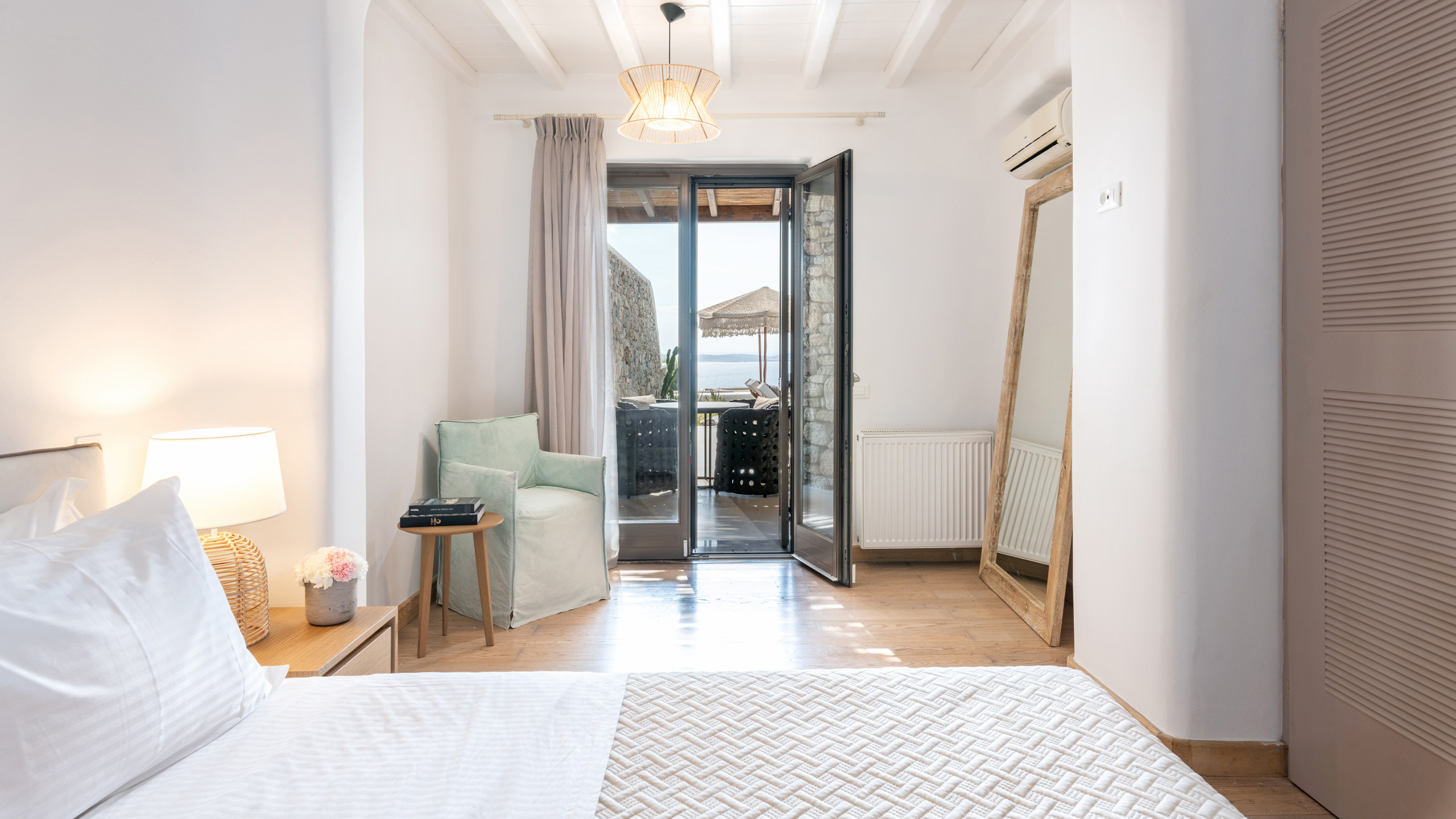 1 Master Bedroom with double bed, A/C, en-suite bathroom with shower, direct access to outside, sea view