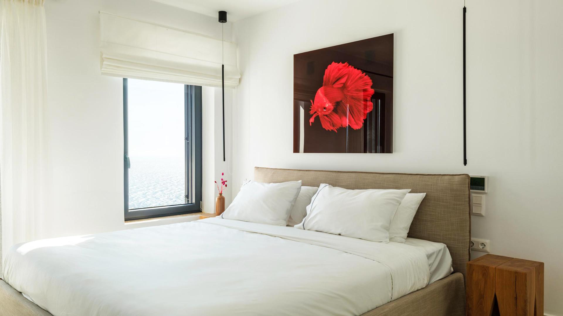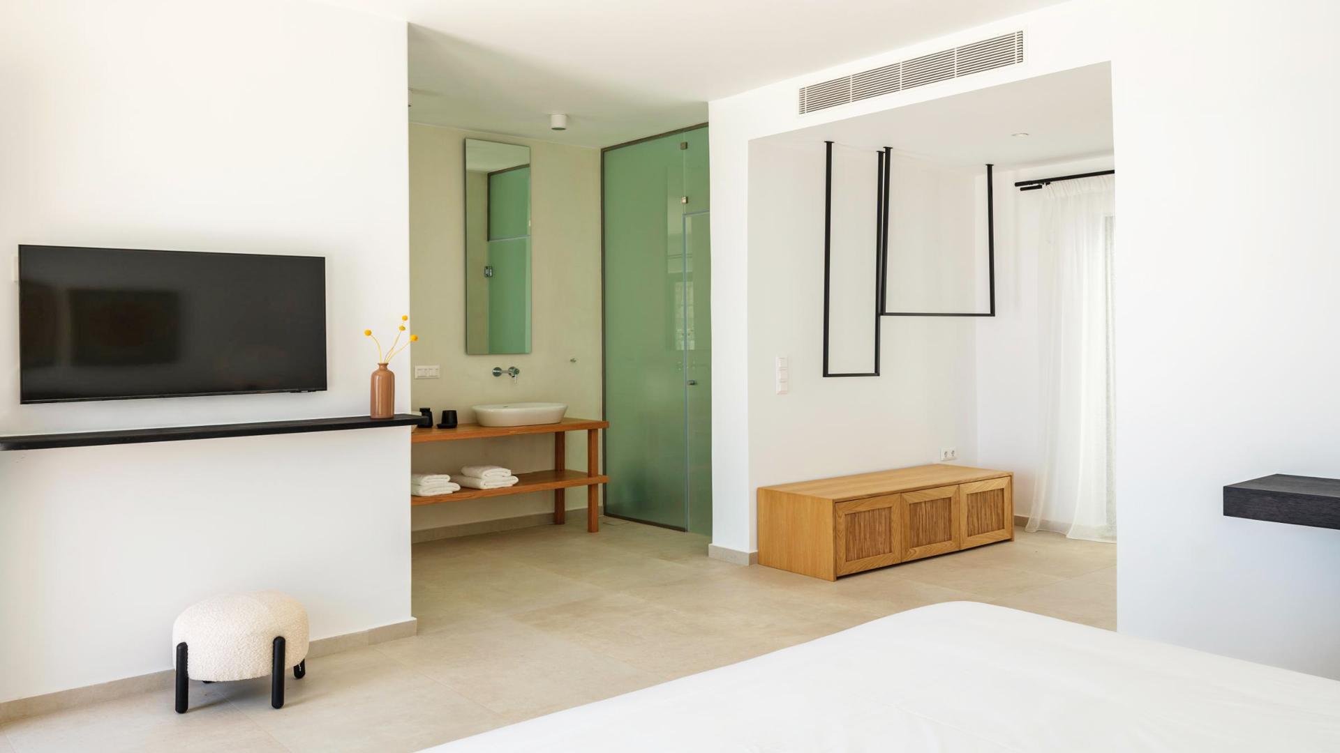 3 Guest Bedrooms with double bed, A/C, en-suite bathrooms with shower, direct access to pool terrace, sea views