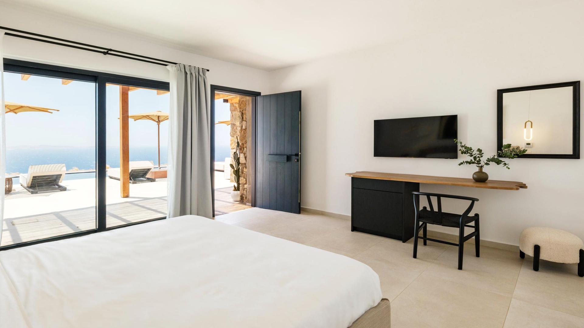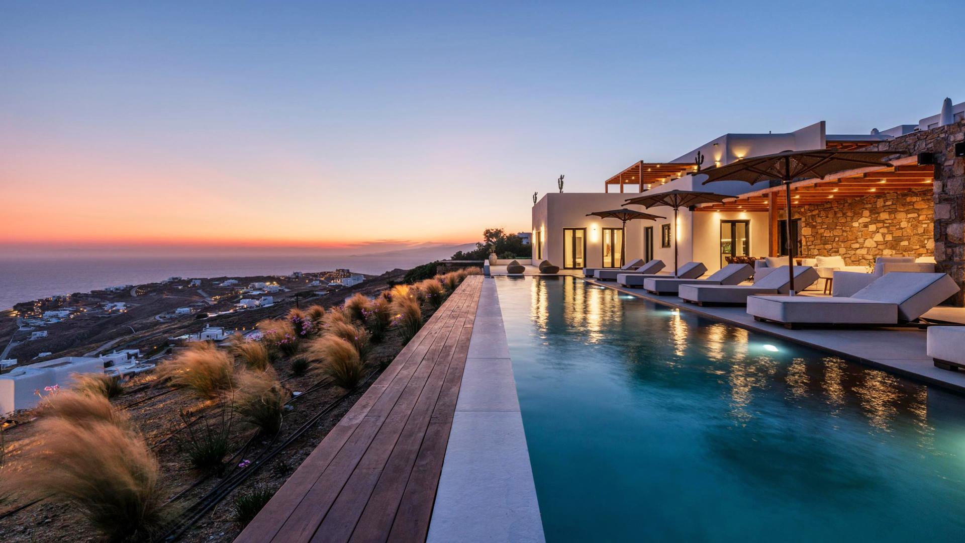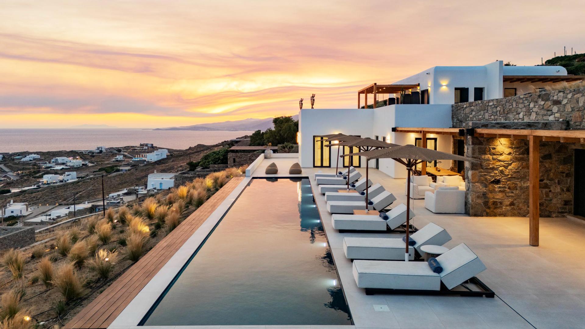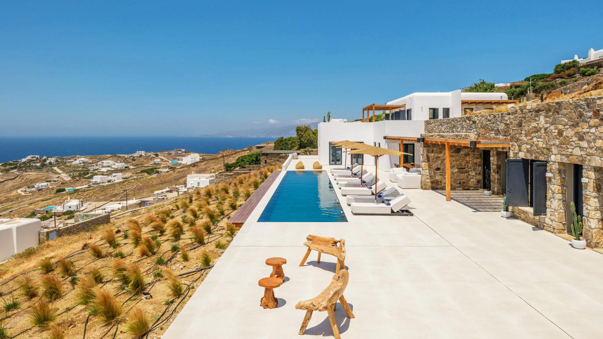 Volante, a private luxury sanctuary perched in the prestigious Fanari area of Mykonos, offering uninterrupted panoramic views of the Aegean Sea and unforgettable sunsets. This 2024-inaugurated , minimalist villa features five elegant double bedrooms with en-suite bathrooms, accommodating up to 10 guests in absolute comfort and privacy. From the heated infinity pool to the fully equipped private gym, every detail is designed to elevate your Mykonos experience.