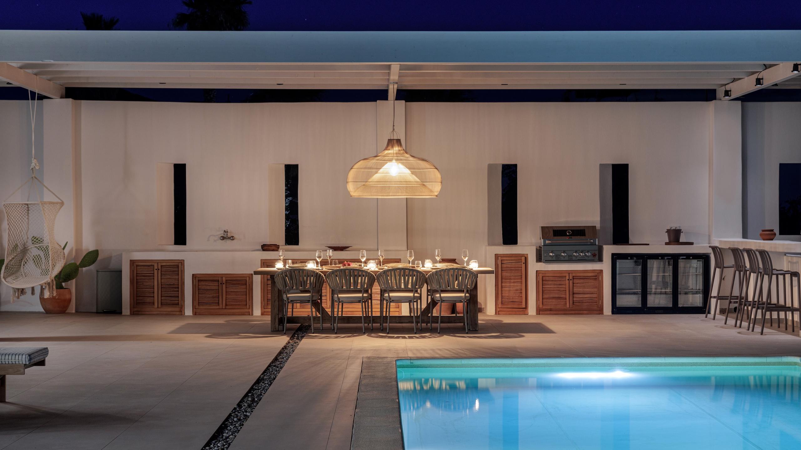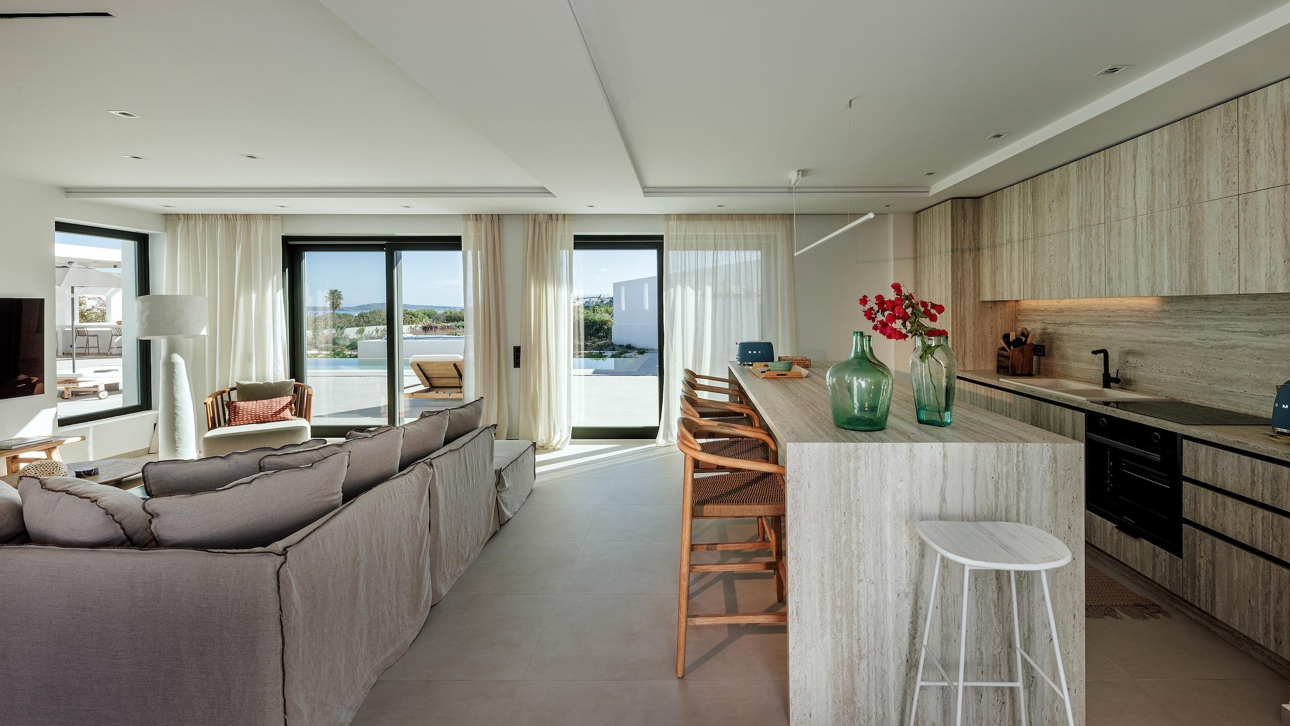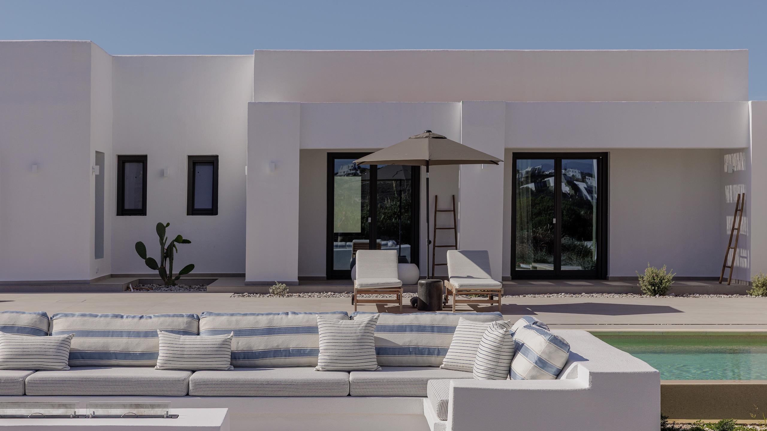 The estate’s prime location allows your itinerary to shift easily from peaceful afternoons lounging poolside to stylish nights out amidst Naoussa’s energetic coastal atmosphere. This refined hideaway serves as an ideal haven for families and guests desiring seclusion, status and the ultimate Greek island lifestyle. Each element has been curated to ensure total serenity and ease.