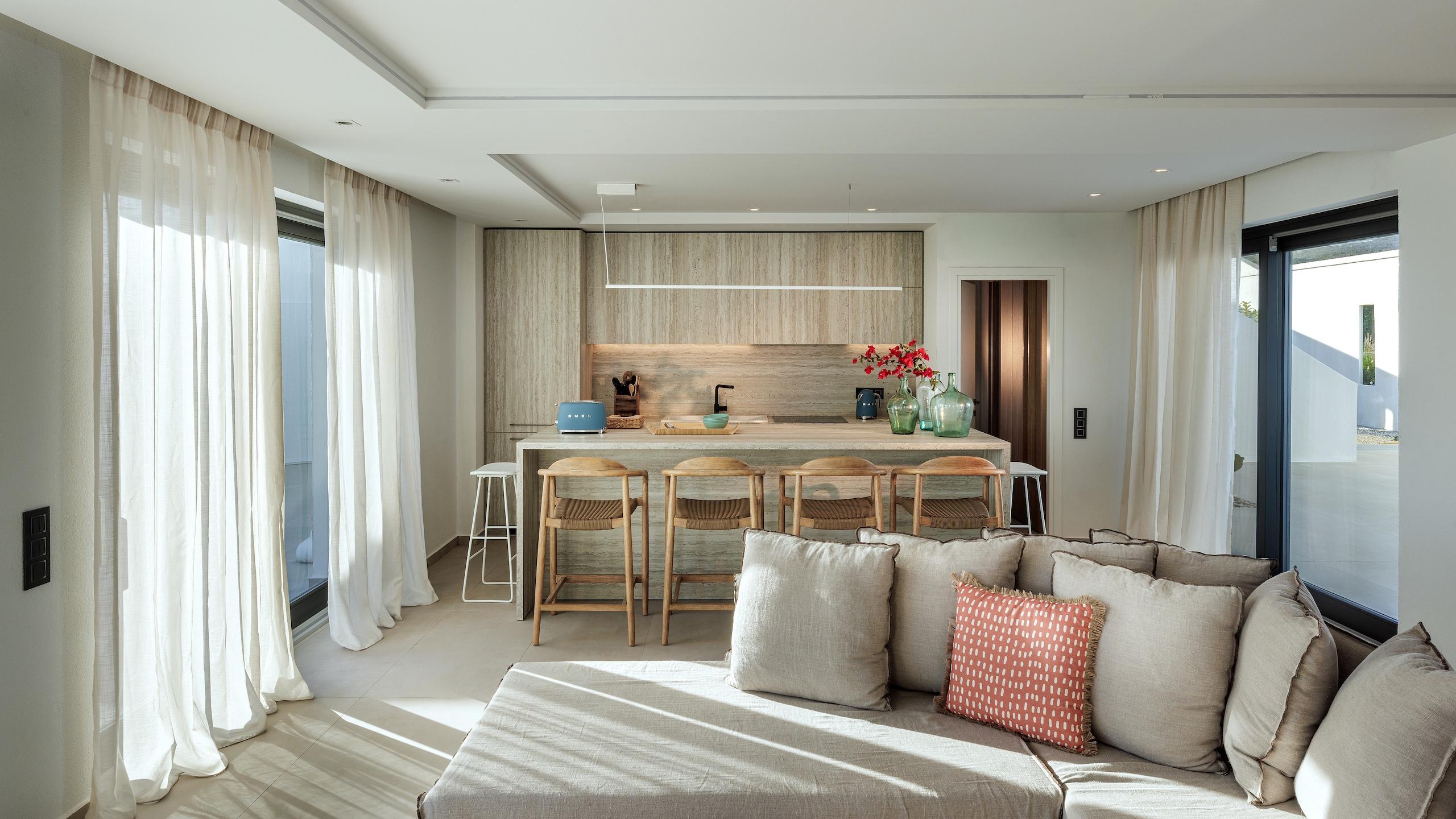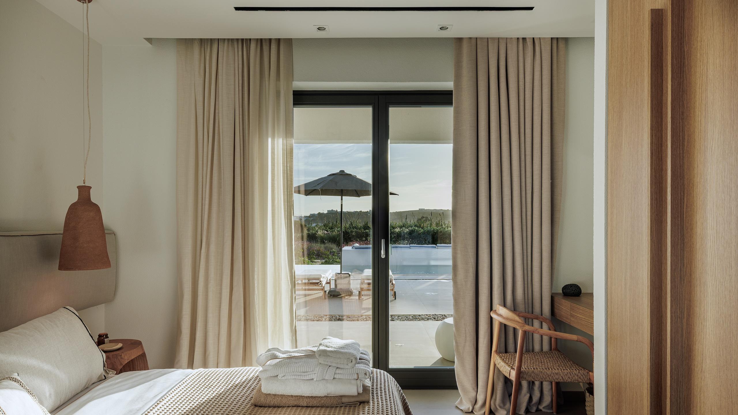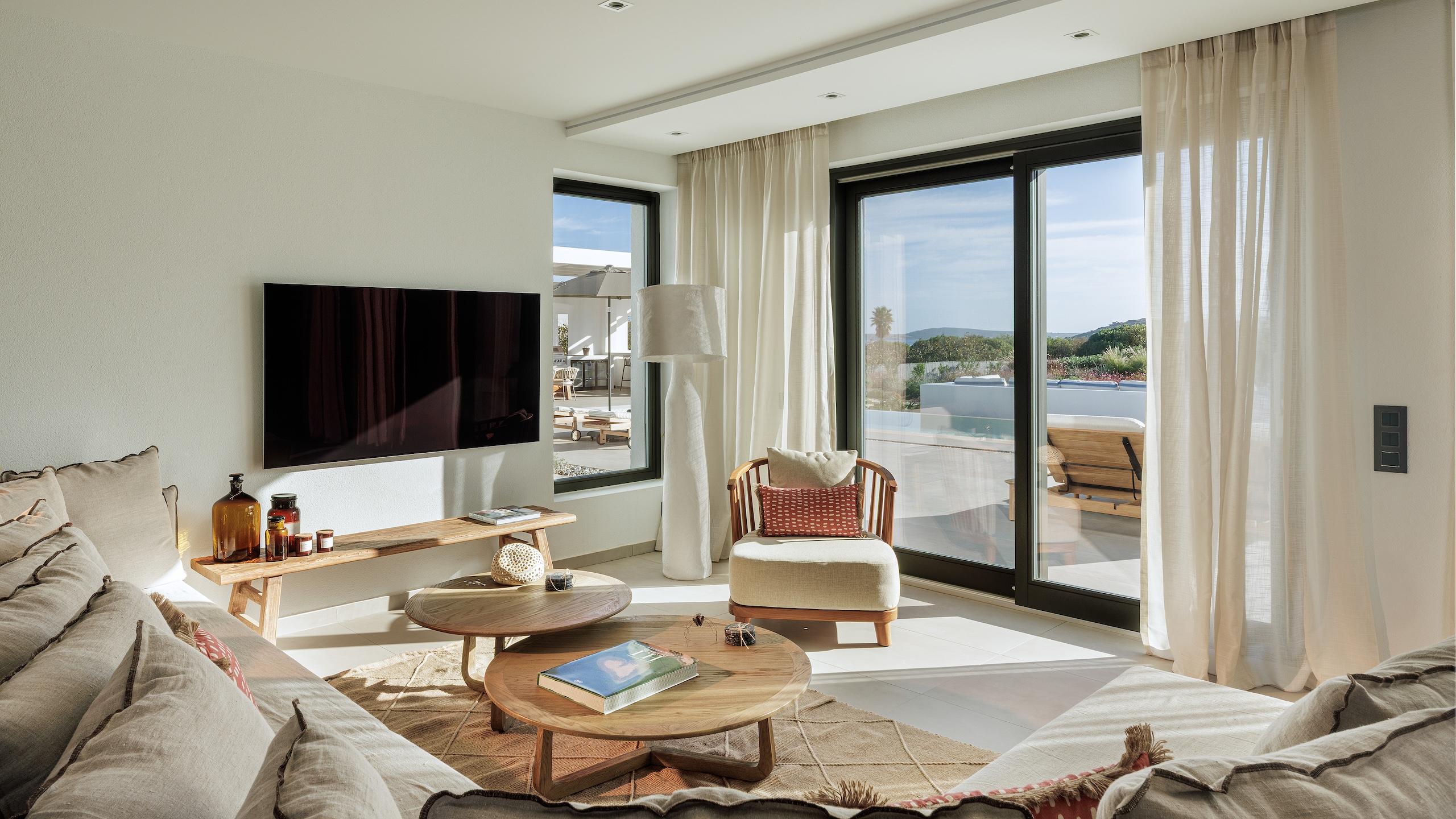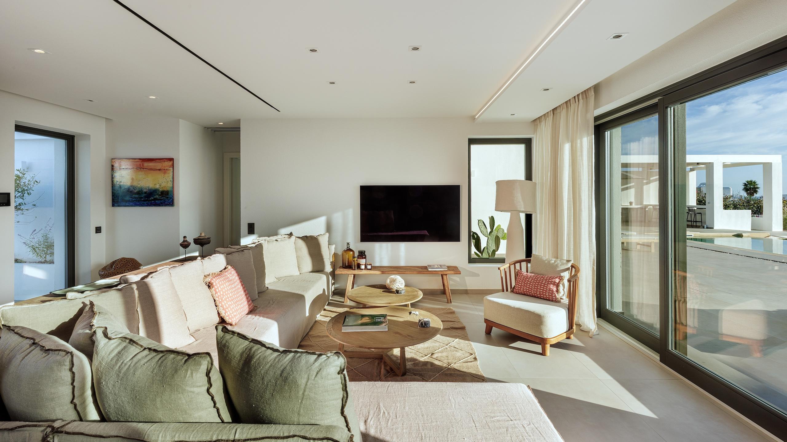 The estate’s prime location allows your itinerary to shift easily from peaceful afternoons lounging poolside to stylish nights out amidst Naoussa’s energetic coastal atmosphere. This refined hideaway serves as an ideal haven for families and guests desiring seclusion, status and the ultimate Greek island lifestyle. Each element has been curated to ensure total serenity and ease.