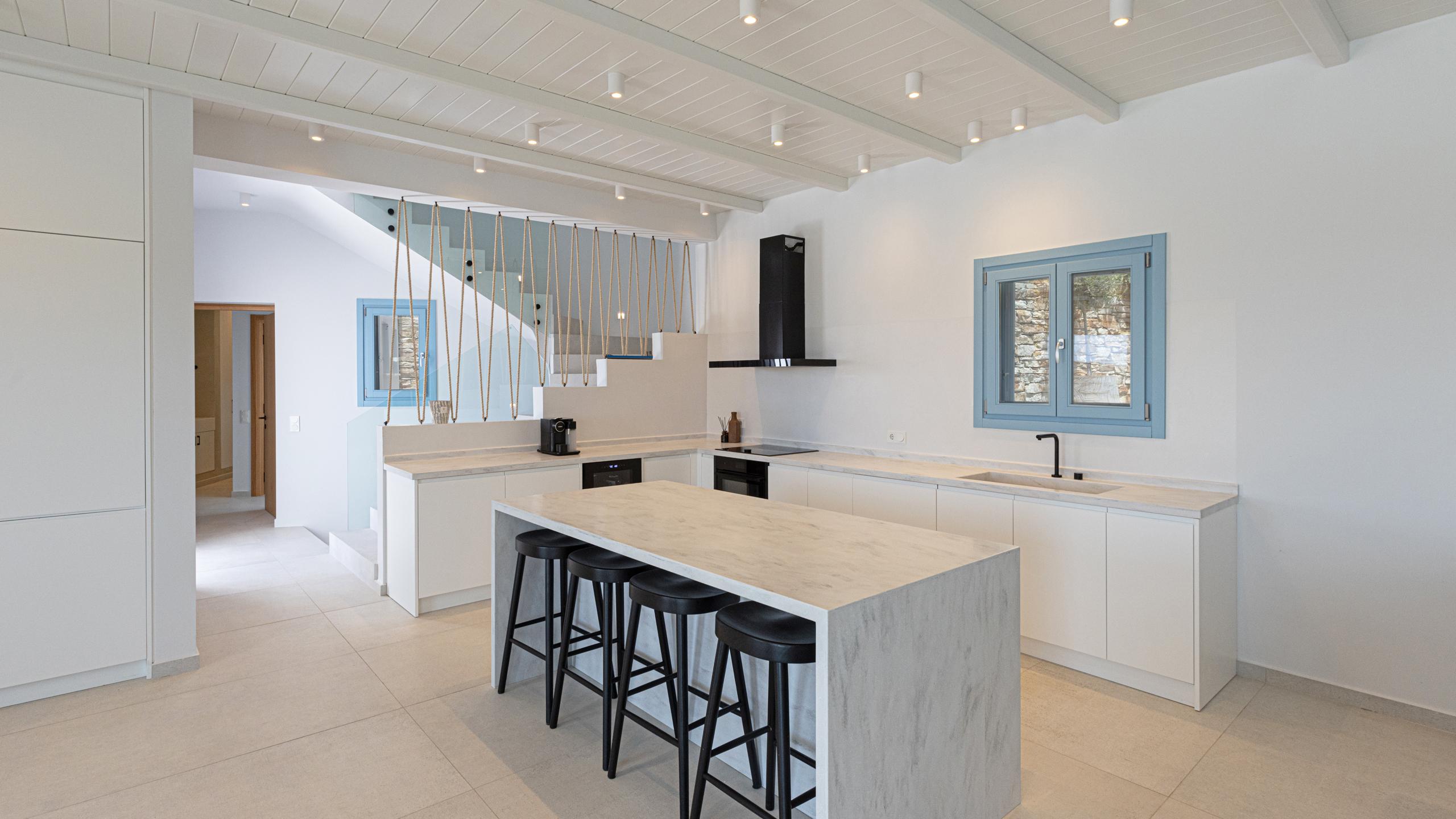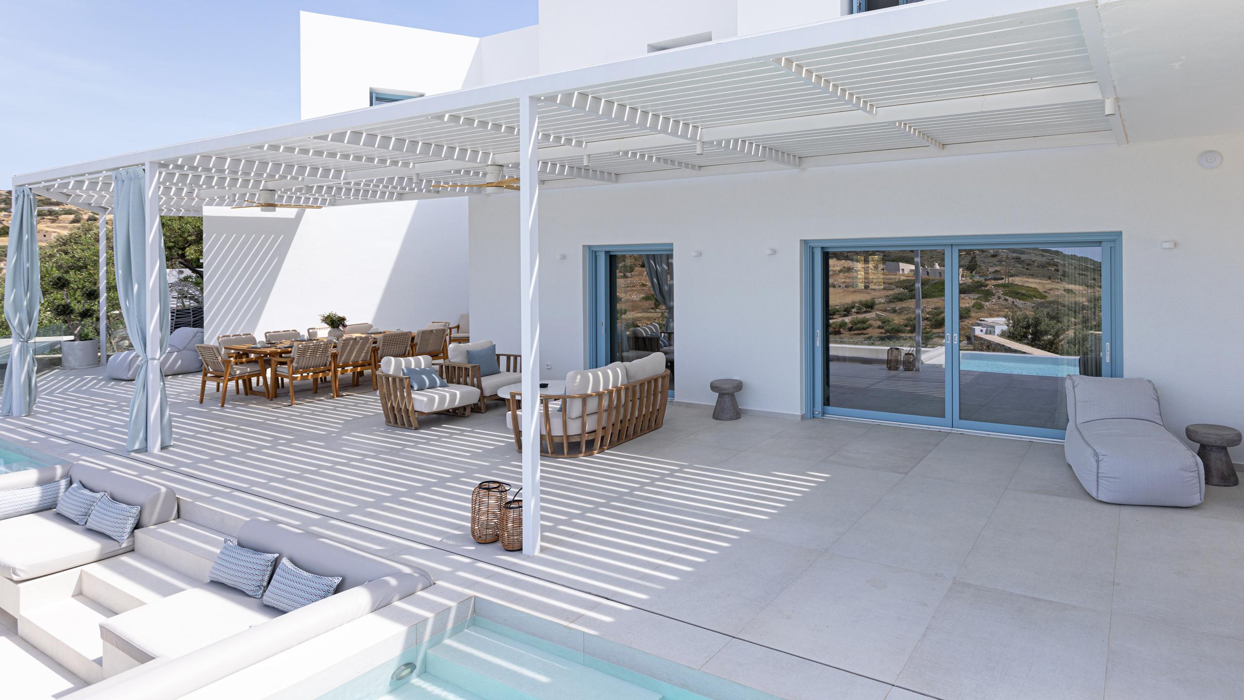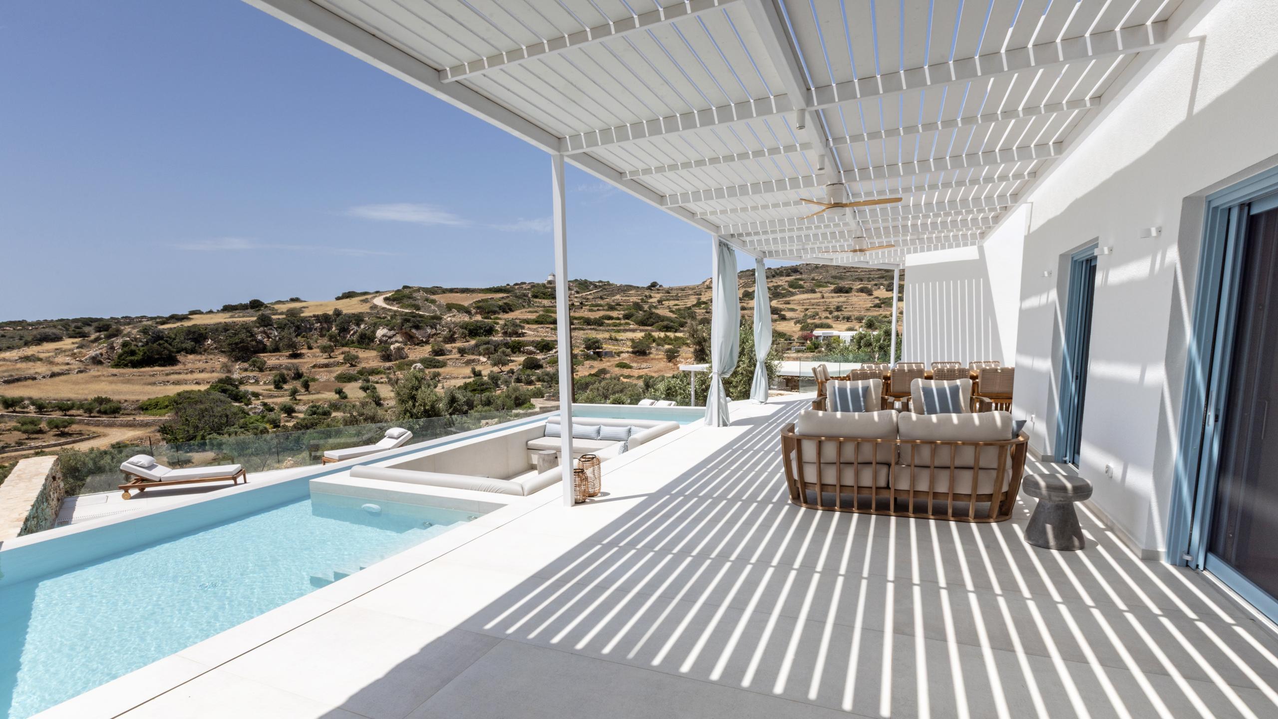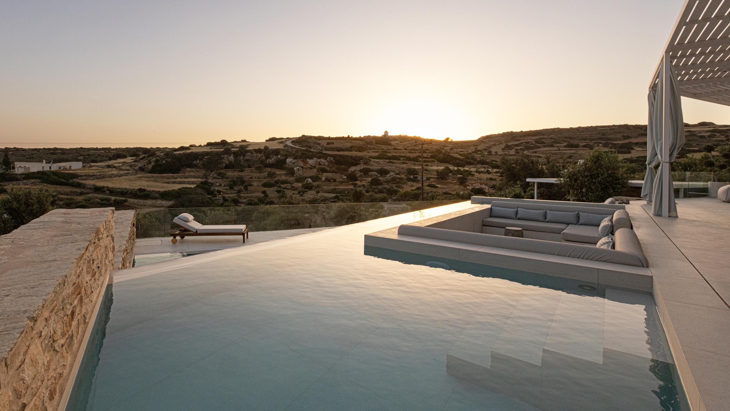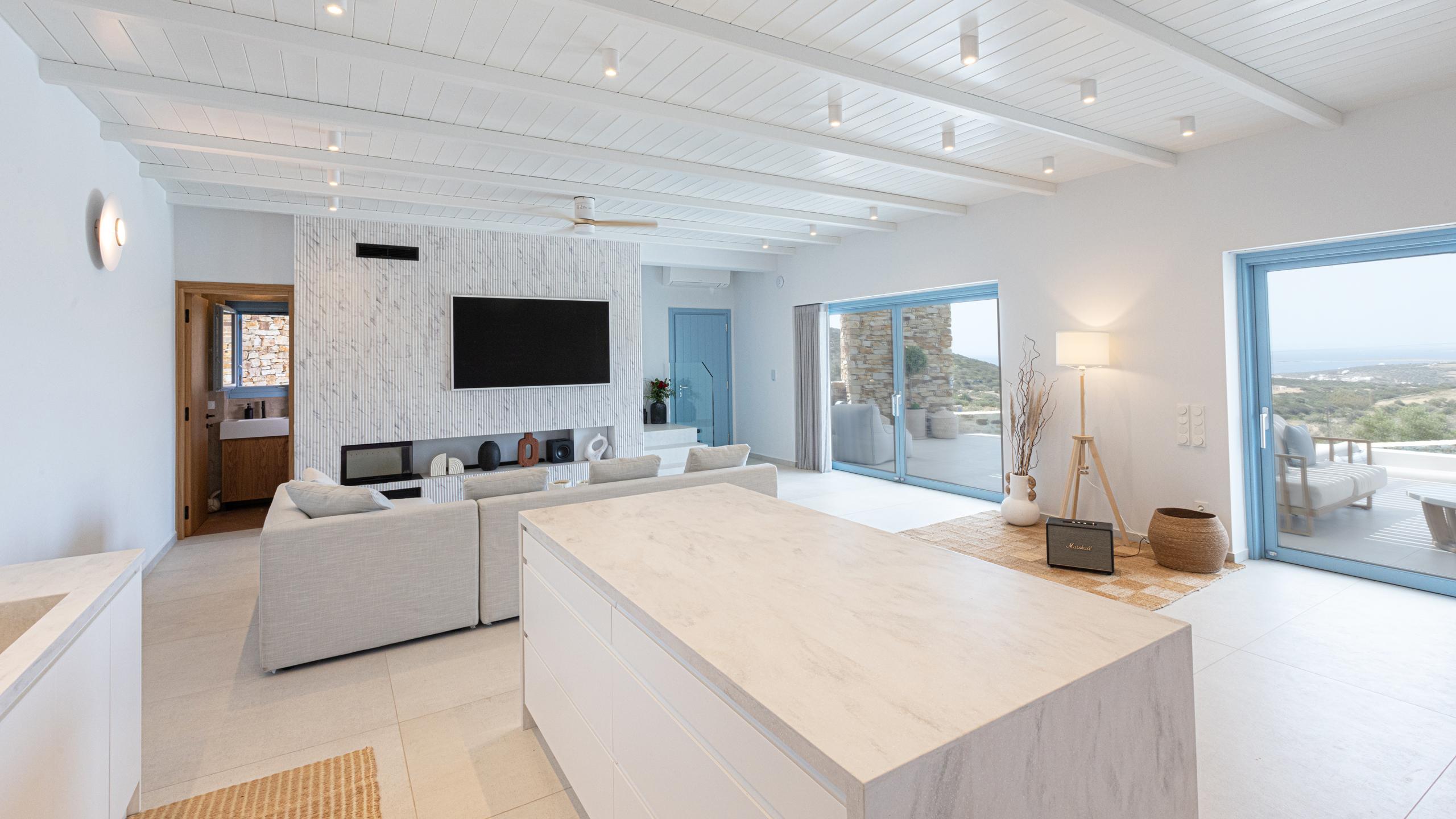 Set in a charming rural landscape near the traditional village of Kamari lies Leura, a modern property that blends seamlessly into its surroundings. From this location, guests can enjoy a pleasant and relaxing view over the countryside, with the sea visible in the distance. Within just a few minutes' drive, you can easily reach the main beaches along Paros’ southern coast—most notably Farangas, known for its fine sand and crystal-clear waters. For a typical seafood taverna experience, Aliki is the perfect choice, just 2 km away.