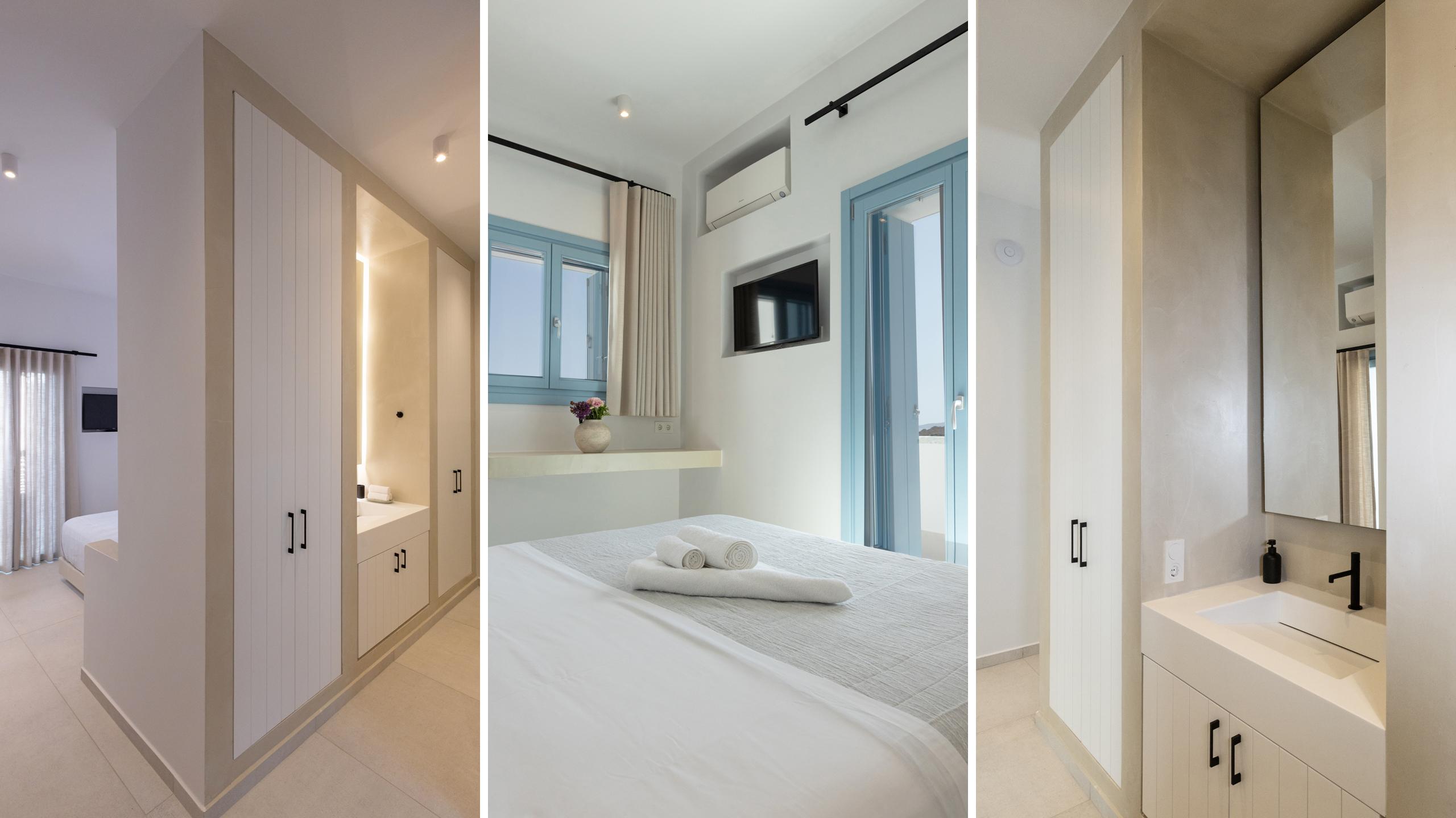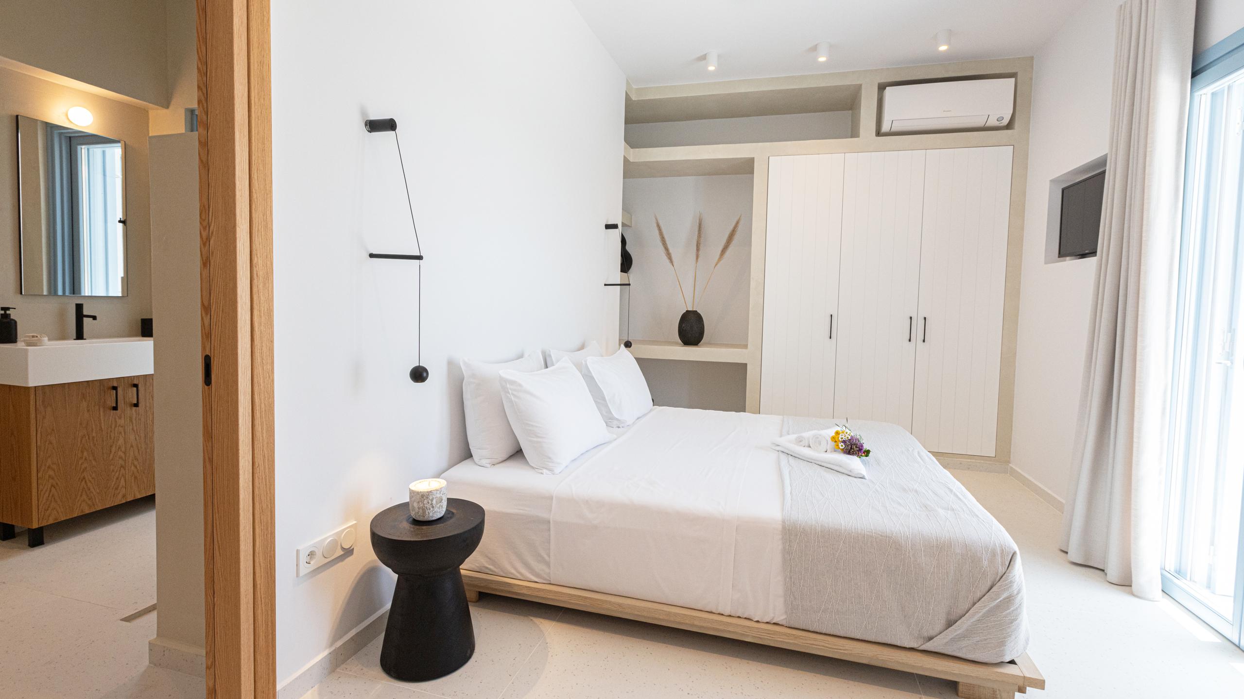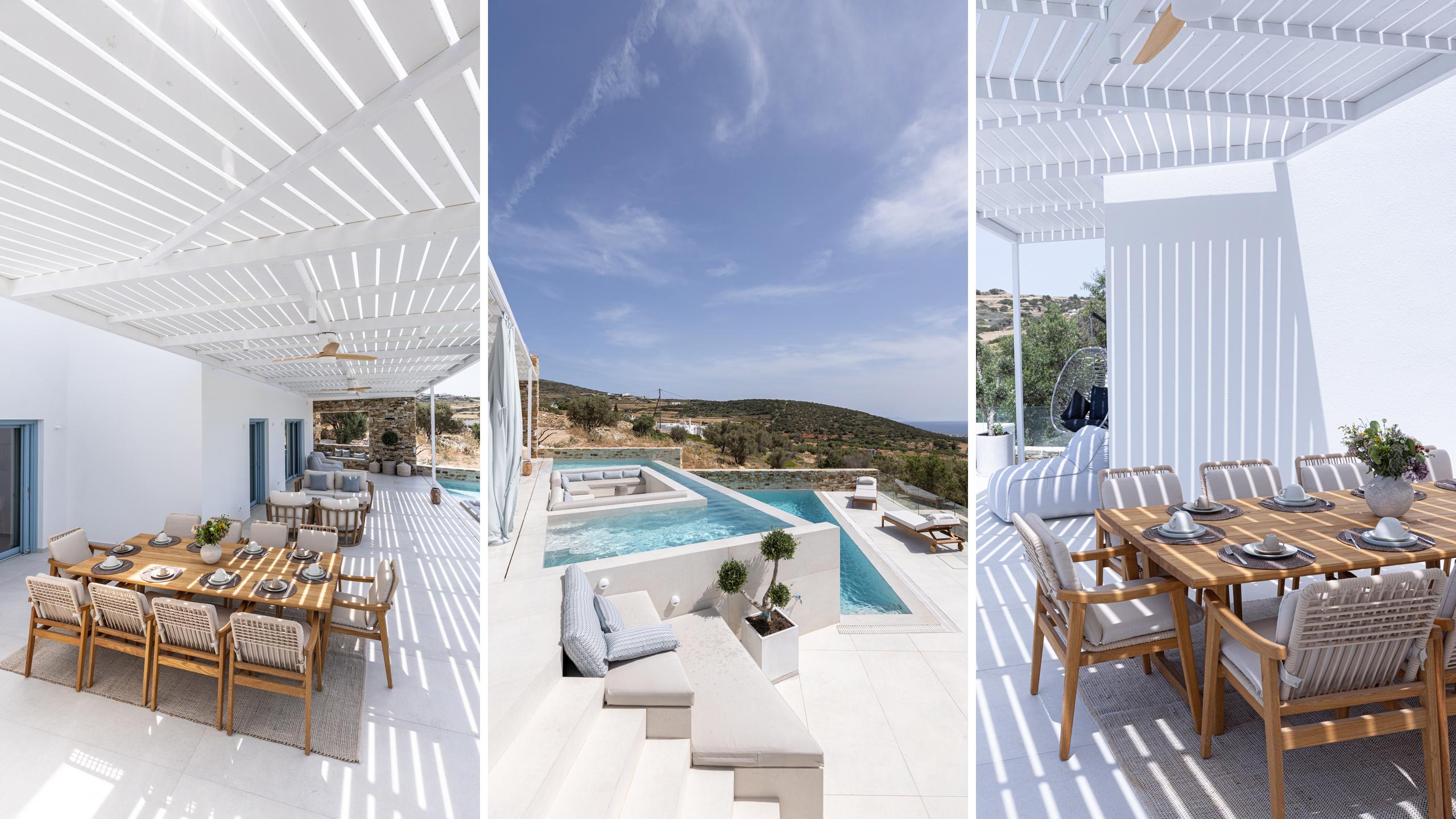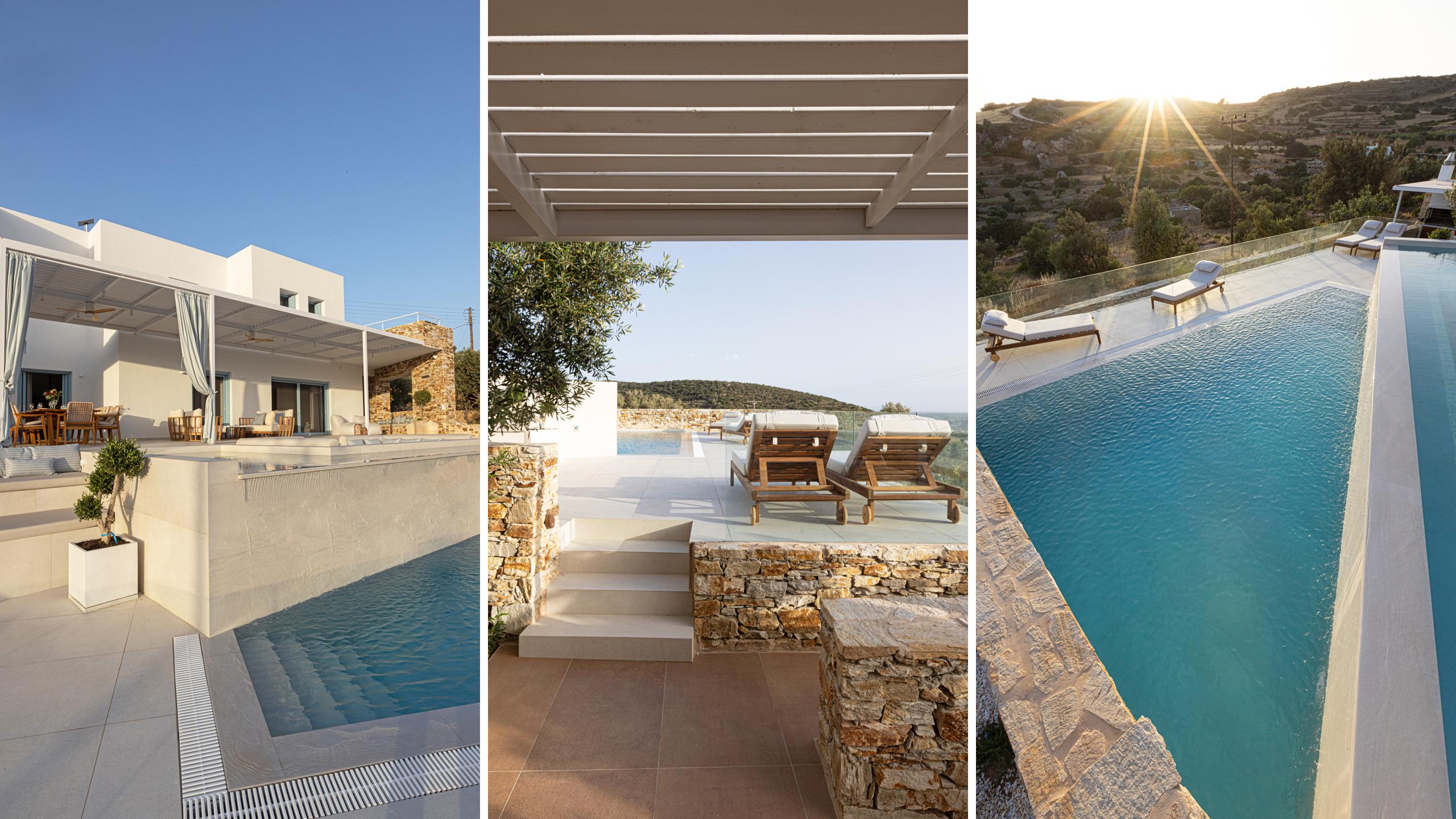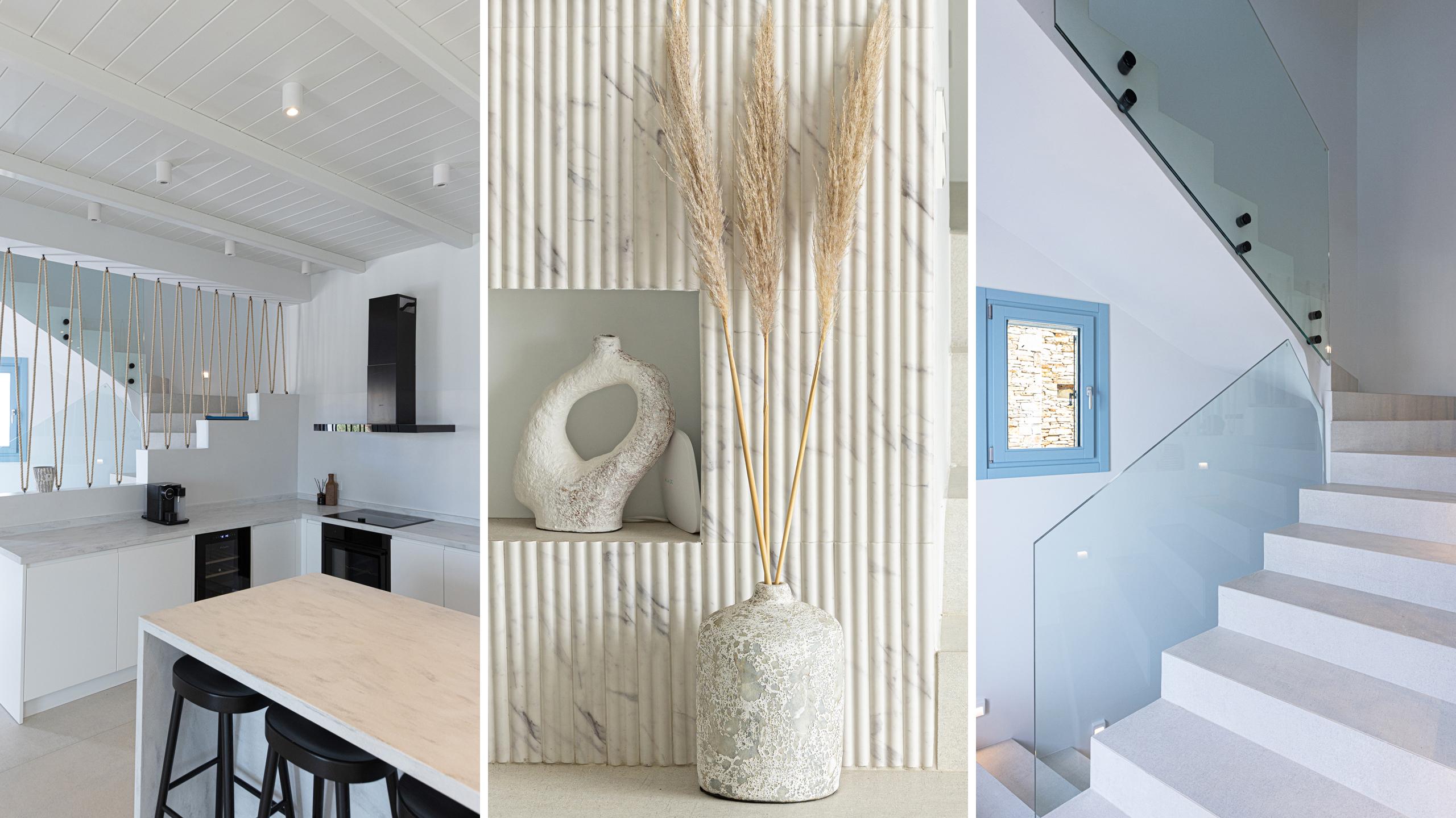Set in a charming rural landscape near the traditional village of Kamari lies Leura, a modern property that blends seamlessly into its surroundings. From this location, guests can enjoy a pleasant and relaxing view over the countryside, with the sea visible in the distance. Within just a few minutes' drive, you can easily reach the main beaches along Paros’ southern coast—most notably Farangas, known for its fine sand and crystal-clear waters. For a typical seafood taverna experience, Aliki is the perfect choice, just 2 km away.