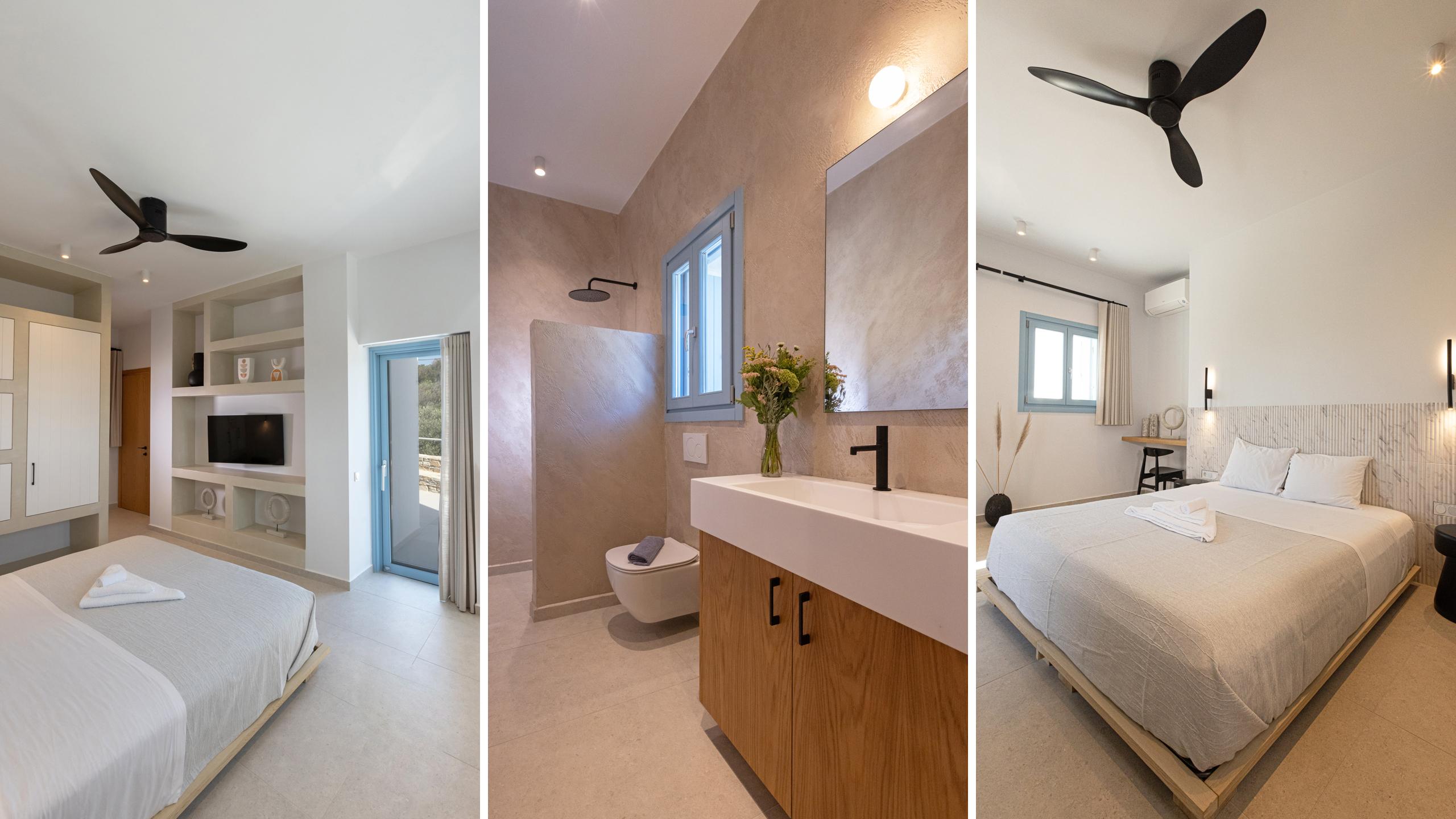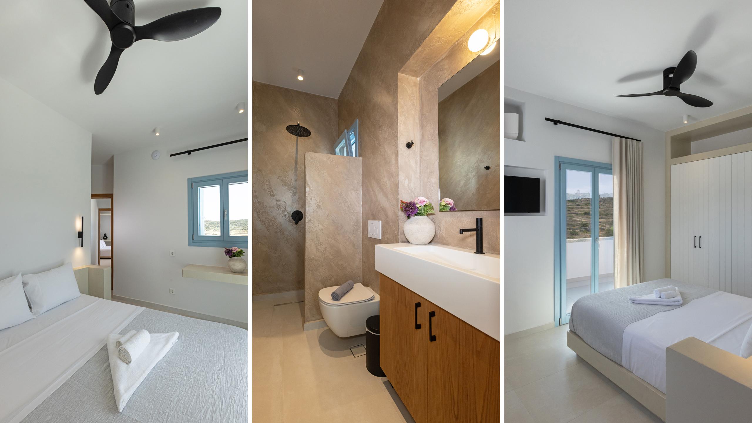 8 Guests3 Guest Bedrooms with double bed, A/C, en-suite bathrooms with shower, each with sea view in the distance