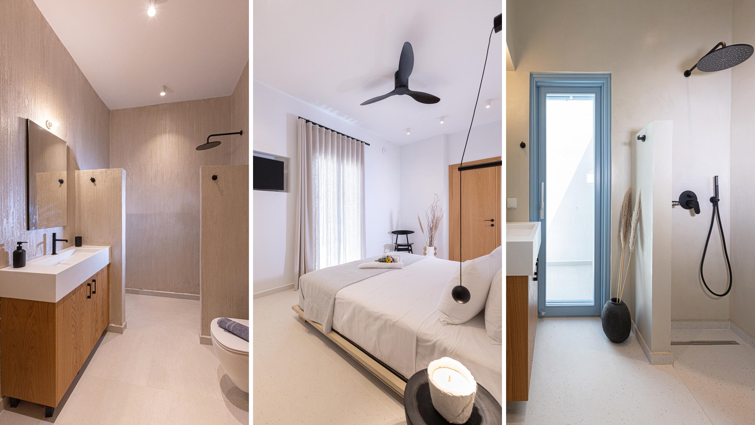 Inside, the atmosphere is fresh and bright, with a contemporary style characterized by unexpected design touches that still fit harmoniously within the overall concept. The shared spaces are comfortable, as are the four bedrooms—three on the upper floor and one on the entrance level—reflecting the villa's multi-level layout. Naturally, all the latest amenities are available to ensure maximum guest comfort.