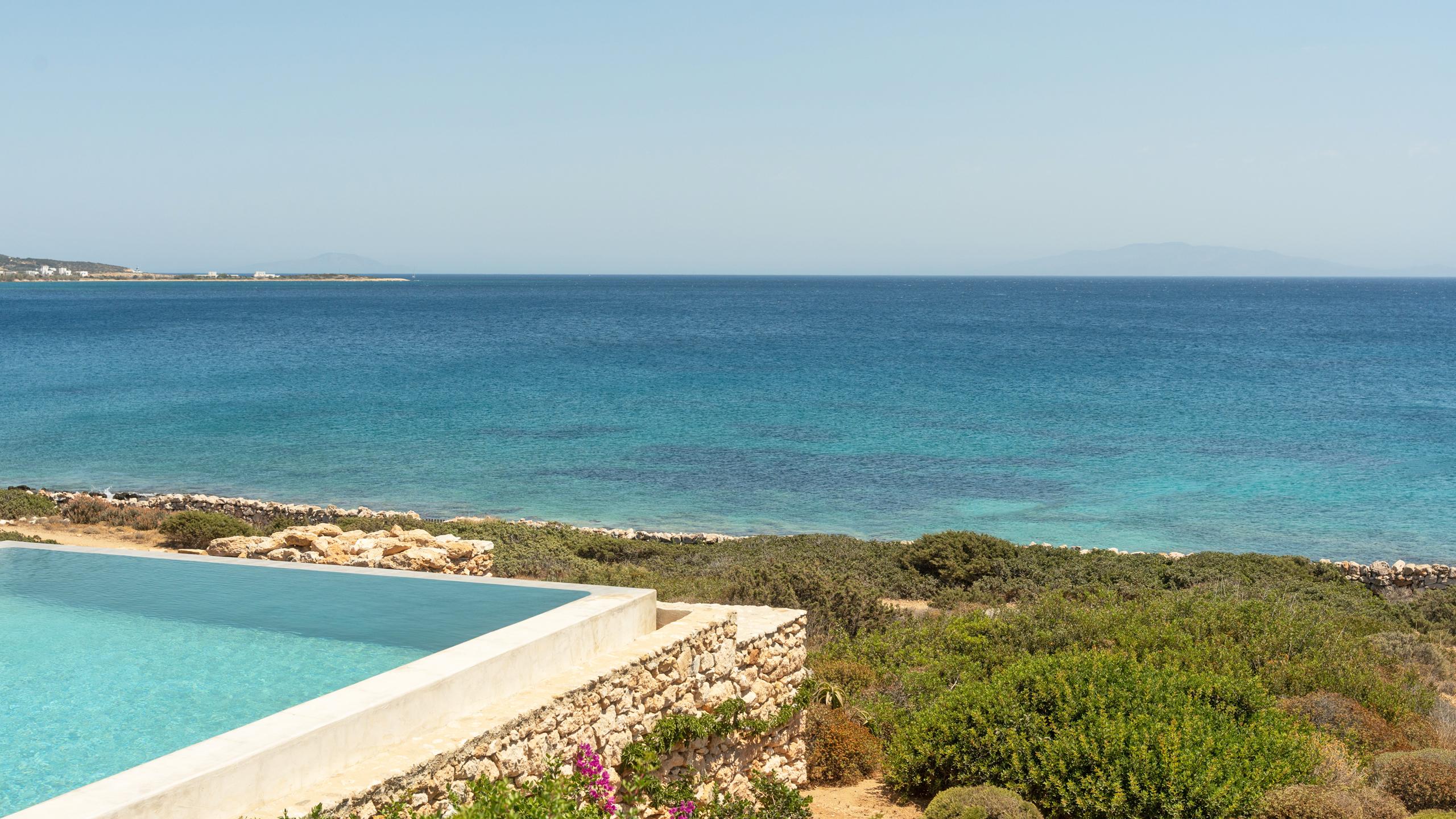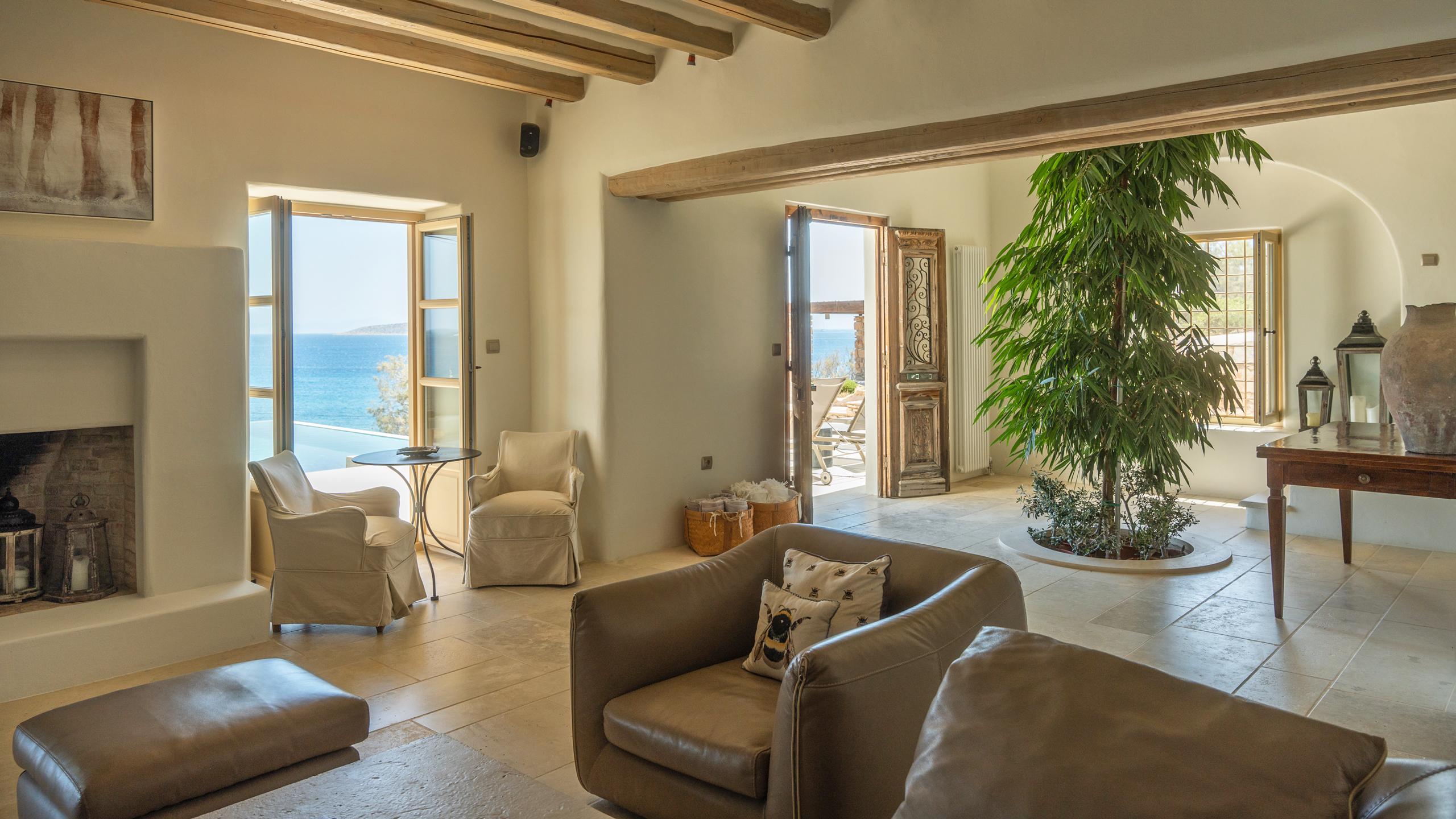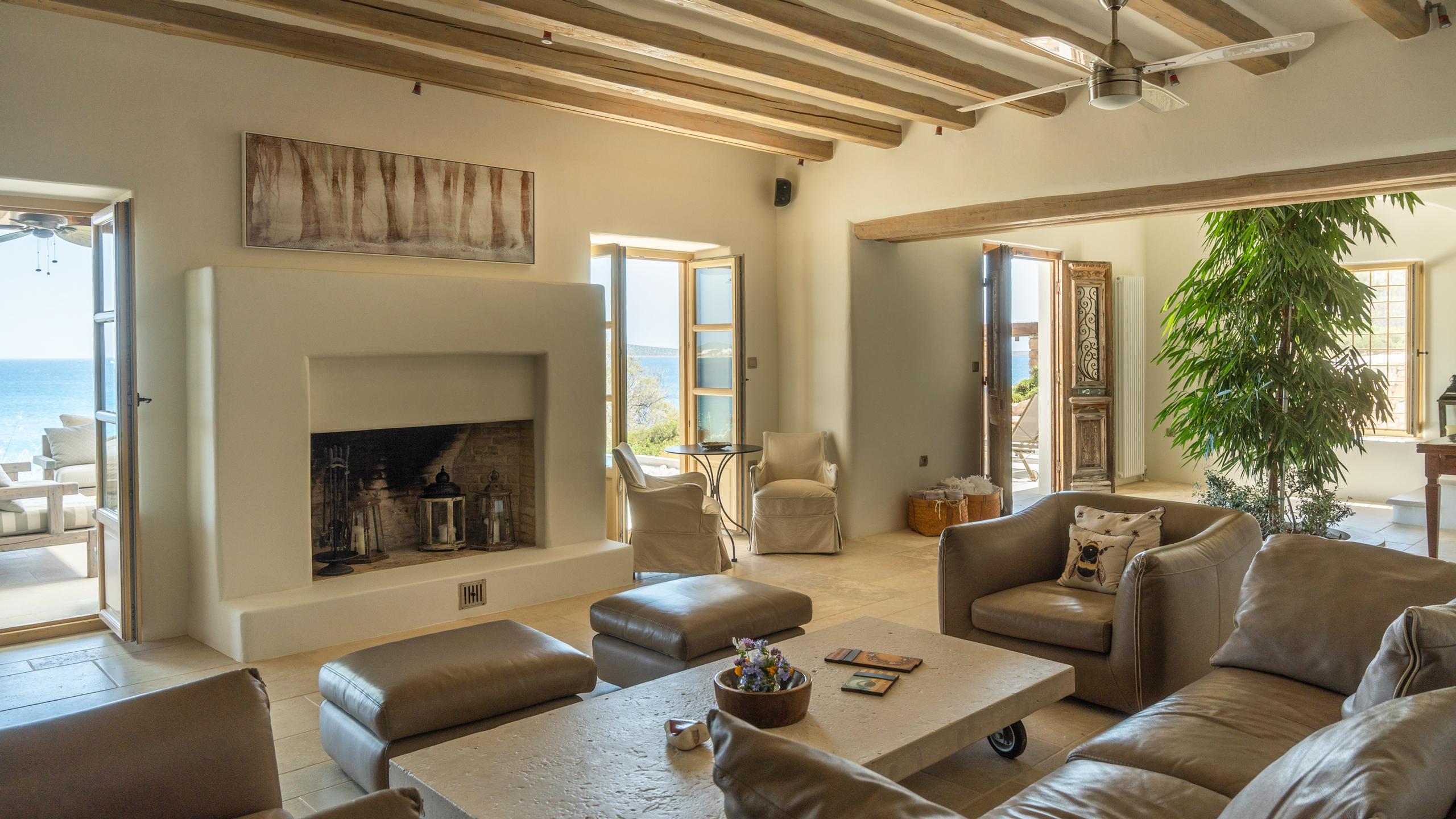 Waterfront West is a stunning 280 m² seafront villa that masterfully integrates traditional stone architecture with avant-garde design elements like an indoor tree and an indoor-outdoor shower. Located just 50 meters from the water on a sprawling 6,600 m² plot, the villa creates a seamless connection between its private swimming pool and the sparkling Aegean Sea. The interior features a spacious open-plan kitchen and sun-drenched living areas, all styled with warm, earthy tones to mirror the serene natural surroundings.