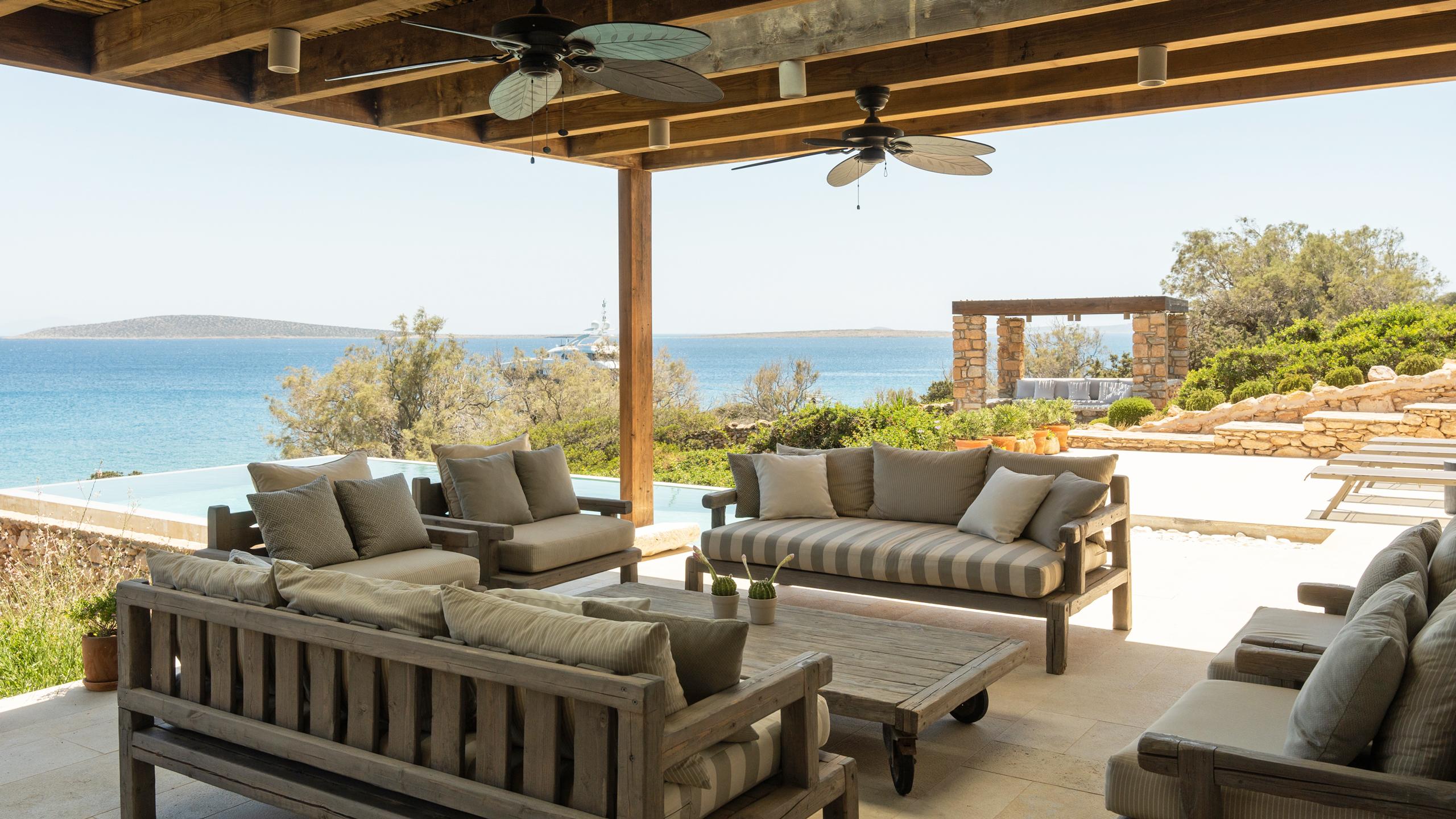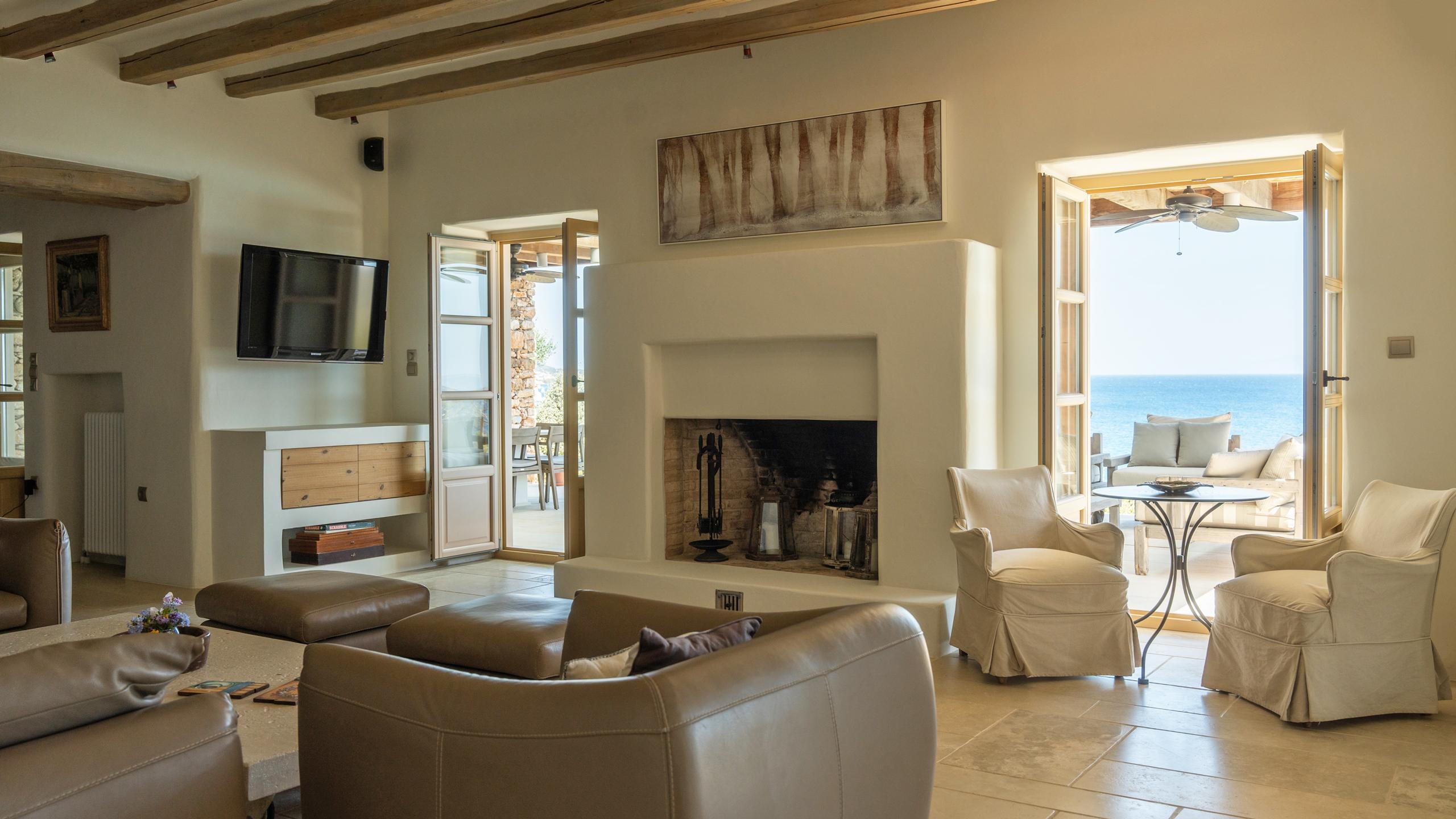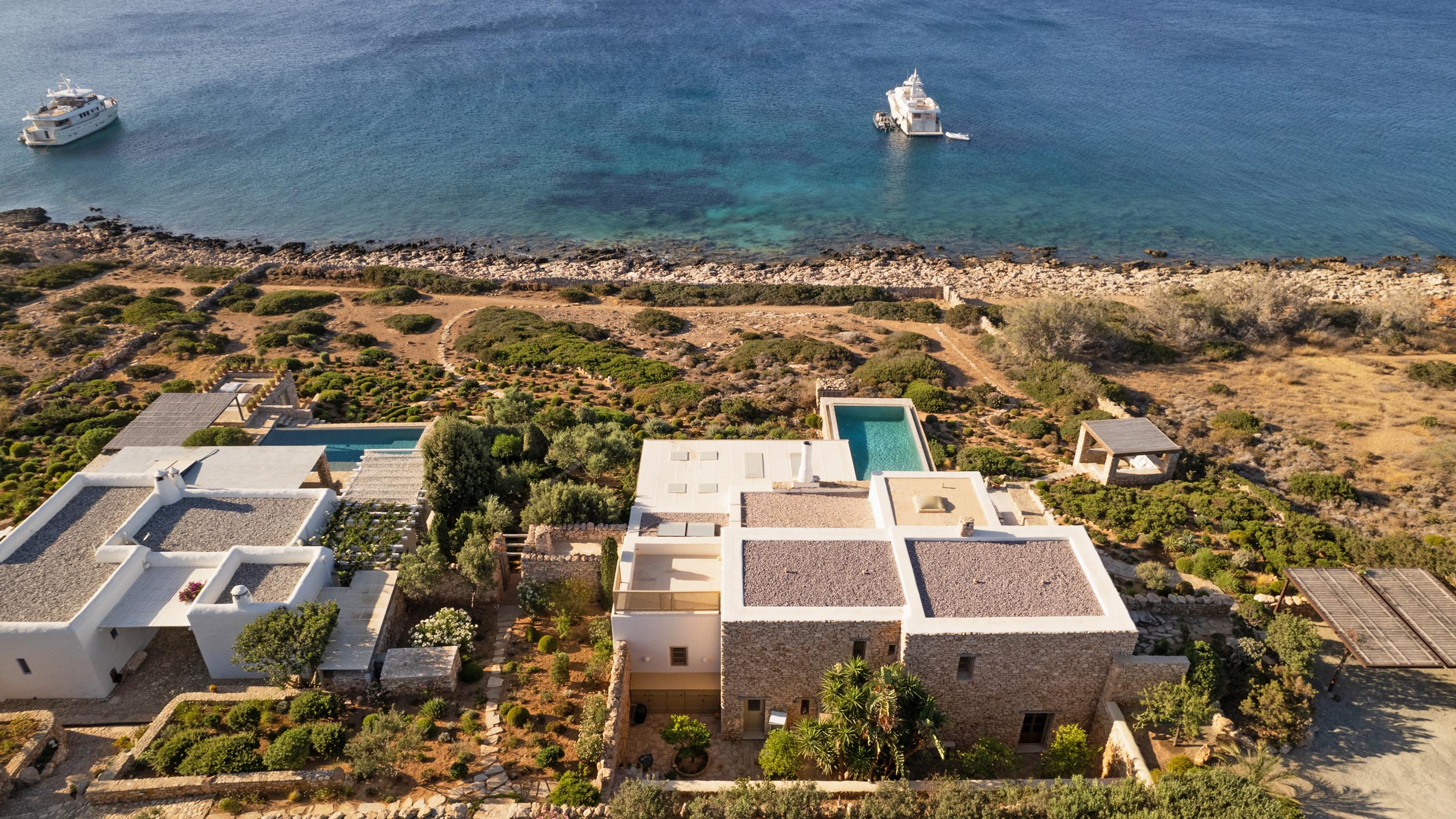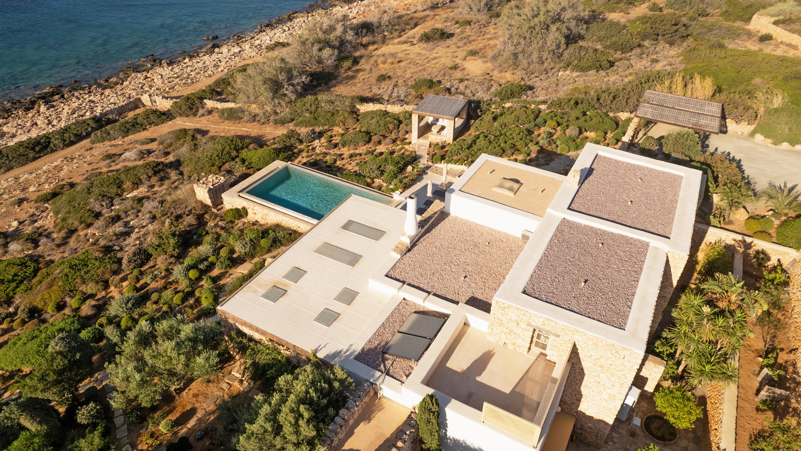 Waterfront West is a stunning 280 m² seafront villa that masterfully integrates traditional stone architecture with avant-garde design elements like an indoor tree and an indoor-outdoor shower. Located just 50 meters from the water on a sprawling 6,600 m² plot, the villa creates a seamless connection between its private swimming pool and the sparkling Aegean Sea. The interior features a spacious open-plan kitchen and sun-drenched living areas, all styled with warm, earthy tones to mirror the serene natural surroundings.