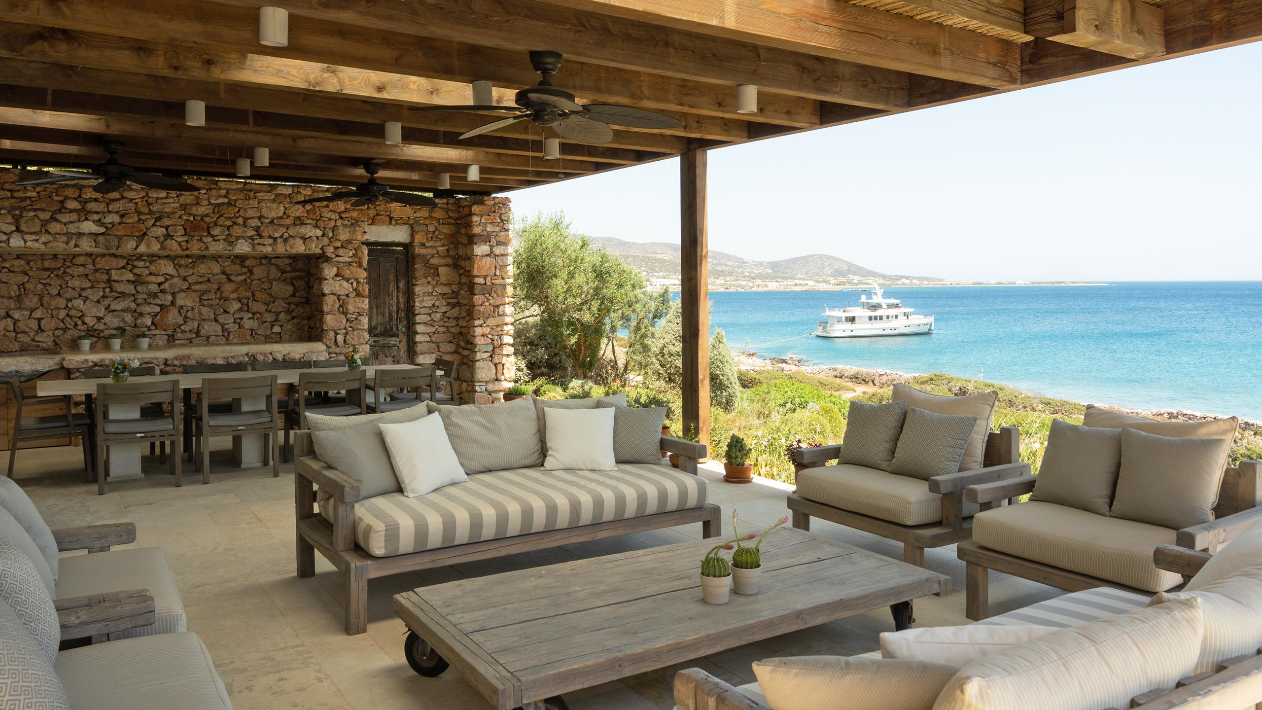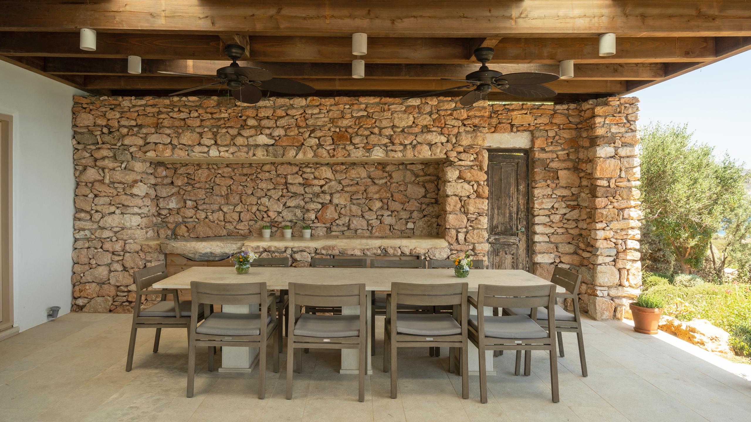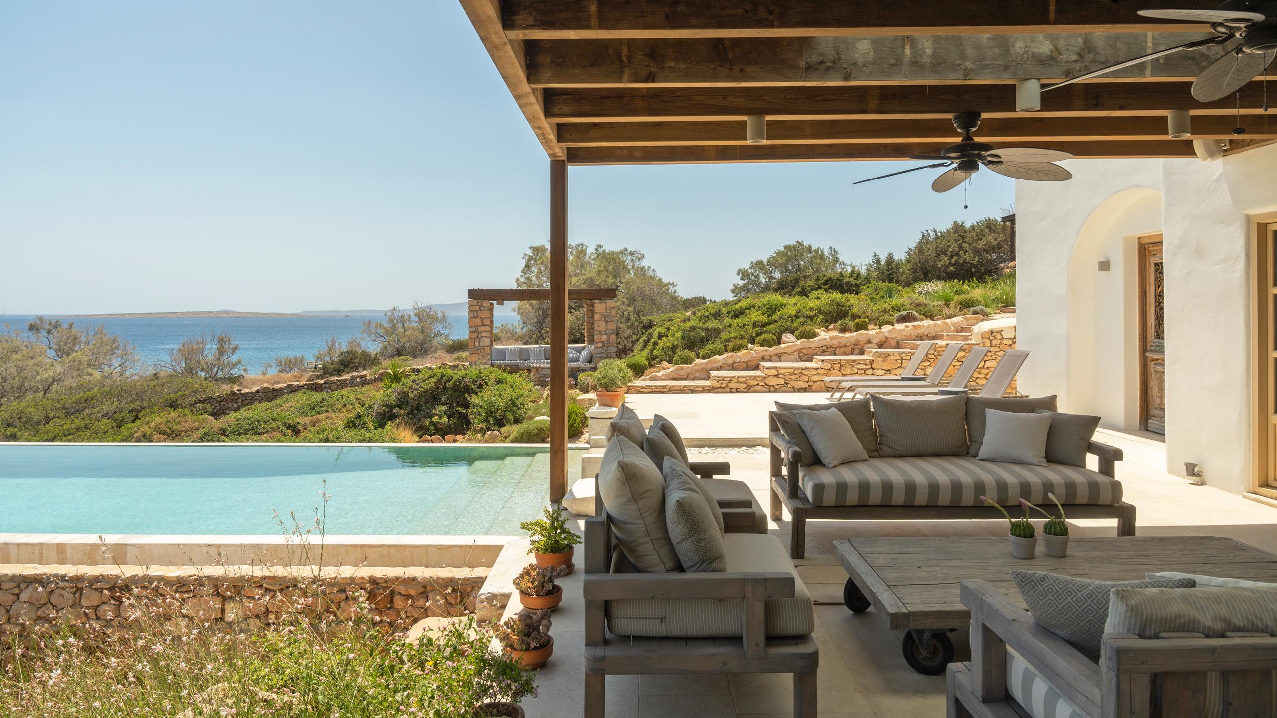 Your stay is defined by total relaxation, with inclusive daily cleaning and professional cooking services providing three gourmet meals a day. The expansive outdoor grounds offer a secluded gazebo with built-in sofas and a dining area boasting sweeping 180-degree views of the nearby islands. Perfectly positioned near the charming fishing village of Alyki, this villa provides a rare combination of modern luxury, high-end Sonos audio and authentic Greek island tranquility.