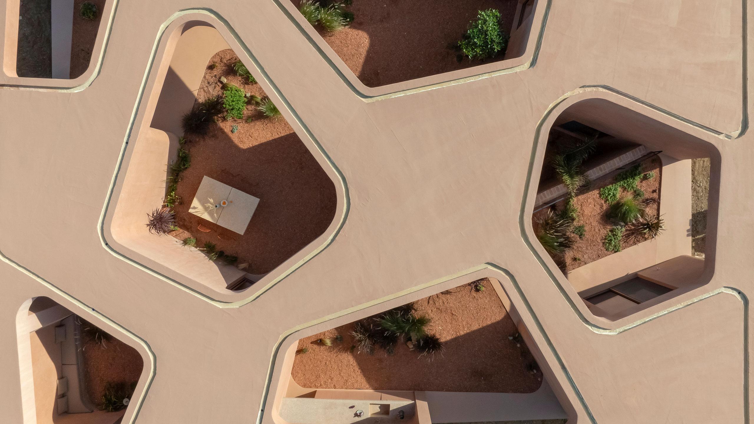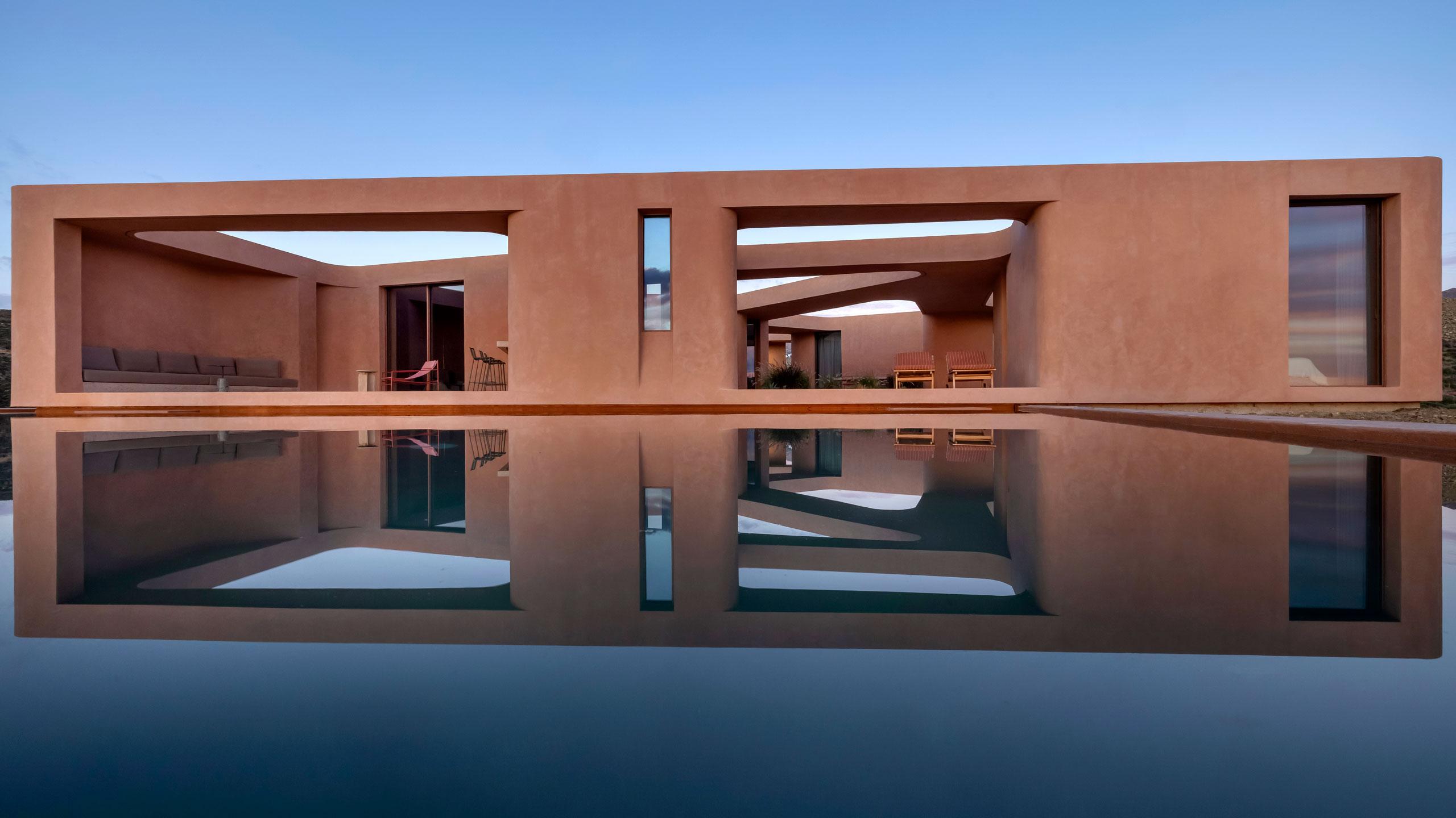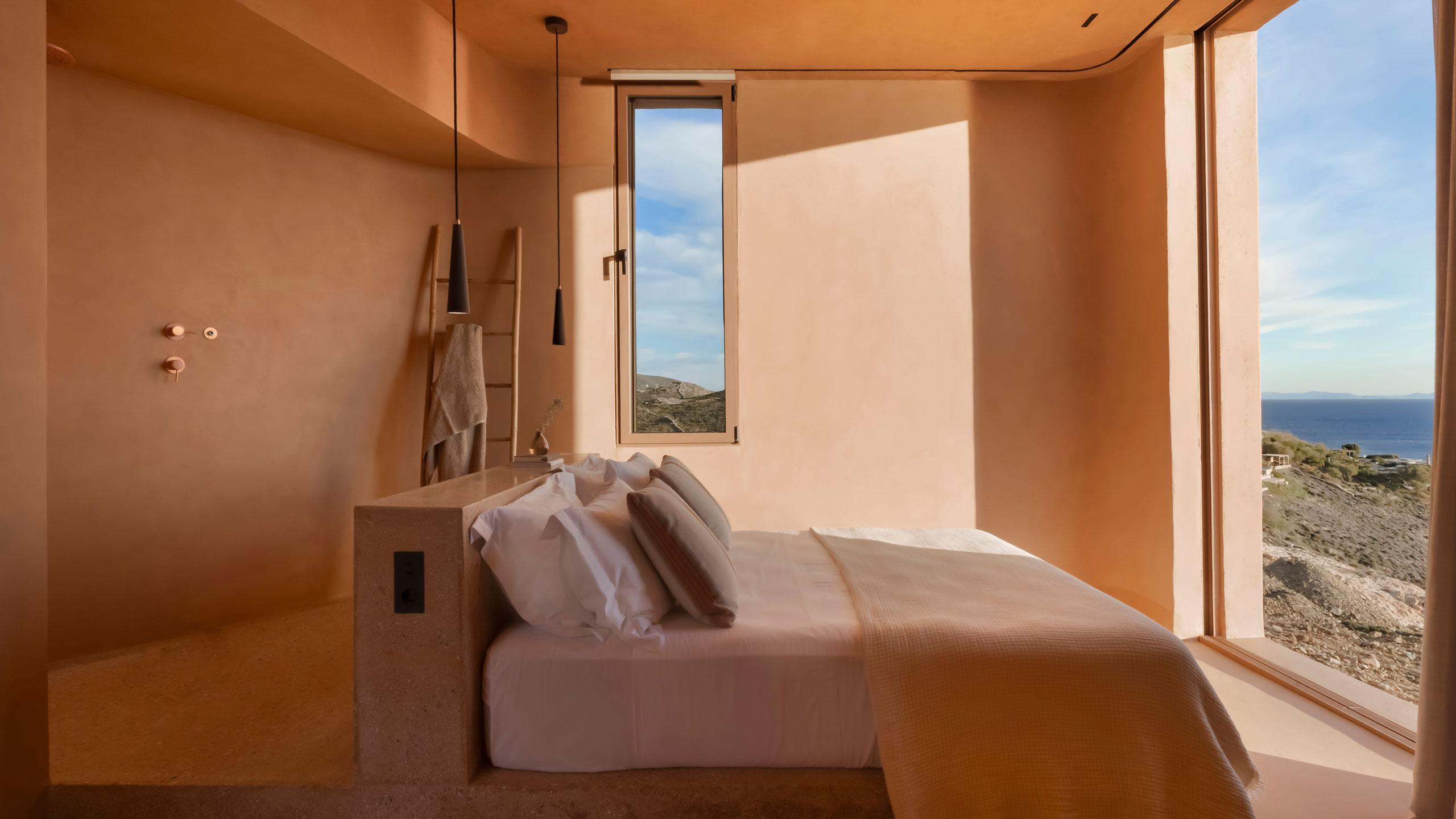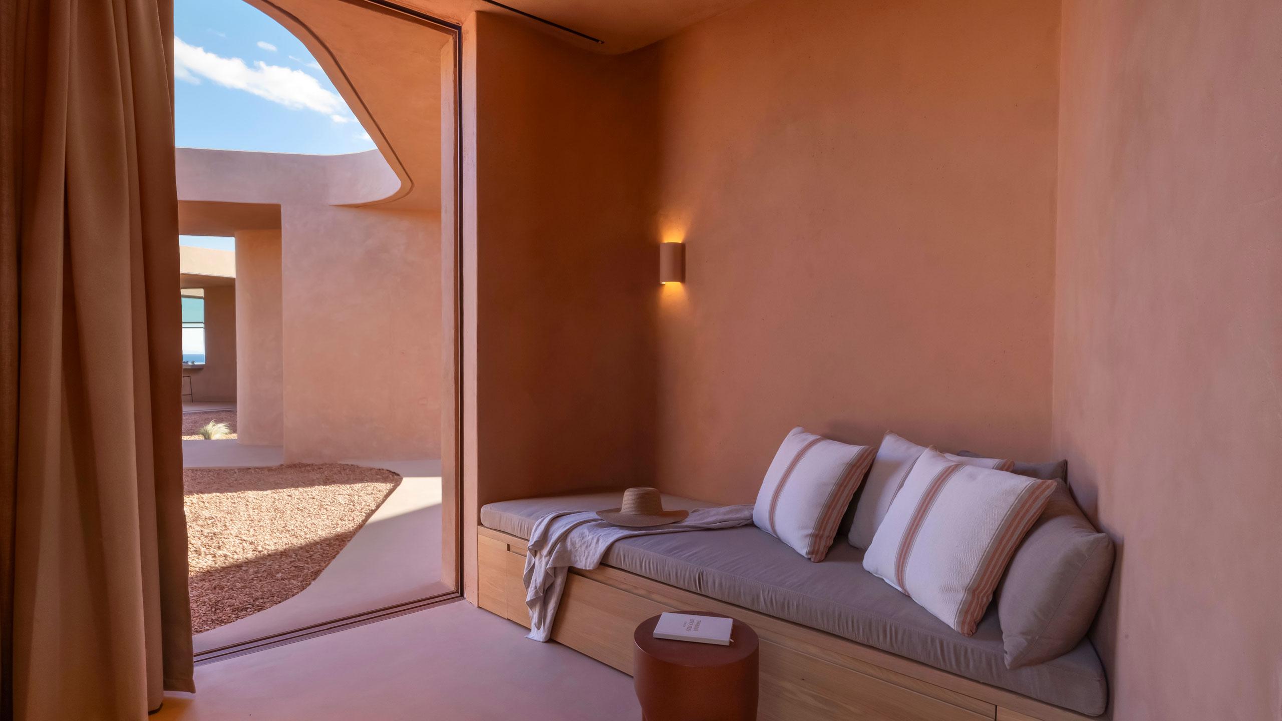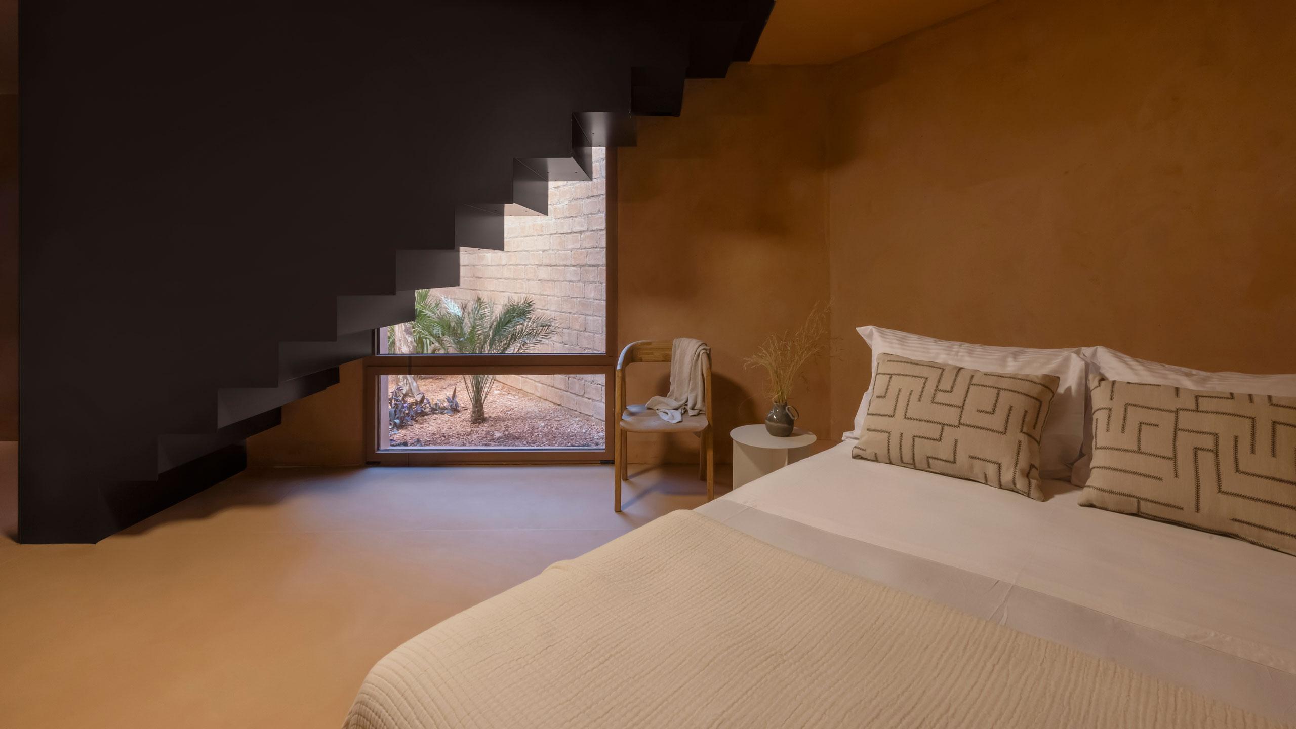 The residence utilizes a monastic blueprint to thoughtfully separate private quarters from shared social hubs, accommodating up to twelve guests across five en-suite bedrooms. Each suite is conceived as an autonomous sanctuary of shadow and light, oriented toward either the expansive sea or the silent protection of internal, landscaped courtyards. These emerald pockets of native planting soften the villa’s sharp geometry, grounding the earth-hued interiors and micro-mosaic finishes within their natural surroundings. The house functions as a continuous loop, an architectural rhythm of opening and closing that allows the individual and the group to coexist without ever competing for space.