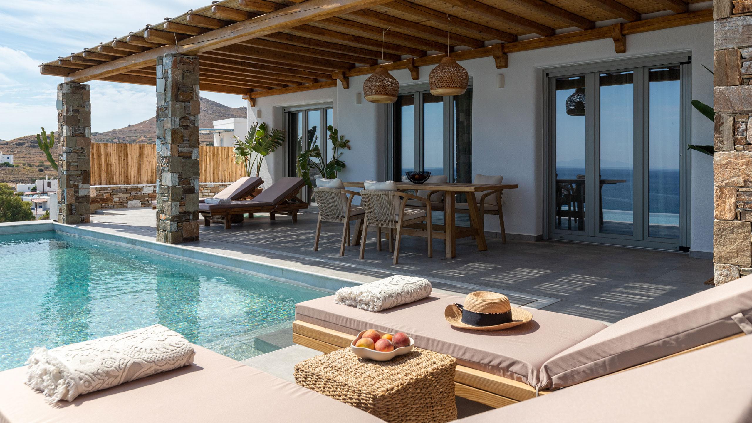 Experience Aegean elegance at The Captain’s Lookout, a newly built contemporary retreat designed for the ultimate Greek island vacation. This tranquil property features breathtaking infinity pools that appear to merge with the horizon, offering unobstructed views of the shimmering sea. Whether you seek total seclusion or a refined base for exploration, our minimalist architecture and serene atmosphere provide the perfect backdrop for relaxation.