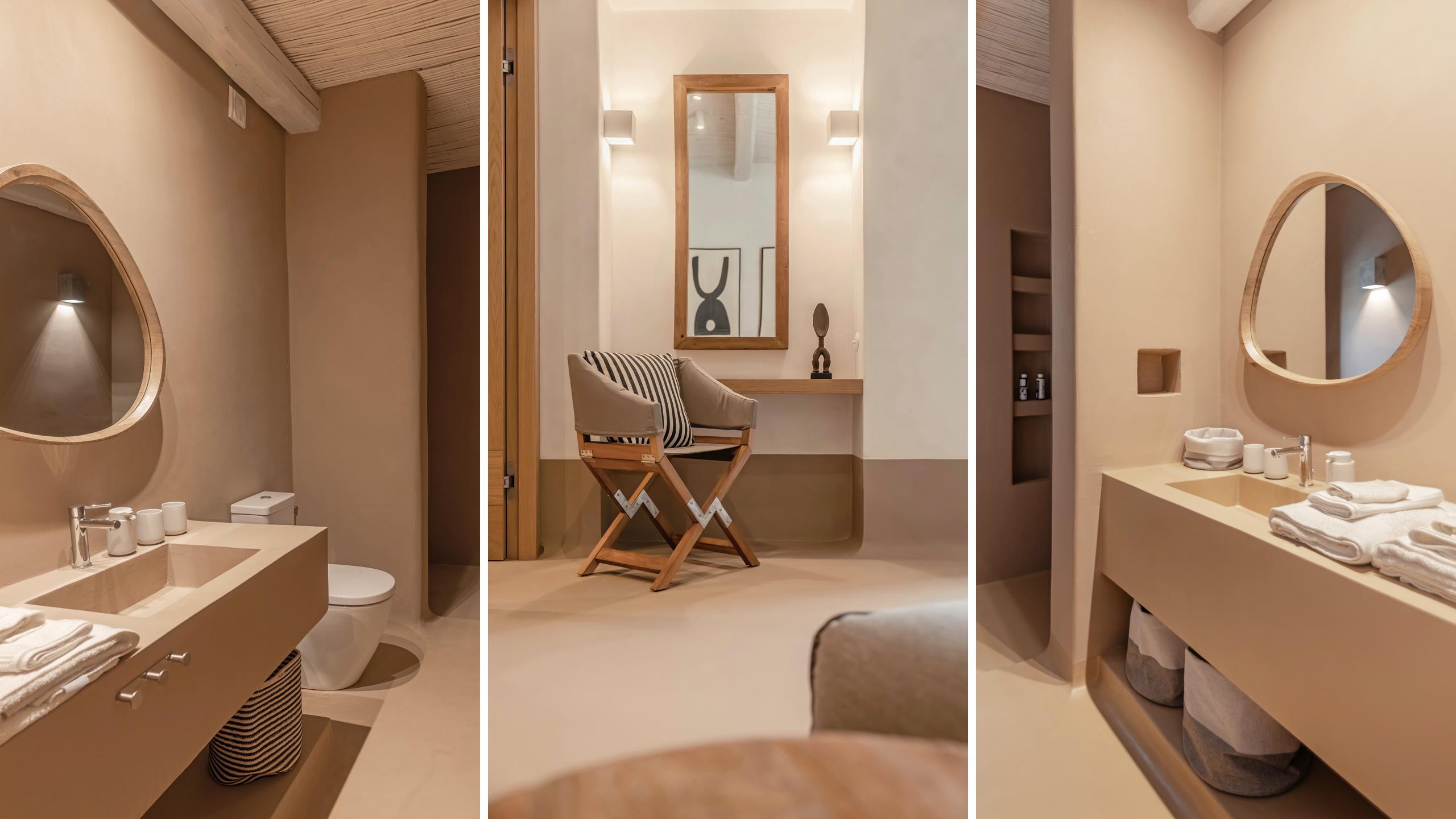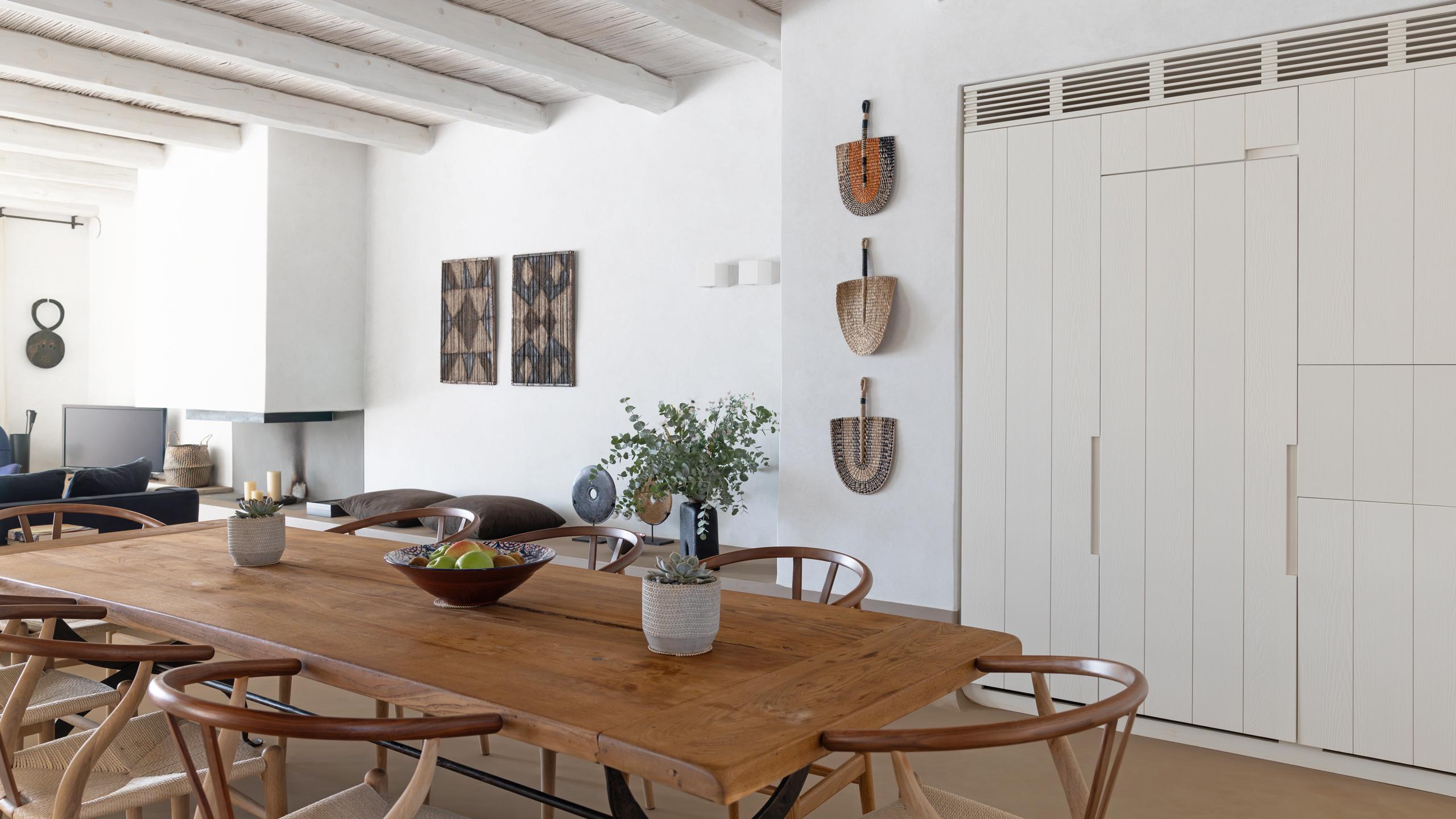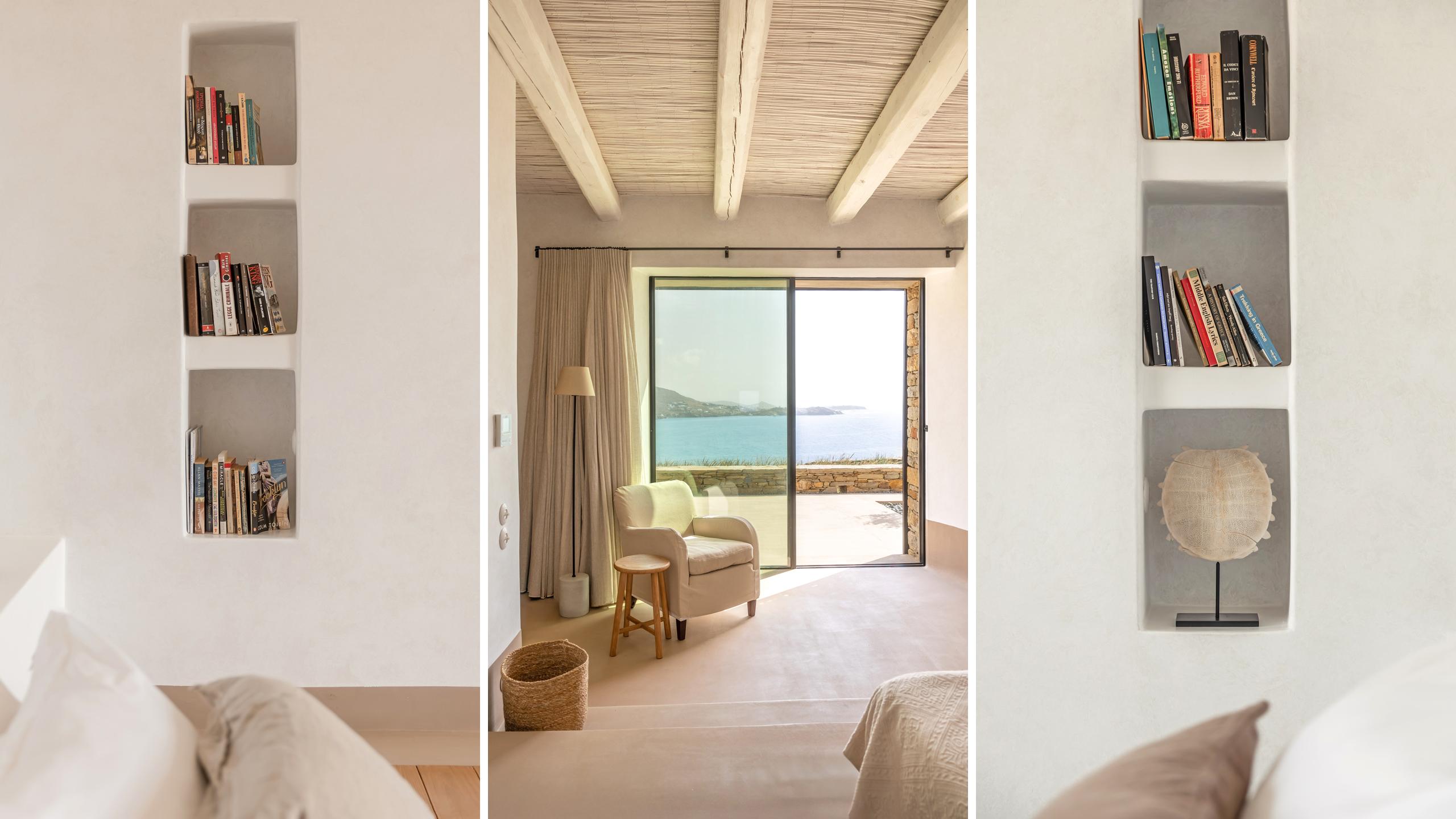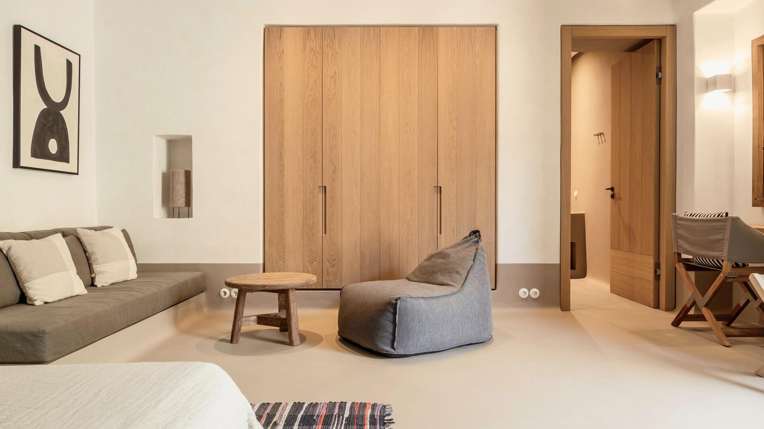 Step outside to find a sprawling 15-meter infinity pool and shaded pergolas that create an atmospheric haven for dining and relaxation. A private path leads you just 280 meters down to the golden sands and crystal-clear waters of Platia Ammos beach. This is an idyllic retreat for those seeking a sophisticated balance of privacy, contemporary comfort, and unspoiled coastal beauty.